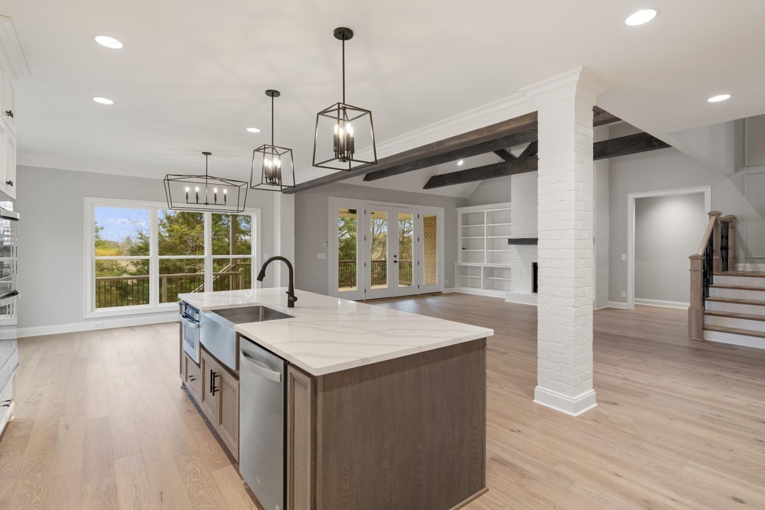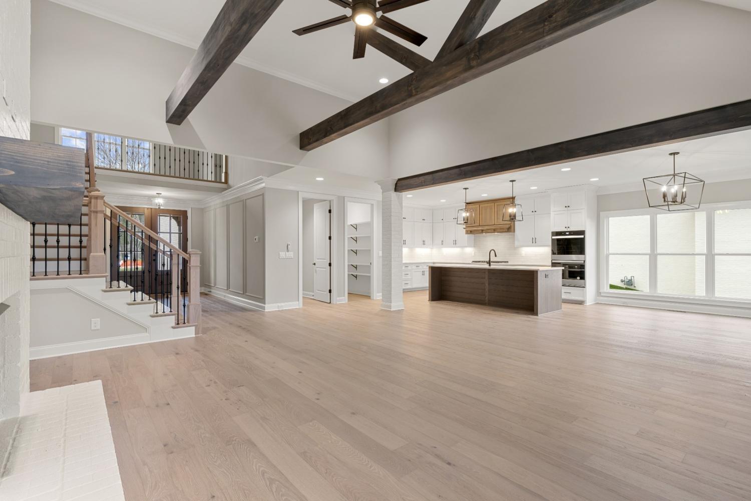 $10,000 toward closing cost and/or rate buy down with Preferred Lender!! Exceptional Quality Construction by Eastland Construction Inc. The Teesdale Plan, , Great 4BR plan, Living rm w/ Brick Gas Fireplace & Wood Beams. Hardwood Floors In Living Rm, Kitchen, Eat-In, & Primary BR, Kitchen with Upgraded Custom Maple Cabinets, Tile Backsplash, Hardwood Floors, Quartz tops, Double Ovens, Walk-In Pantry, Microwave, and Dishwasher, Primary BR on Main Level with Large Bath w/ Separate Shower and Large Tub, Double Vanities, & Custom Wood Walk-In Closet. Tile in Baths and Full Utility Rm, Formal Dining Rm, Office, 22x17 Recreation Rm w/ pre-wired Surround Sound, Tankless Water Heater, Irrigation System with all SOD yard, Oversized Covered Back Deck, 3 Car Garage and Much More!