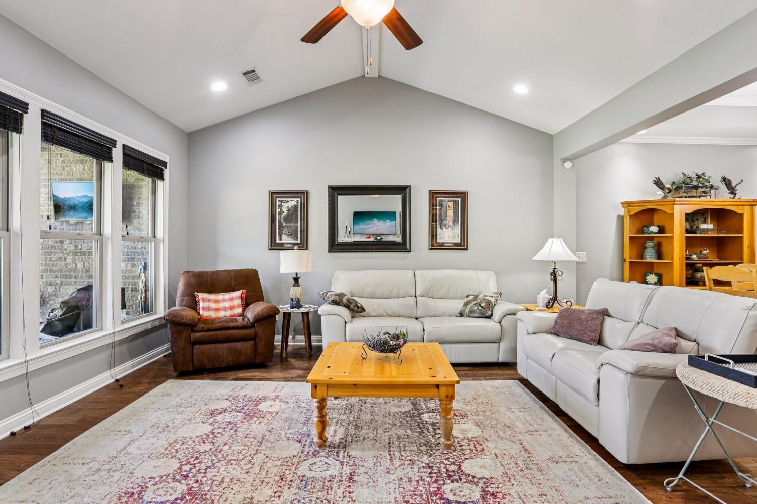 Experience living on the 18th fairway of Lebanon’s prestigious Village of Five Oaks community. Enjoy the luxurious upgraded kitchen with custom cabinetry, coffee station, & quartz countertops ($47,000+ value), a grandfathered-in fenced backyard, & main-level primary suite. Move-in ready, this is the crown jewel of the neighborhood. Hardwood floors, vaulted ceilings, a cozy gas fireplace, and an open-concept floorplan make this home perfect for both entertaining and everyday living. This home offers 2 bedrooms and 2 bathrooms on the main level. Upstairs is a second primary suite (or optional bonus room) with a full bathroom and a huge walk-in closet/storage room. The backyard and private patio is ideal for relaxing mornings or elegant evenings, while the HOA takes care of lawn care and exterior maintenance. Additional highlights include a 2-car garage with custom cabinetry, laundry room with an extra sink & built-in storage. Prime location, just steps to Five Oaks club pool, tennis and pickle ball courts, clubhouse, dining, pro-shop, & events! Membership is optional - golf or social memberships available. The community provides convenient, low-maintenance living, all only 5 minutes from nearby shopping, dining, & healthcare (Publix, Kroger, Starbucks, In-N-Out, banks, hospitals, dental, etc.), public transportation and I-40. Only 30 mins to BNA and 45 mins to downtown Nashville. Golf Cart can be included with purchase (purchased in 2023 for $10,000+) Contact to schedule your private showing today! Buyer/buyer's agent to verify all details deemed important.