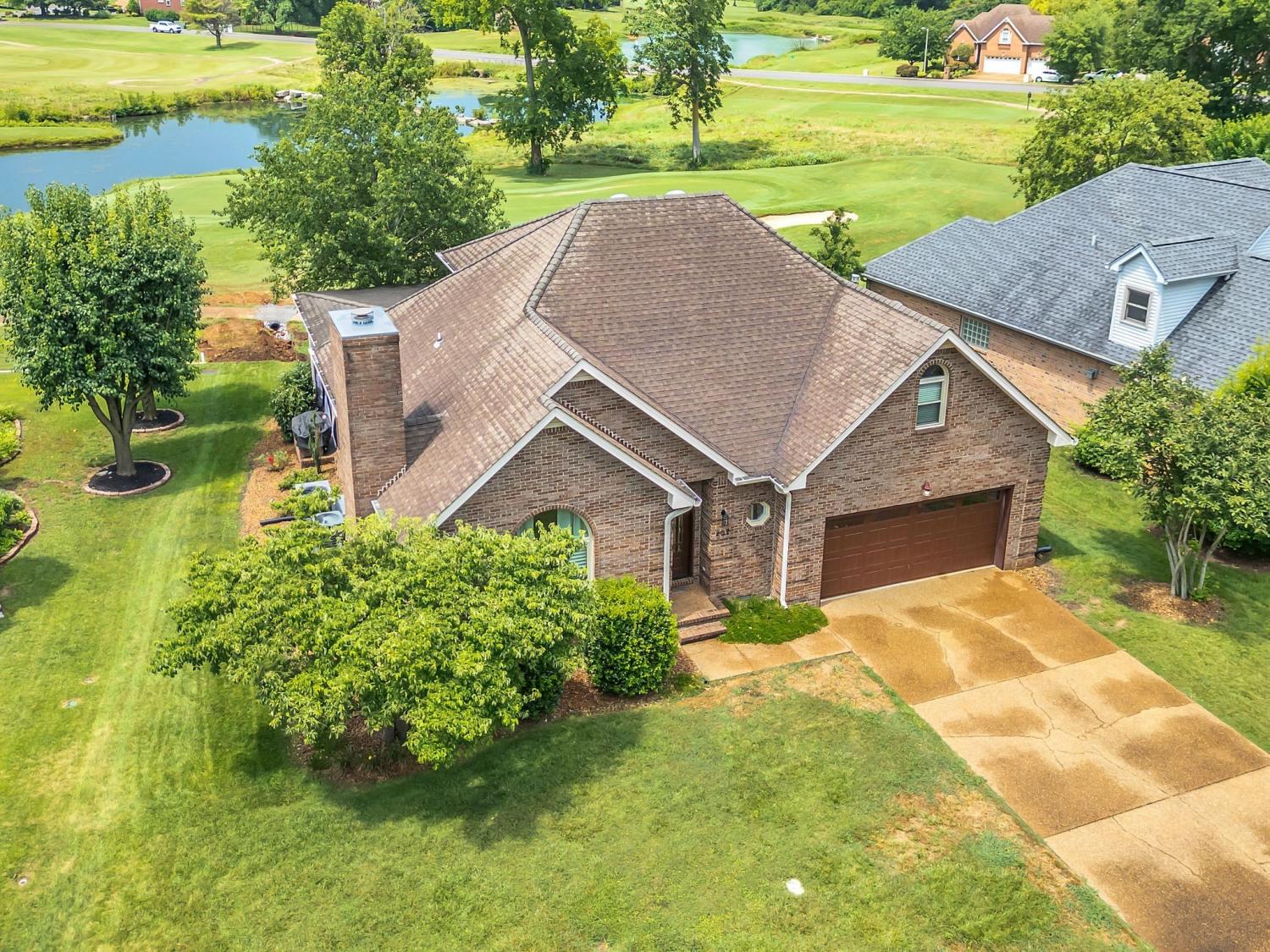 FLEX CASH OFFERED!!. Beautiful brick home featuring 3 bedrooms, 2 full bathrooms, and a half bath. The kitchen is equipped with stainless steel appliances—including a refrigerator and wine cooler. Spectacular outdoor space with a covered back patio complete with a ceiling fan and a cozy wood-burning fireplace, and did I mention the view off the back patio, GOLFERS Dream! Interior highlights include tile and hardwood flooring throughout. Primary bedroom is on the main level of the home. Bonus room can be used as a 4th bedroom as it has a walk-in closet. All new windows, HVAC, Gas Water Heater and Gutters! Located in a desirable community with access to a pool, playground, and clubhouse.