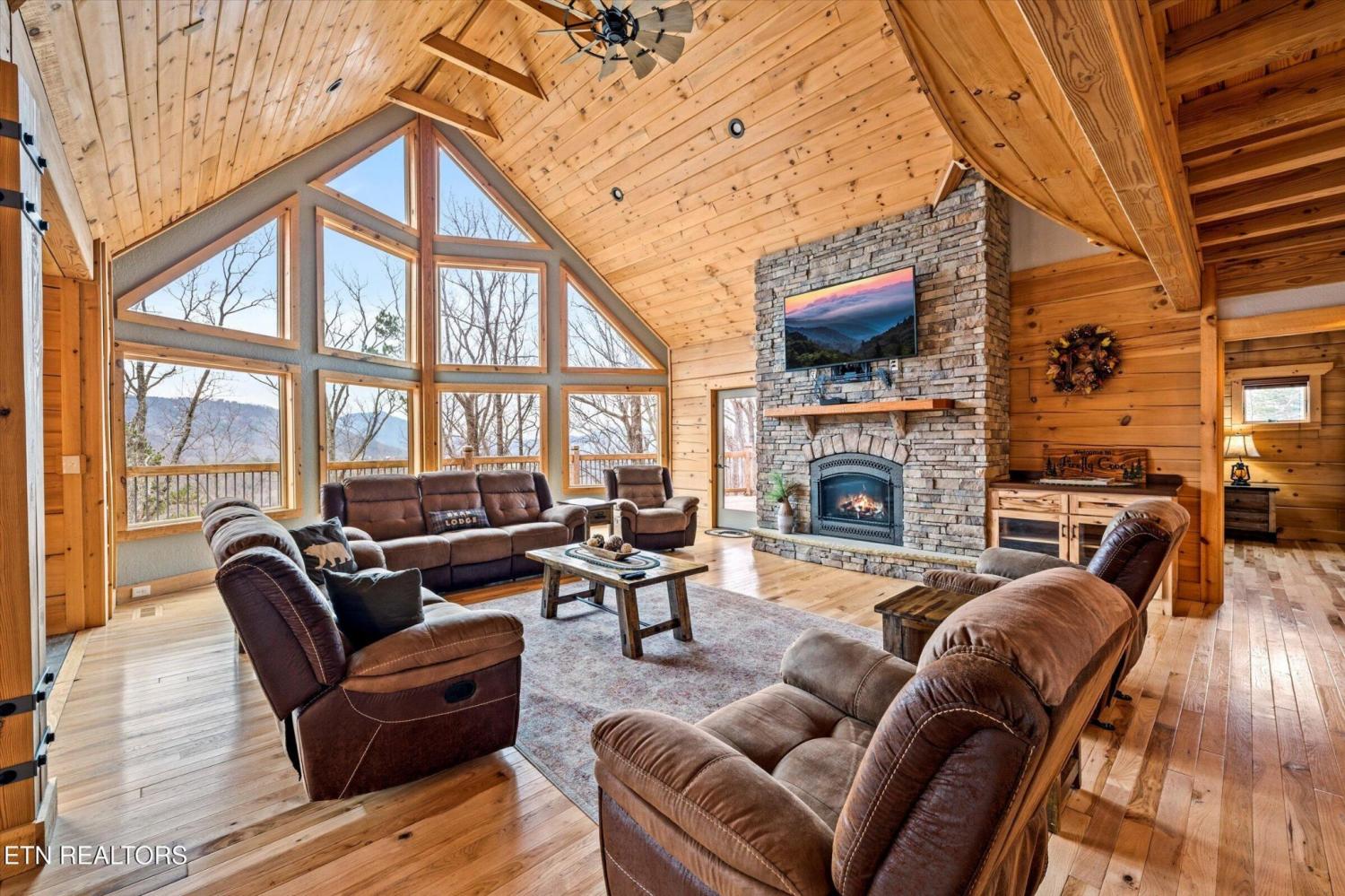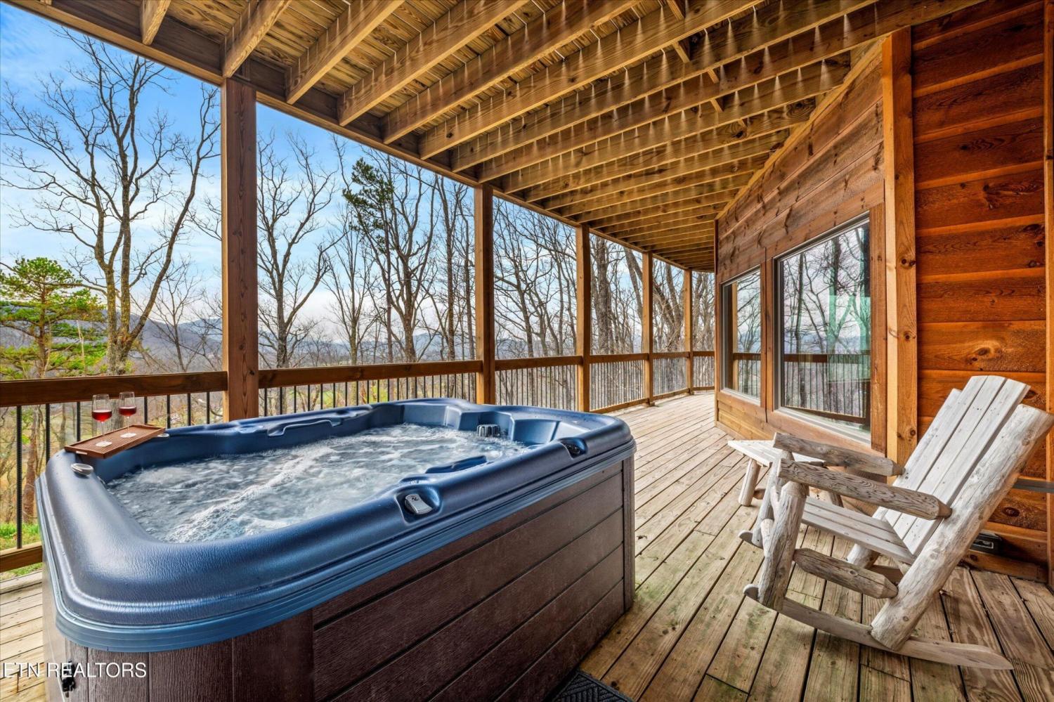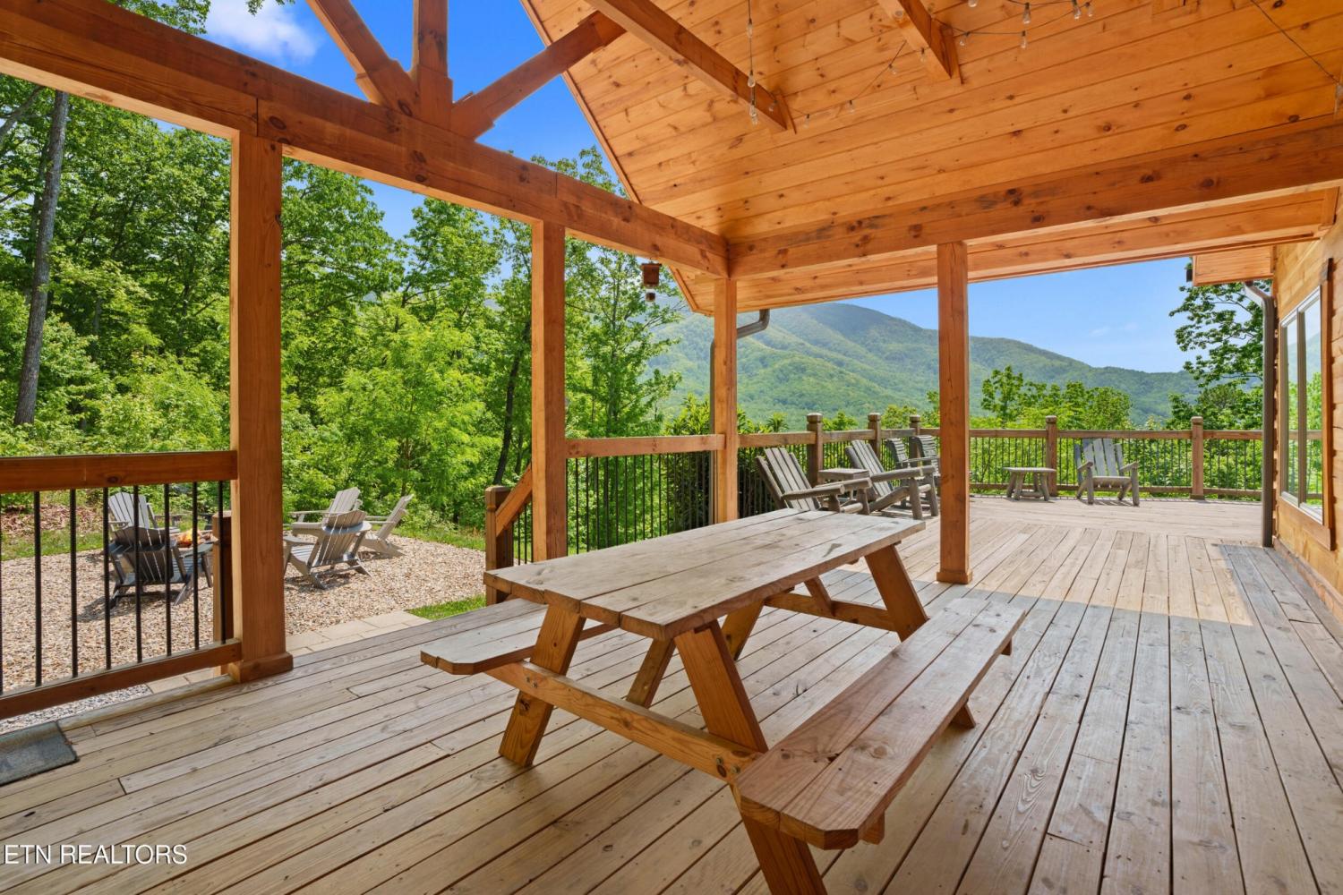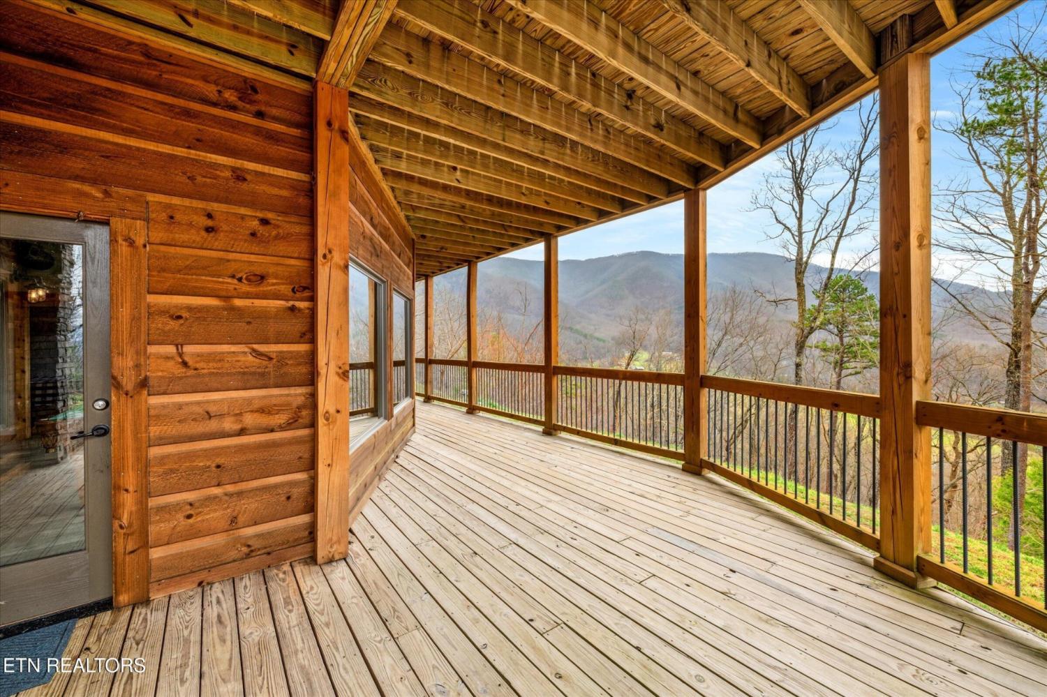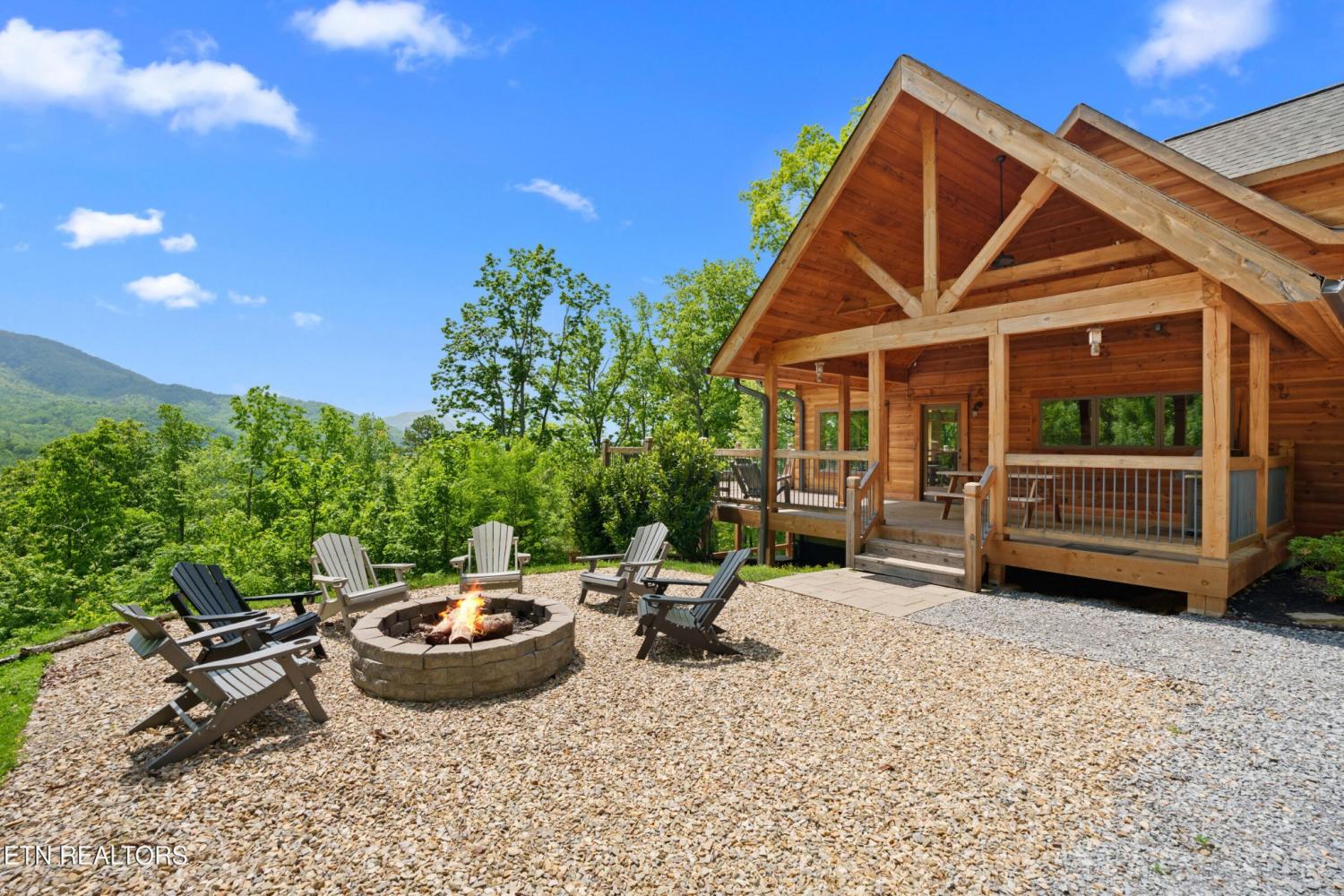 This stunning 5-bedroom, 3.5-bathroom Southland Log Timber Frame Home offers approximately 4300 square feet of luxurious living space on a private 2.89-acre lot with breathtaking, elevated mountain views. Located int eh heart of Wears Vallely, this home is just 15 minutes from Pigeon Forge, 30 minutes to Gatlinburg, and a short drive to the Wears Valley entrance of the Great Smoky Mountains National Park. Designed for both relaxation and entertainment, the home features soaring cathedral ceilings, abundant windows that fill the space with natural light, and a grand stone gas fireplace in the great room. The gourmet kitchen includes custom cabinetry, an oversized island, and premium appliances, making it ideal for hosting. a dedicated game and home theater room provide additional entertainment opportunities. The expansive wrap-around deck on the main level is perfect for outdoor living and offers space for a future outdoor kitchen. The walkout lower level features a hot tub and a scenic outdoor fire pit. This home is pre-wired for smart home capabilities, including Sonos audio and music, a security system, and high-speed Wi-Fi. It is also wired with a 100 AMP service to accommodate a future garage addition. A high-efficiency three-zone HVAC system ensures year-round comfort, while an instant hot water heater UV light water filter, particle sediment filter, and water softener add to the home's modern convenience. Currently sleeping up to 12 guests. Adding a sprinkler system could further increase occupancy and maximize rental income. This property offers exceptional short-term rental potential with projected annual revenue of $175K+. Whether as a luxury mountain retreat or an investment opportunity, this home is truly one of a kind. Schedule your private showing today.