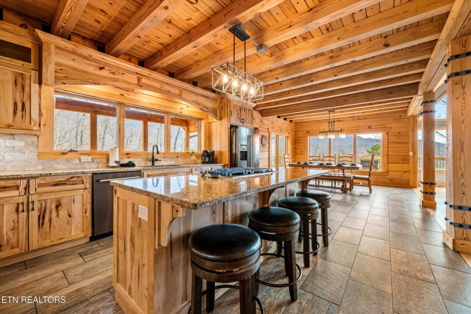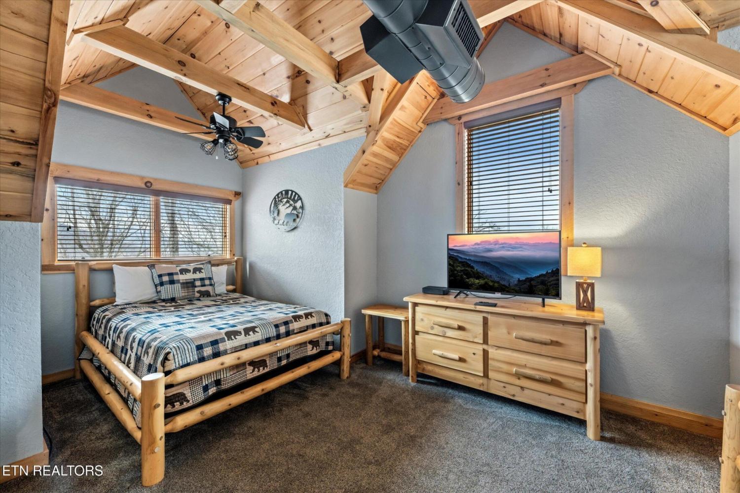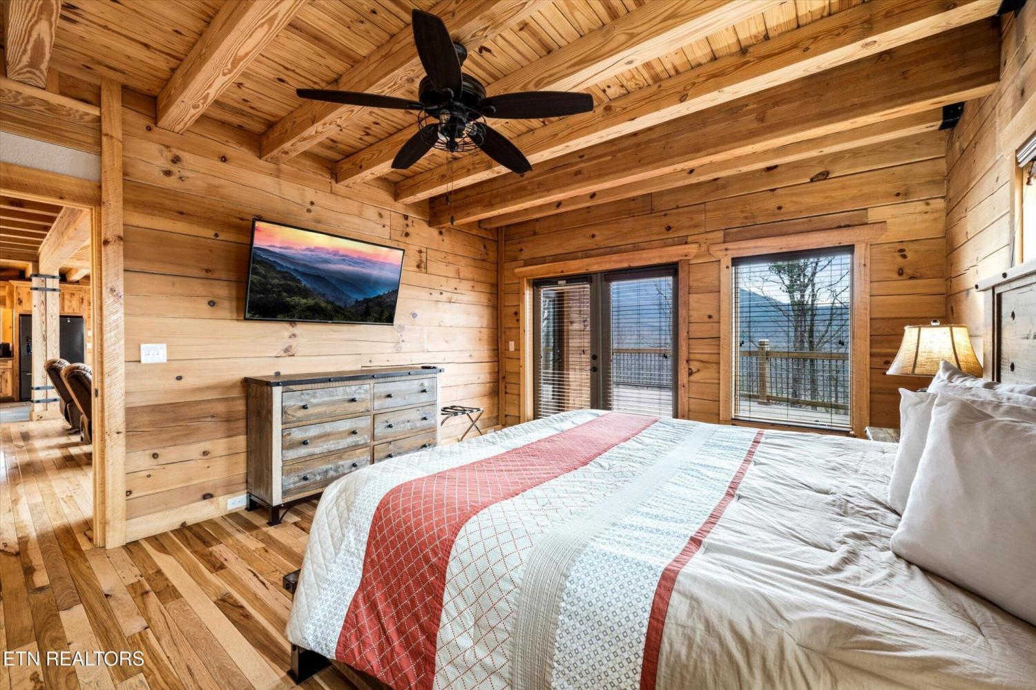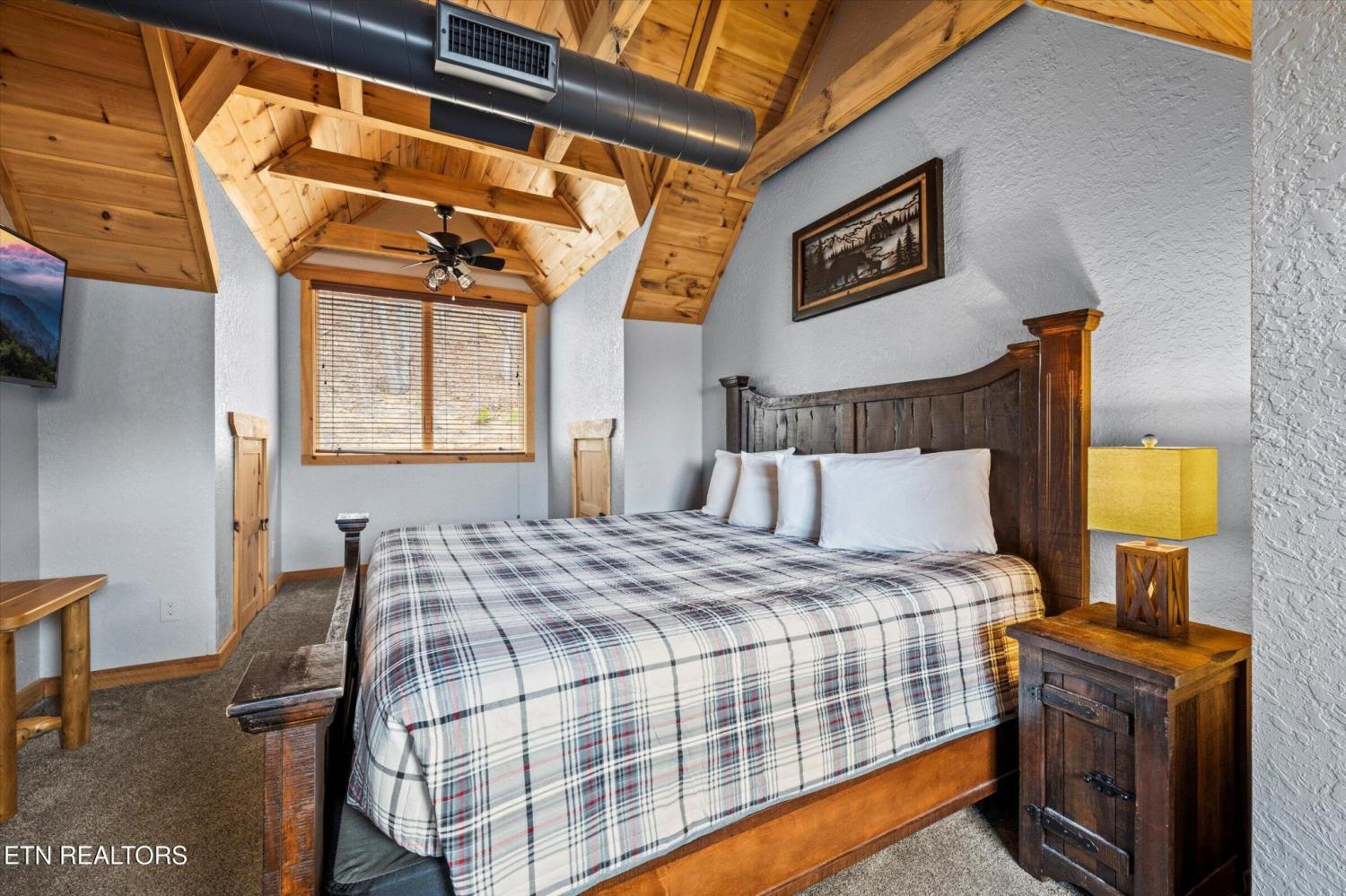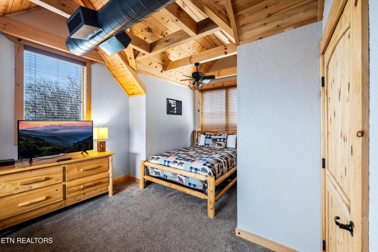 This stunning 5-bedroom, 3.5-bathroom Southland Log Timber Frame Home offers approximately 4300 square feet of luxurious living space on a private 2.89-acre lot with breathtaking, elevated mountain views. Located int eh heart of Wears Vallely, this home is just 15 minutes from Pigeon Forge, 30 minutes to Gatlinburg, and a short drive to the Wears Valley entrance of the Great Smoky Mountains National Park. Designed for both relaxation and entertainment, the home features soaring cathedral ceilings, abundant windows that fill the space with natural light, and a grand stone gas fireplace in the great room. The gourmet kitchen includes custom cabinetry, an oversized island, and premium appliances, making it ideal for hosting. a dedicated game and home theater room provide additional entertainment opportunities. The expansive wrap-around deck on the main level is perfect for outdoor living and offers space for a future outdoor kitchen. The walkout lower level features a hot tub and a scenic outdoor fire pit. This home is pre-wired for smart home capabilities, including Sonos audio and music, a security system, and high-speed Wi-Fi. It is also wired with a 100 AMP service to accommodate a future garage addition. A high-efficiency three-zone HVAC system ensures year-round comfort, while an instant hot water heater UV light water filter, particle sediment filter, and water softener add to the home's modern convenience. Currently sleeping up to 12 guests. Adding a sprinkler system could further increase occupancy and maximize rental income. This property offers exceptional short-term rental potential with projected annual revenue of $175K+. Whether as a luxury mountain retreat or an investment opportunity, this home is truly one of a kind. Schedule your private showing today.