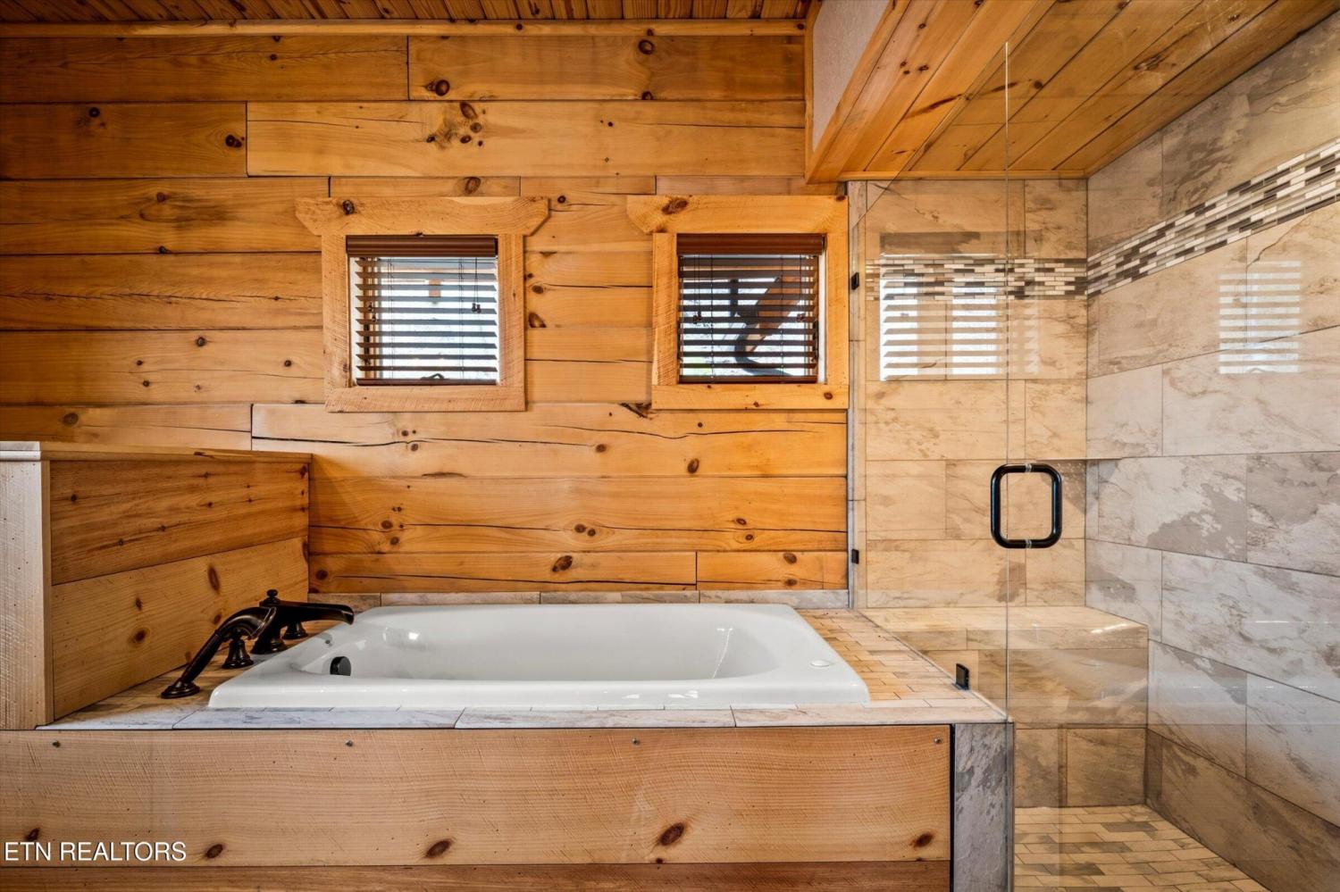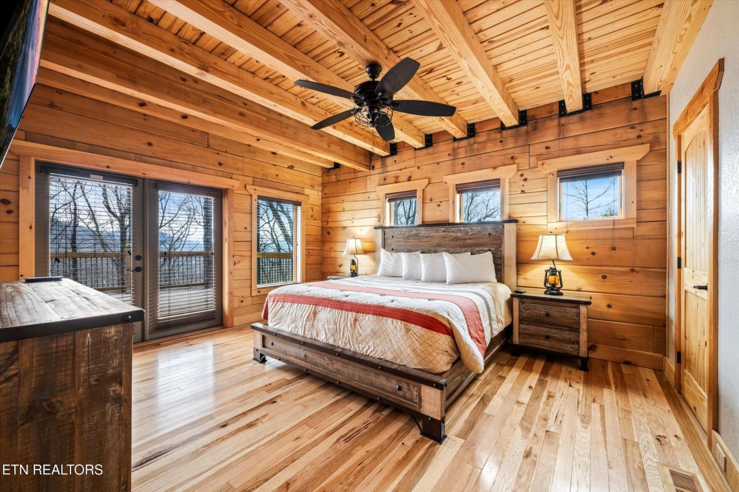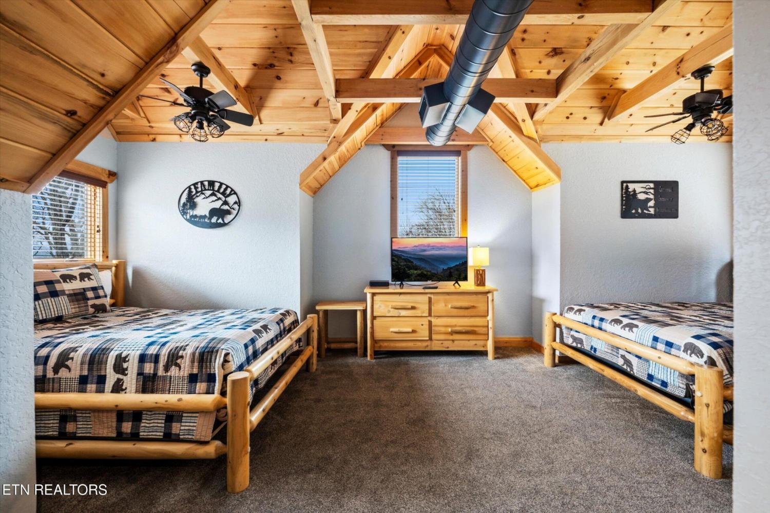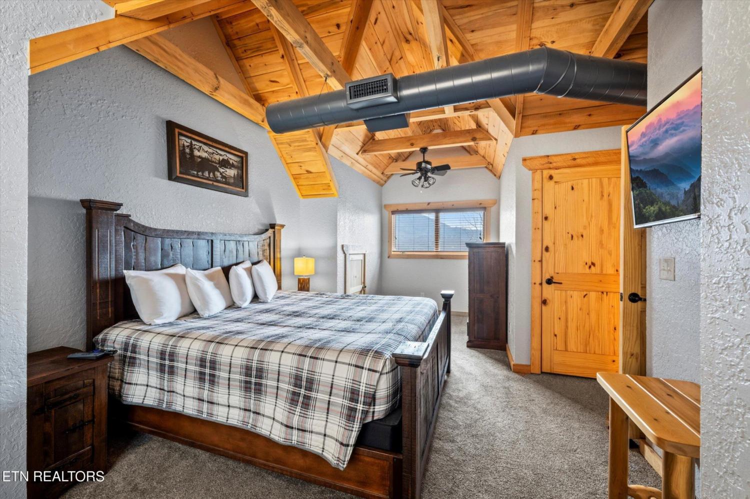 This stunning 5-bedroom, 3.5-bathroom Southland Log Timber Frame Home offers approximately 4300 square feet of luxurious living space on a private 2.89-acre lot with breathtaking, elevated mountain views. Located int eh heart of Wears Vallely, this home is just 15 minutes from Pigeon Forge, 30 minutes to Gatlinburg, and a short drive to the Wears Valley entrance of the Great Smoky Mountains National Park. Designed for both relaxation and entertainment, the home features soaring cathedral ceilings, abundant windows that fill the space with natural light, and a grand stone gas fireplace in the great room. The gourmet kitchen includes custom cabinetry, an oversized island, and premium appliances, making it ideal for hosting. a dedicated game and home theater room provide additional entertainment opportunities. The expansive wrap-around deck on the main level is perfect for outdoor living and offers space for a future outdoor kitchen. The walkout lower level features a hot tub and a scenic outdoor fire pit. This home is pre-wired for smart home capabilities, including Sonos audio and music, a security system, and high-speed Wi-Fi. It is also wired with a 100 AMP service to accommodate a future garage addition. A high-efficiency three-zone HVAC system ensures year-round comfort, while an instant hot water heater UV light water filter, particle sediment filter, and water softener add to the home's modern convenience. Currently sleeping up to 12 guests. Adding a sprinkler system could further increase occupancy and maximize rental income. This property offers exceptional short-term rental potential with projected annual revenue of $175K+. Whether as a luxury mountain retreat or an investment opportunity, this home is truly one of a kind. Schedule your private showing today.