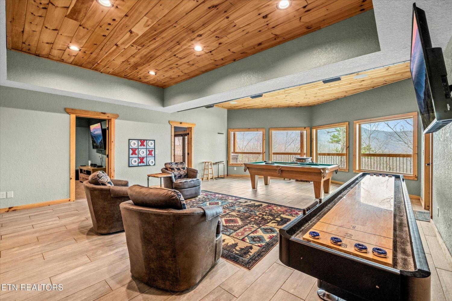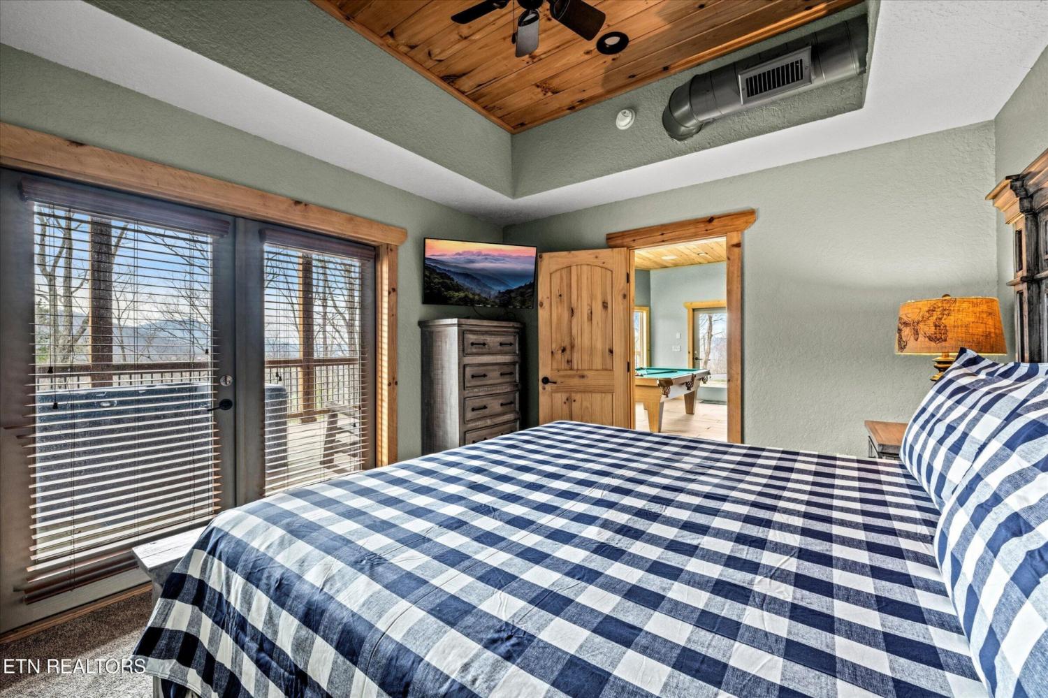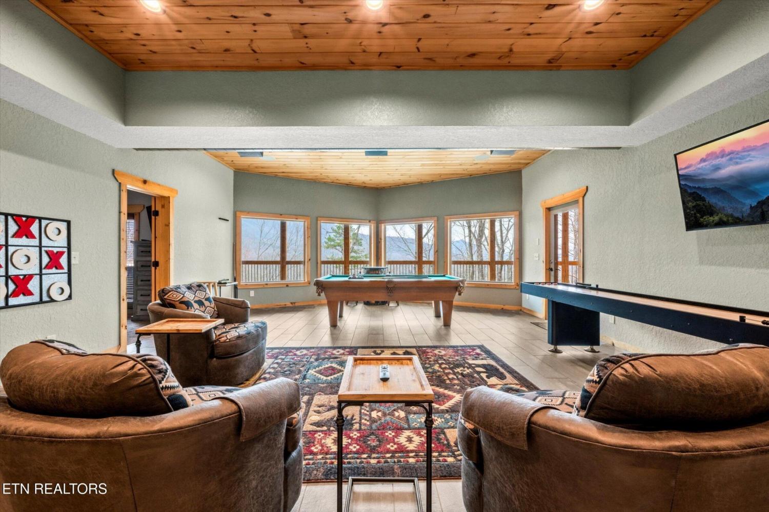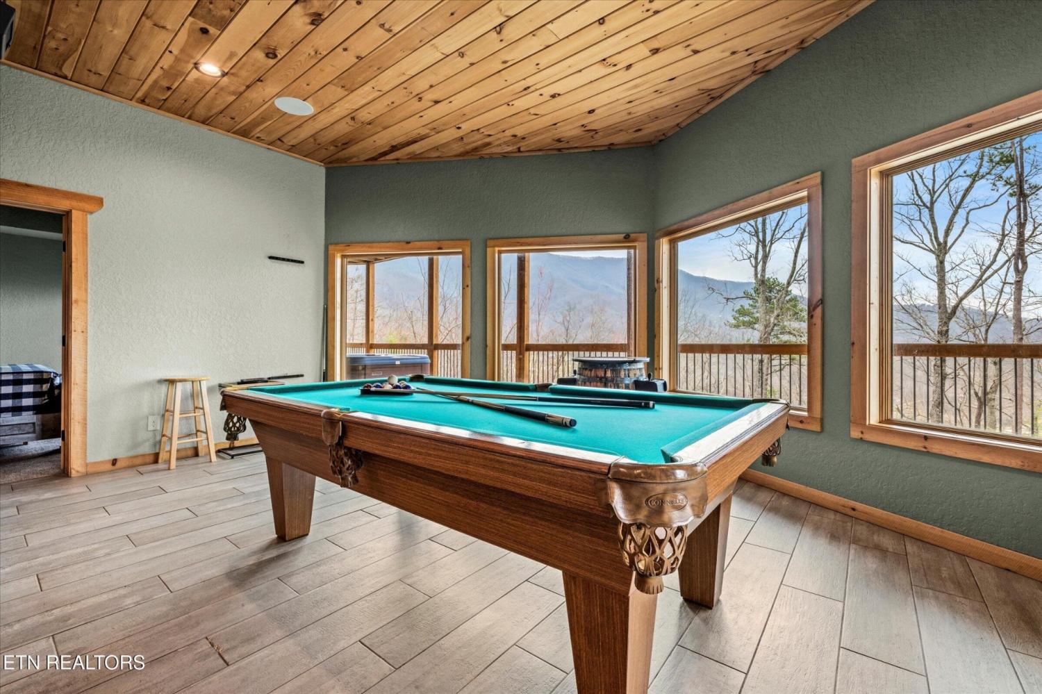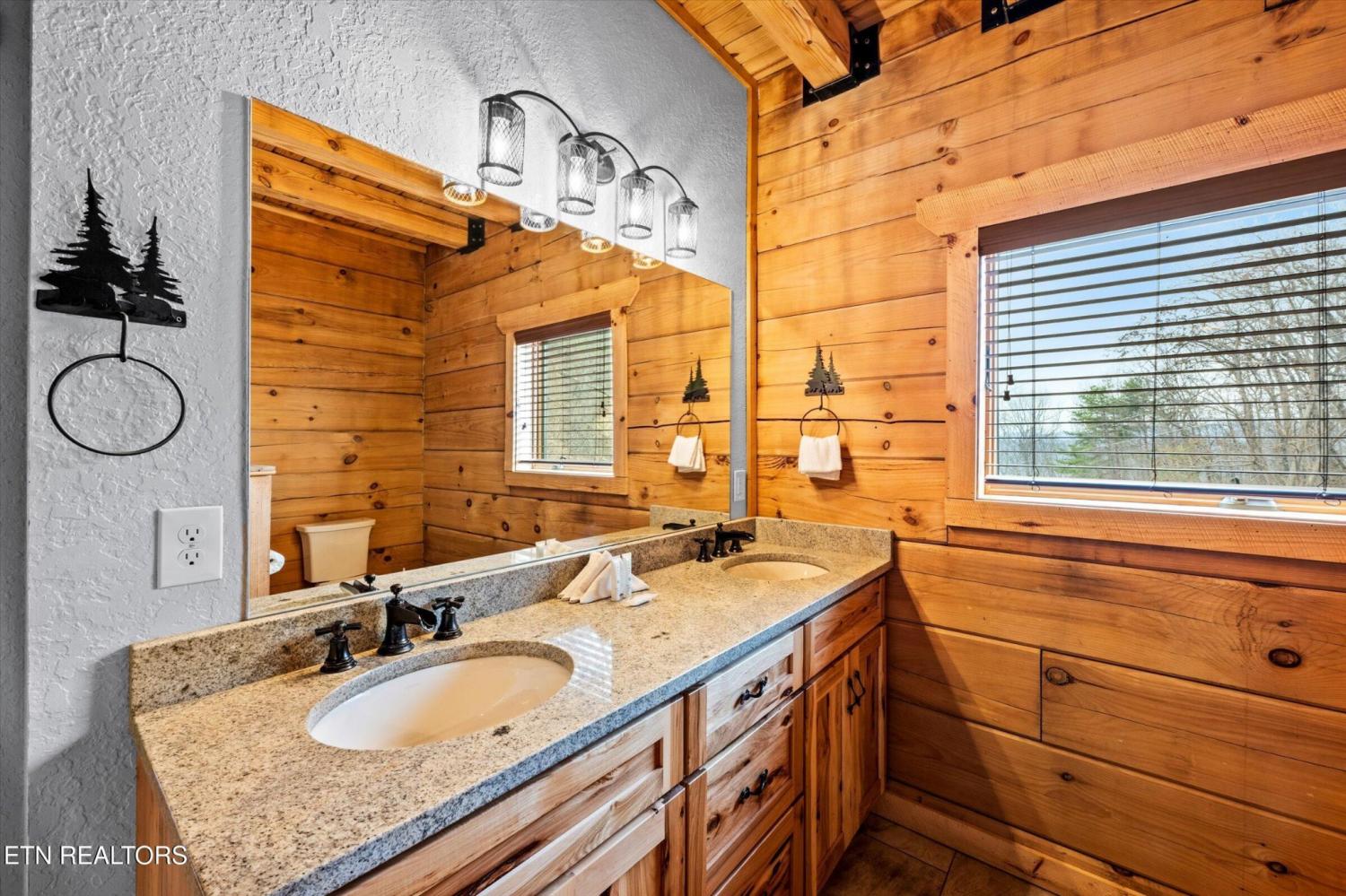 This stunning 5-bedroom, 3.5-bathroom Southland Log Timber Frame Home offers approximately 4300 square feet of luxurious living space on a private 2.89-acre lot with breathtaking, elevated mountain views. Located int eh heart of Wears Vallely, this home is just 15 minutes from Pigeon Forge, 30 minutes to Gatlinburg, and a short drive to the Wears Valley entrance of the Great Smoky Mountains National Park. Designed for both relaxation and entertainment, the home features soaring cathedral ceilings, abundant windows that fill the space with natural light, and a grand stone gas fireplace in the great room. The gourmet kitchen includes custom cabinetry, an oversized island, and premium appliances, making it ideal for hosting. a dedicated game and home theater room provide additional entertainment opportunities. The expansive wrap-around deck on the main level is perfect for outdoor living and offers space for a future outdoor kitchen. The walkout lower level features a hot tub and a scenic outdoor fire pit. This home is pre-wired for smart home capabilities, including Sonos audio and music, a security system, and high-speed Wi-Fi. It is also wired with a 100 AMP service to accommodate a future garage addition. A high-efficiency three-zone HVAC system ensures year-round comfort, while an instant hot water heater UV light water filter, particle sediment filter, and water softener add to the home's modern convenience. Currently sleeping up to 12 guests. Adding a sprinkler system could further increase occupancy and maximize rental income. This property offers exceptional short-term rental potential with projected annual revenue of $175K+. Whether as a luxury mountain retreat or an investment opportunity, this home is truly one of a kind. Schedule your private showing today.
