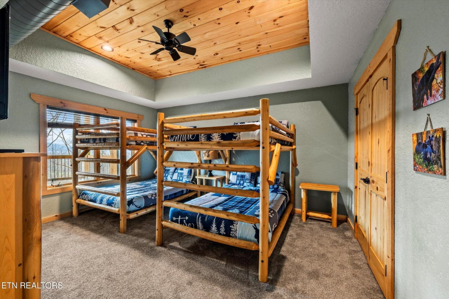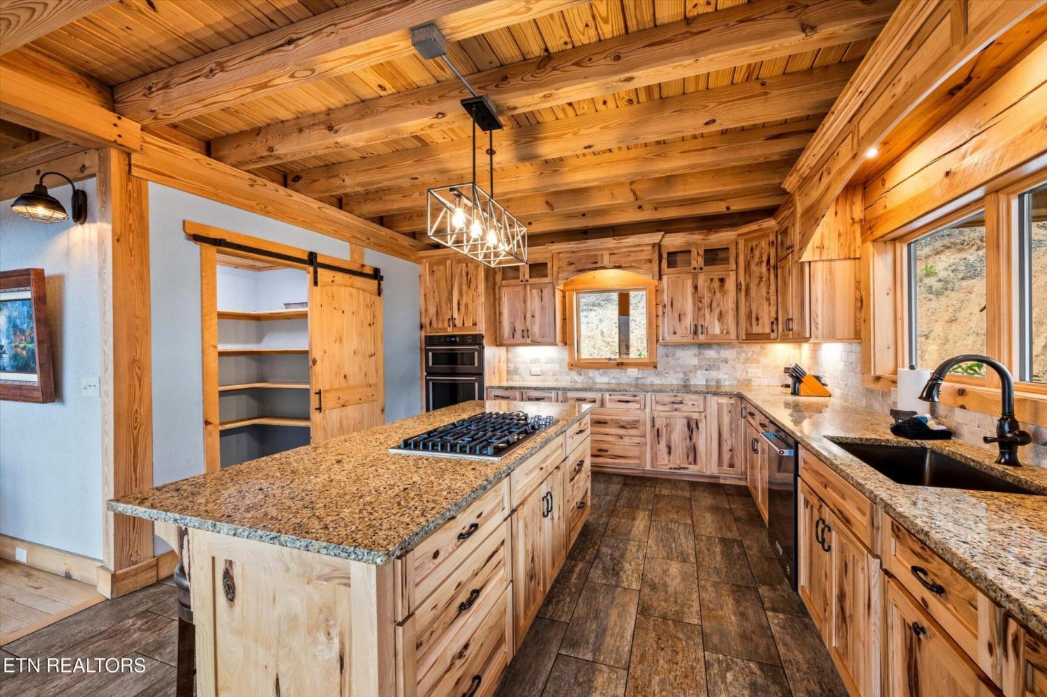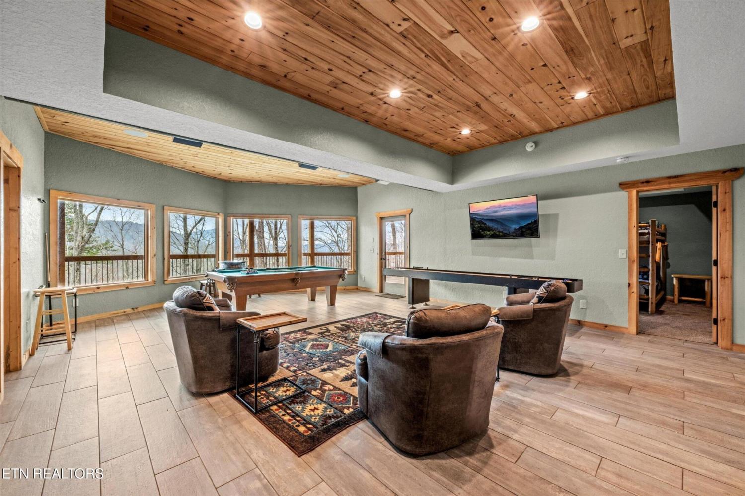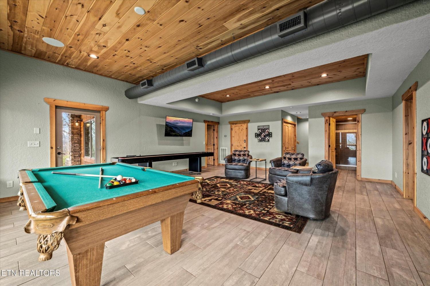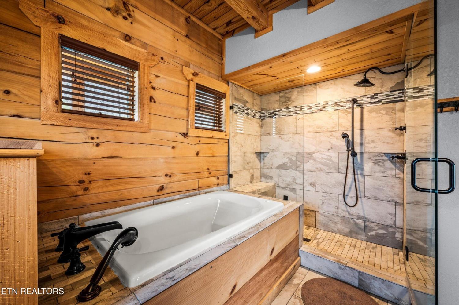 This stunning 5-bedroom, 3.5-bathroom Southland Log Timber Frame Home offers approximately 4300 square feet of luxurious living space on a private 2.89-acre lot with breathtaking, elevated mountain views. Located int eh heart of Wears Vallely, this home is just 15 minutes from Pigeon Forge, 30 minutes to Gatlinburg, and a short drive to the Wears Valley entrance of the Great Smoky Mountains National Park. Designed for both relaxation and entertainment, the home features soaring cathedral ceilings, abundant windows that fill the space with natural light, and a grand stone gas fireplace in the great room. The gourmet kitchen includes custom cabinetry, an oversized island, and premium appliances, making it ideal for hosting. a dedicated game and home theater room provide additional entertainment opportunities. The expansive wrap-around deck on the main level is perfect for outdoor living and offers space for a future outdoor kitchen. The walkout lower level features a hot tub and a scenic outdoor fire pit. This home is pre-wired for smart home capabilities, including Sonos audio and music, a security system, and high-speed Wi-Fi. It is also wired with a 100 AMP service to accommodate a future garage addition. A high-efficiency three-zone HVAC system ensures year-round comfort, while an instant hot water heater UV light water filter, particle sediment filter, and water softener add to the home's modern convenience. Currently sleeping up to 12 guests. Adding a sprinkler system could further increase occupancy and maximize rental income. This property offers exceptional short-term rental potential with projected annual revenue of $175K+. Whether as a luxury mountain retreat or an investment opportunity, this home is truly one of a kind. Schedule your private showing today.