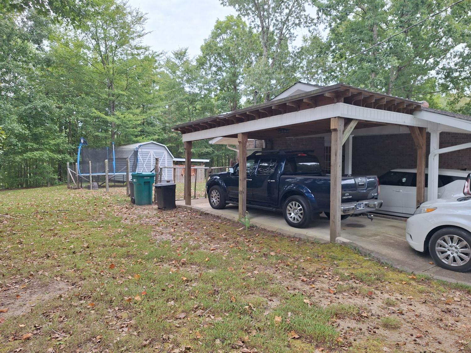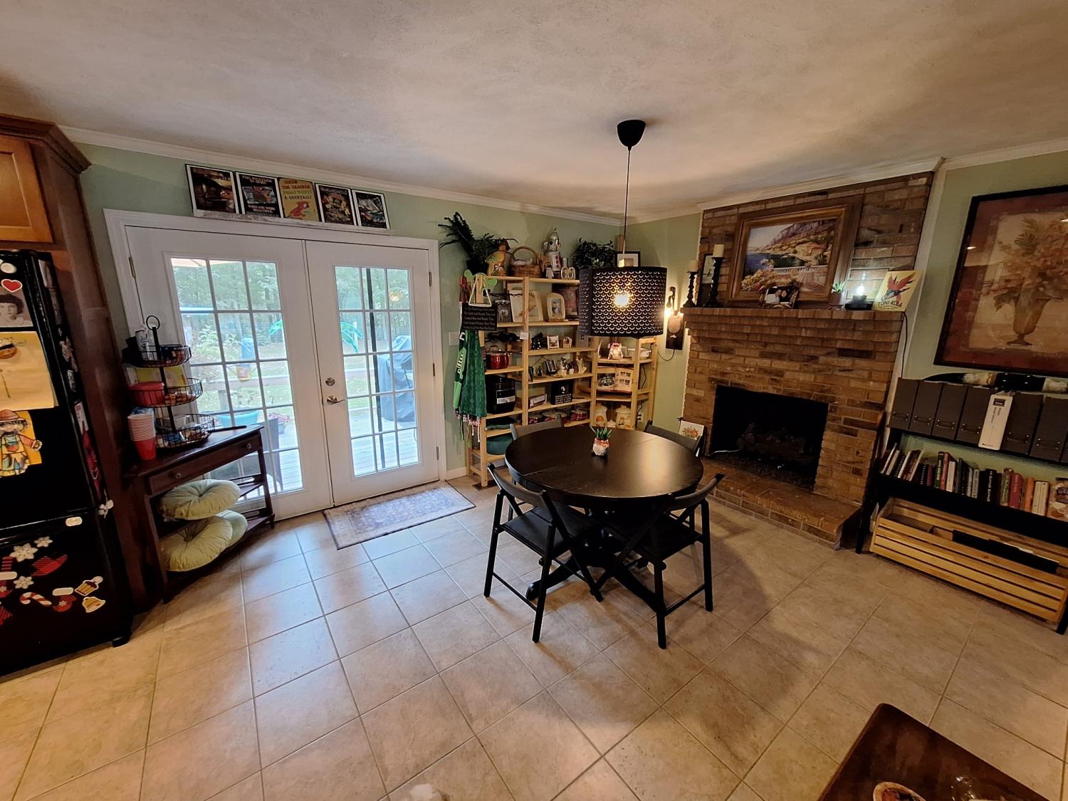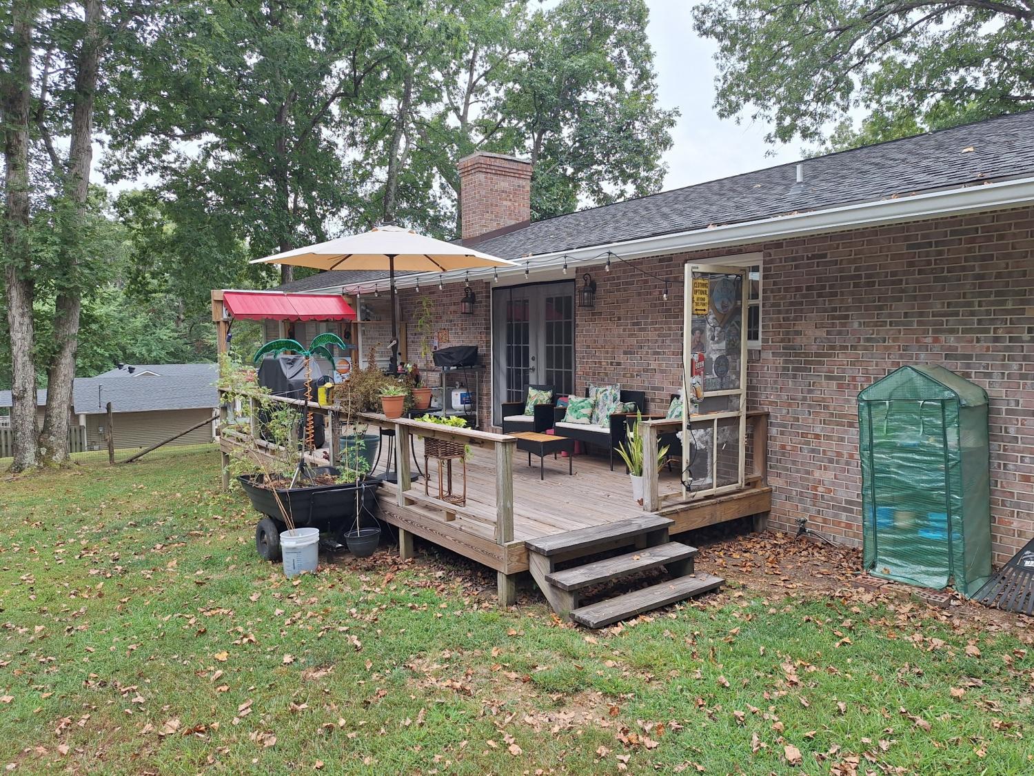 Welcome to your new home nestled in the sought-after Green Acres Subdivision! This charming brick house boasts three spacious bedrooms and two well-appointed bathrooms, providing ample space for family living or entertaining guests. Step inside to discover a cozy dining room featuring a gas brick fireplace, perfect for creating warm and inviting memories around the dinner table. The heart of the home is accentuated by stunning concrete countertops and rich cherry cabinets in the kitchen, where all appliances stay, making it truly move-in ready. A convenient pantry in the utility room adds extra storage for all your culinary needs. French doors from the dining room lead you out to a beautiful back deck, offering a serene view of the shaded, fenced backyard—ideal for morning coffee or evening gatherings. Enjoy the convenience of a bathroom off the master bedroom for a touch of everyday luxury, along with the practicality of laminate, tile and carpet flooring throughout. The double carport provides shelter for your vehicles, while a storage shed equipped with electricity offers additional space for hobbies or tools. Located close to schools and all city amenities, this home is just minutes from the tranquil Lake Halford and nearby shopping areas. Don’t miss your chance to own this delightful property in a prime location—schedule your viewing today and step into a lifestyle of comfort and convenience! Buyer or buyer's agent to verify all pertinent information.