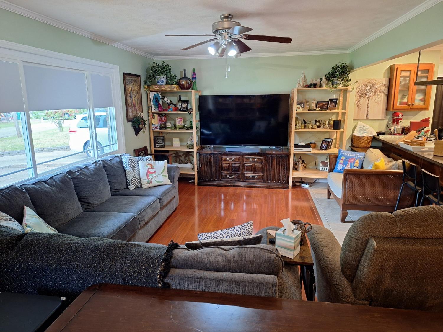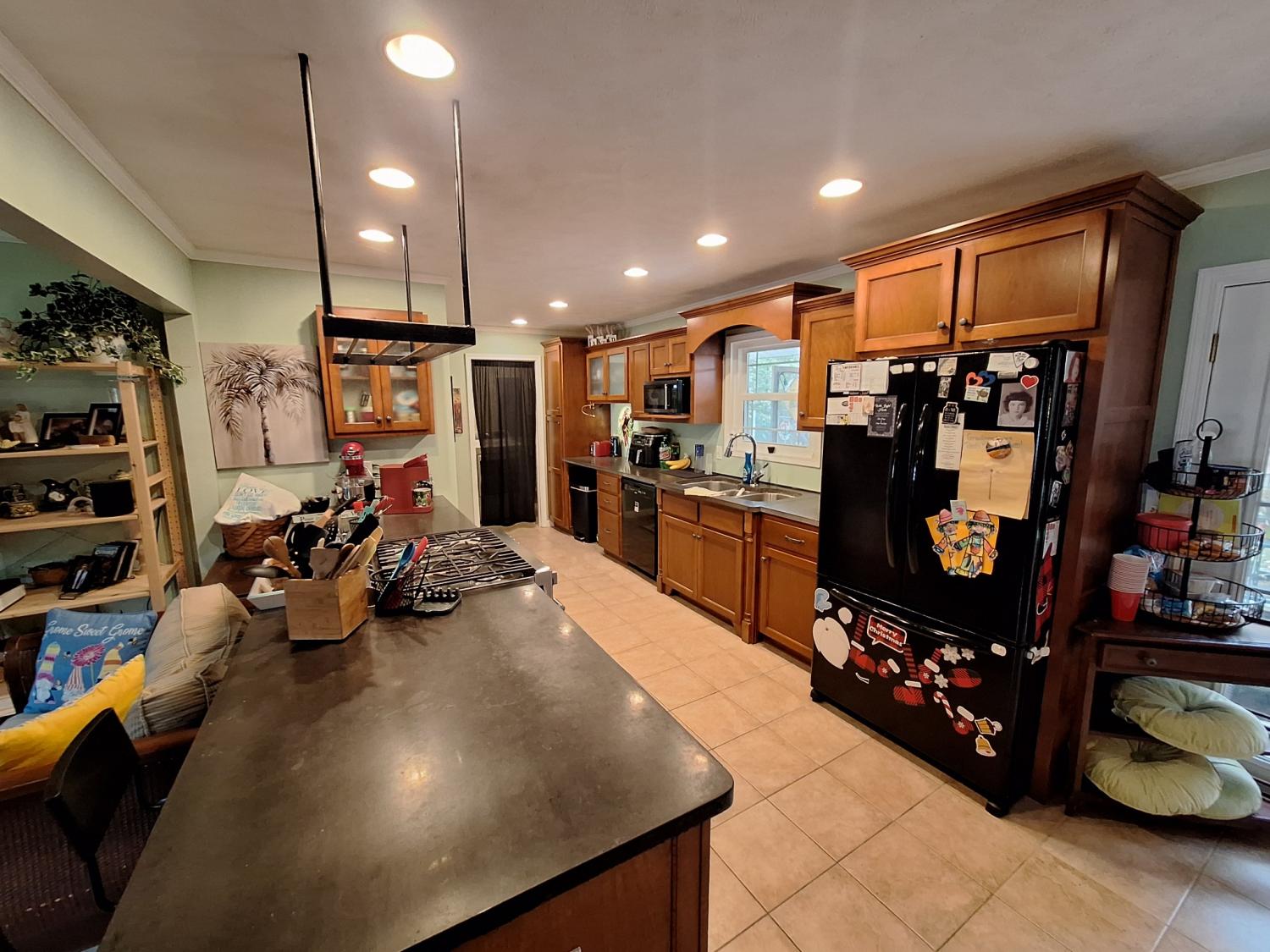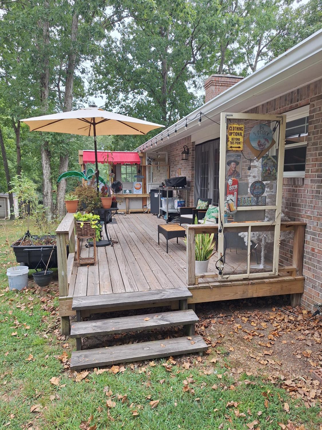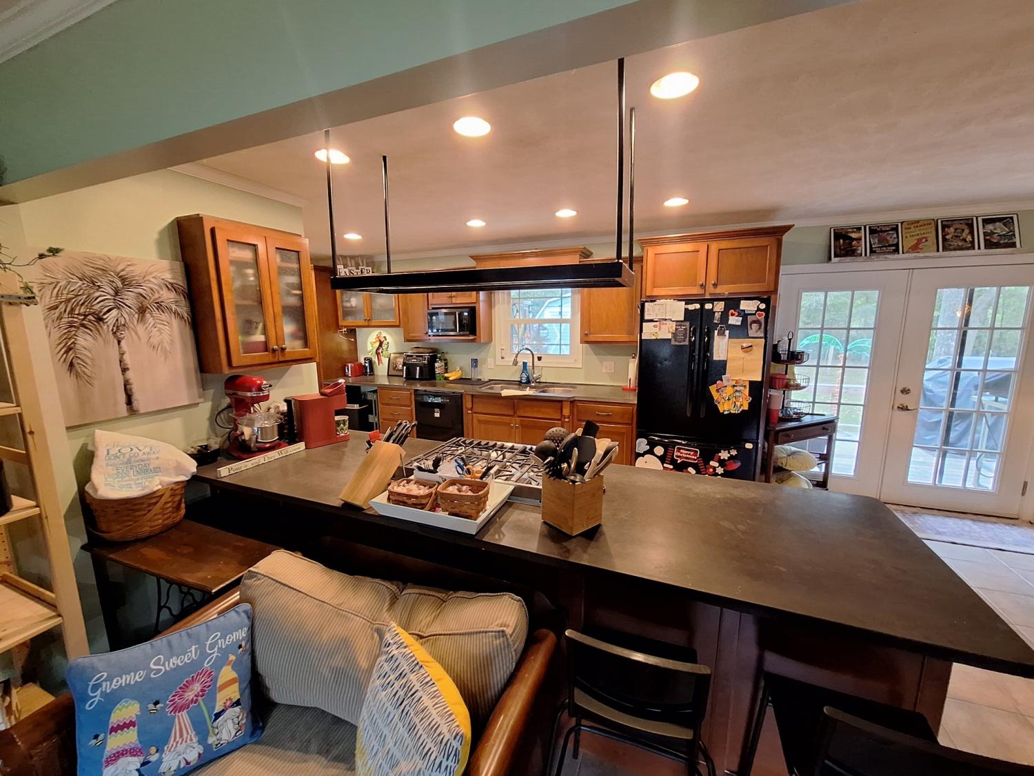 Welcome to your new home nestled in the sought-after Green Acres Subdivision! This charming brick house boasts three spacious bedrooms and two well-appointed bathrooms, providing ample space for family living or entertaining guests. Step inside to discover a cozy dining room featuring a gas brick fireplace, perfect for creating warm and inviting memories around the dinner table. The heart of the home is accentuated by stunning concrete countertops and rich cherry cabinets in the kitchen, where all appliances stay, making it truly move-in ready. A convenient pantry in the utility room adds extra storage for all your culinary needs. French doors from the dining room lead you out to a beautiful back deck, offering a serene view of the shaded, fenced backyard—ideal for morning coffee or evening gatherings. Enjoy the convenience of a bathroom off the master bedroom for a touch of everyday luxury, along with the practicality of laminate, tile and carpet flooring throughout. The double carport provides shelter for your vehicles, while a storage shed equipped with electricity offers additional space for hobbies or tools. Located close to schools and all city amenities, this home is just minutes from the tranquil Lake Halford and nearby shopping areas. Don’t miss your chance to own this delightful property in a prime location—schedule your viewing today and step into a lifestyle of comfort and convenience! Buyer or buyer's agent to verify all pertinent information.