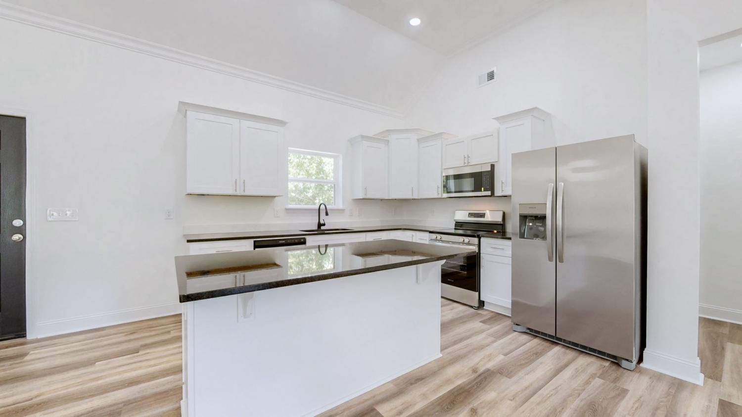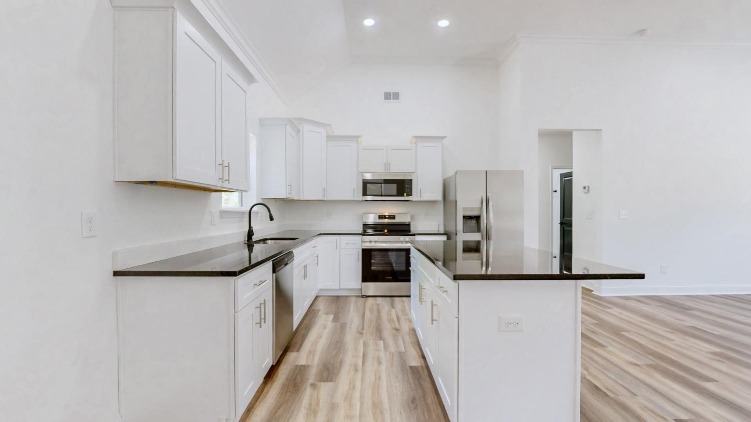 Brand-new single-story home just minutes from the heart of Shelbyville! This 3-bedroom, 2.5-bathroom property features soaring ceilings, an open-concept layout, and a modern kitchen with a large island, quartz countertops, and stainless steel appliances—including refrigerator. Waterproof laminate flooring runs throughout for style and durability. Enjoy a one-car garage, spacious primary suite, and spacious laundry room. One-year builder’s warranty included. 1% towards closing costs with preferred lender.
