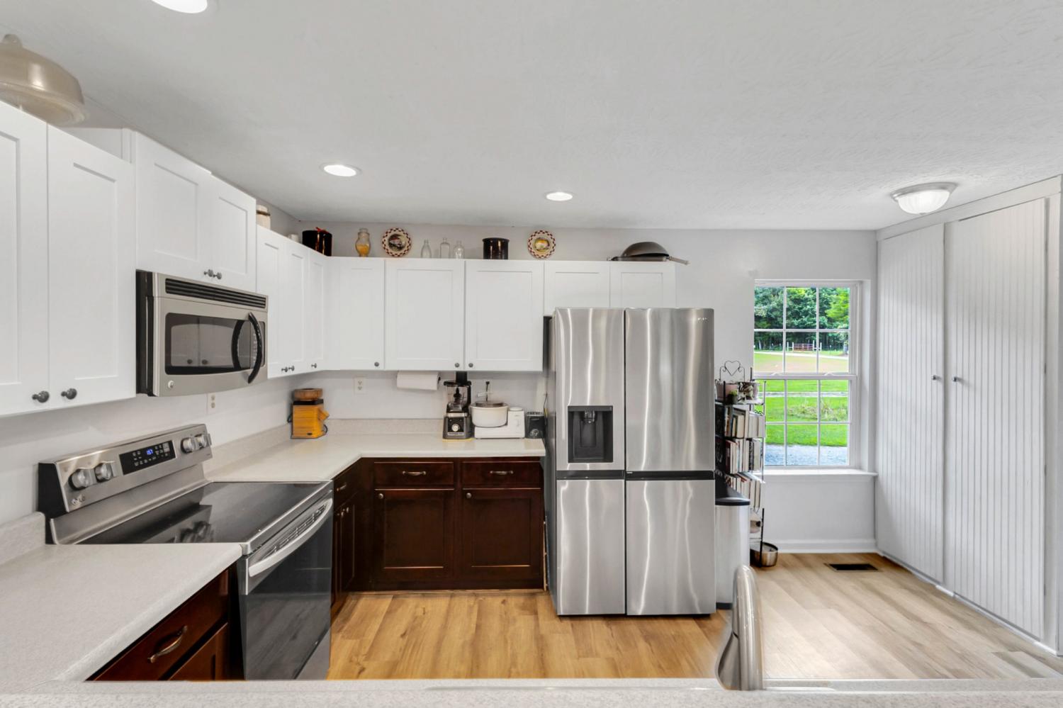 26+ Acres of Country Freedom! – Bring Your Horses, Goats & Chickens! This newly surveyed 26-acre mini farm on a quiet dead-end country road just south of Shelbyville. Bring your goats, horses, and chickens—this property offers open pasture, room to roam, and a true homesteader’s lifestyle. The home features 4 bedrooms, 2 baths, and has been updated with new flooring, modern cabinets, fresh paint, a newer roof, and an HVAC system. Inside, you’ll love the open living, dining, and kitchen areas, with a wood-burning stove adding warmth and charm. French doors lead to the backyard and patio, perfect for morning coffee or stunning evening sunsets. The spacious owner’s suite offers a whirlpool tub for relaxation, double vanities and his/her walk-in closets. Outdoors, enjoy established fruit trees, berry bushes, and grapevines—or plant a huge vegetable garden. Watch deer, turkey and other wildlife from your back patio, and take advantage of the additional building site to expand, build another barn, or create a multi-generational retreat. This peaceful property is the perfect blend of comfort, charm, and country living—a true homesteader’s dream!