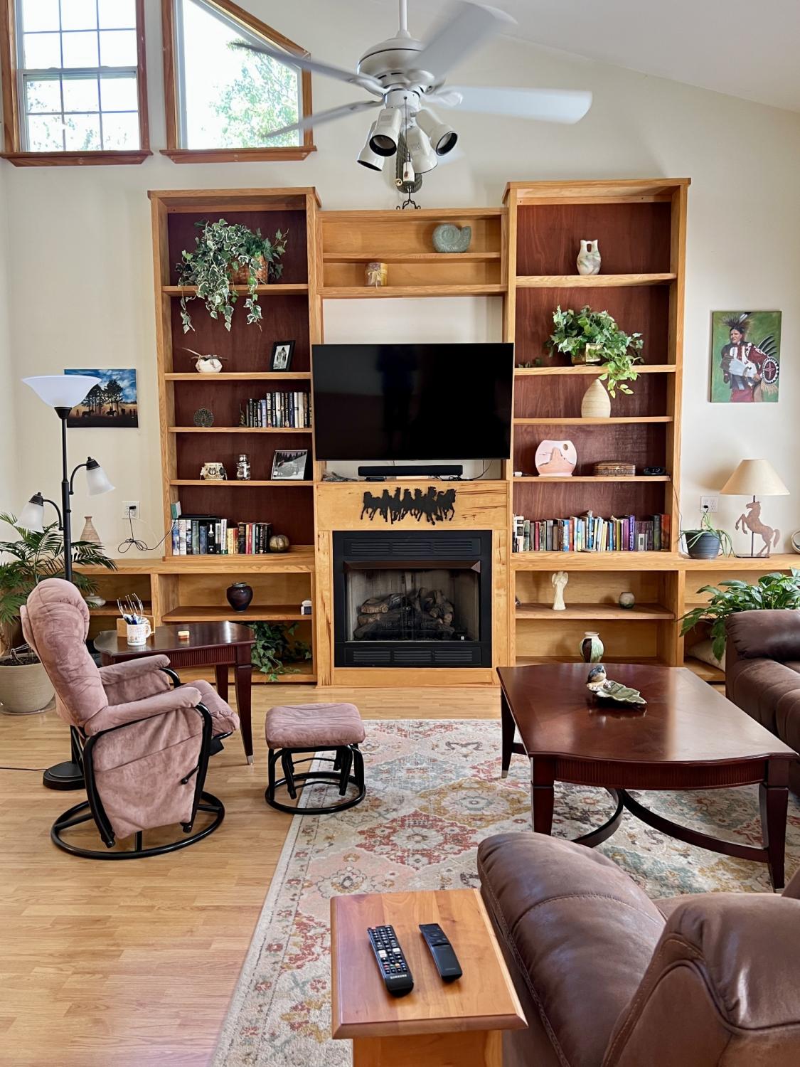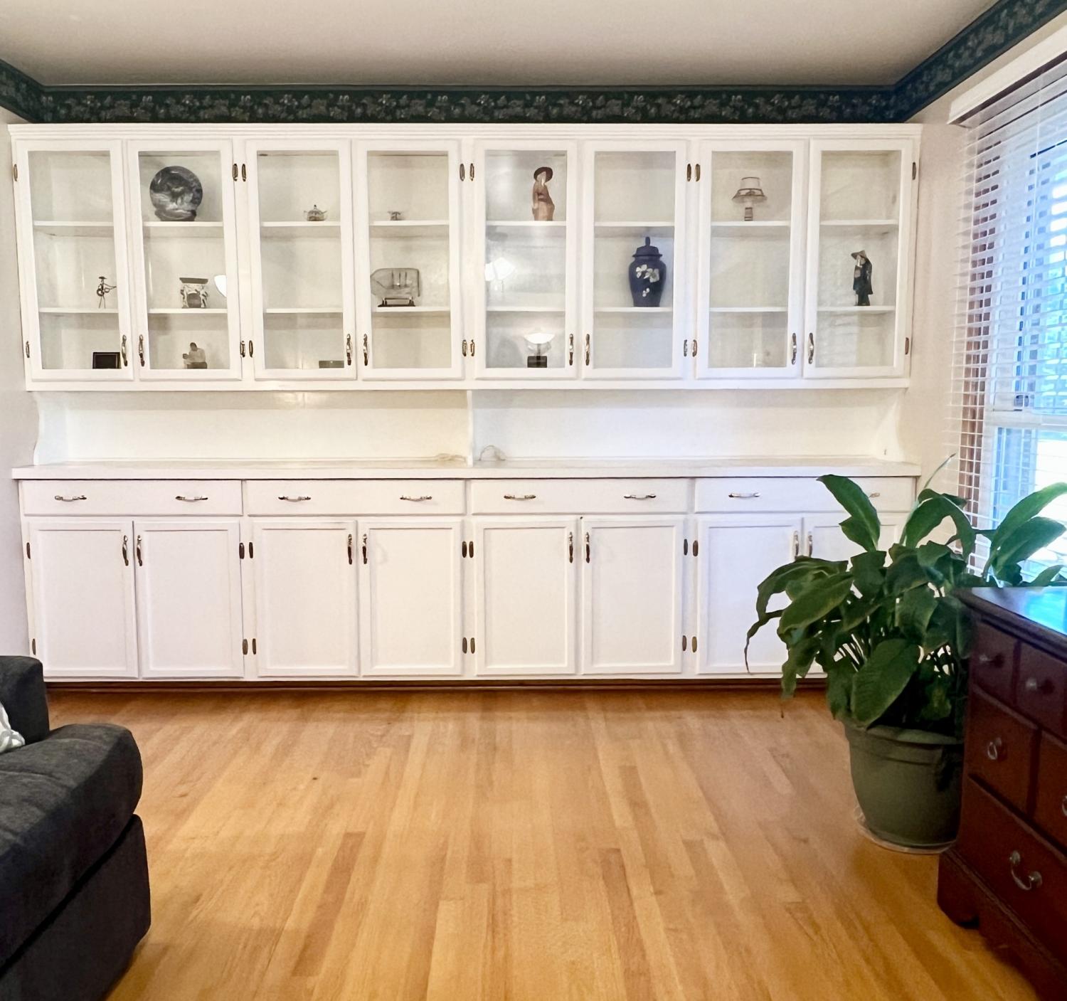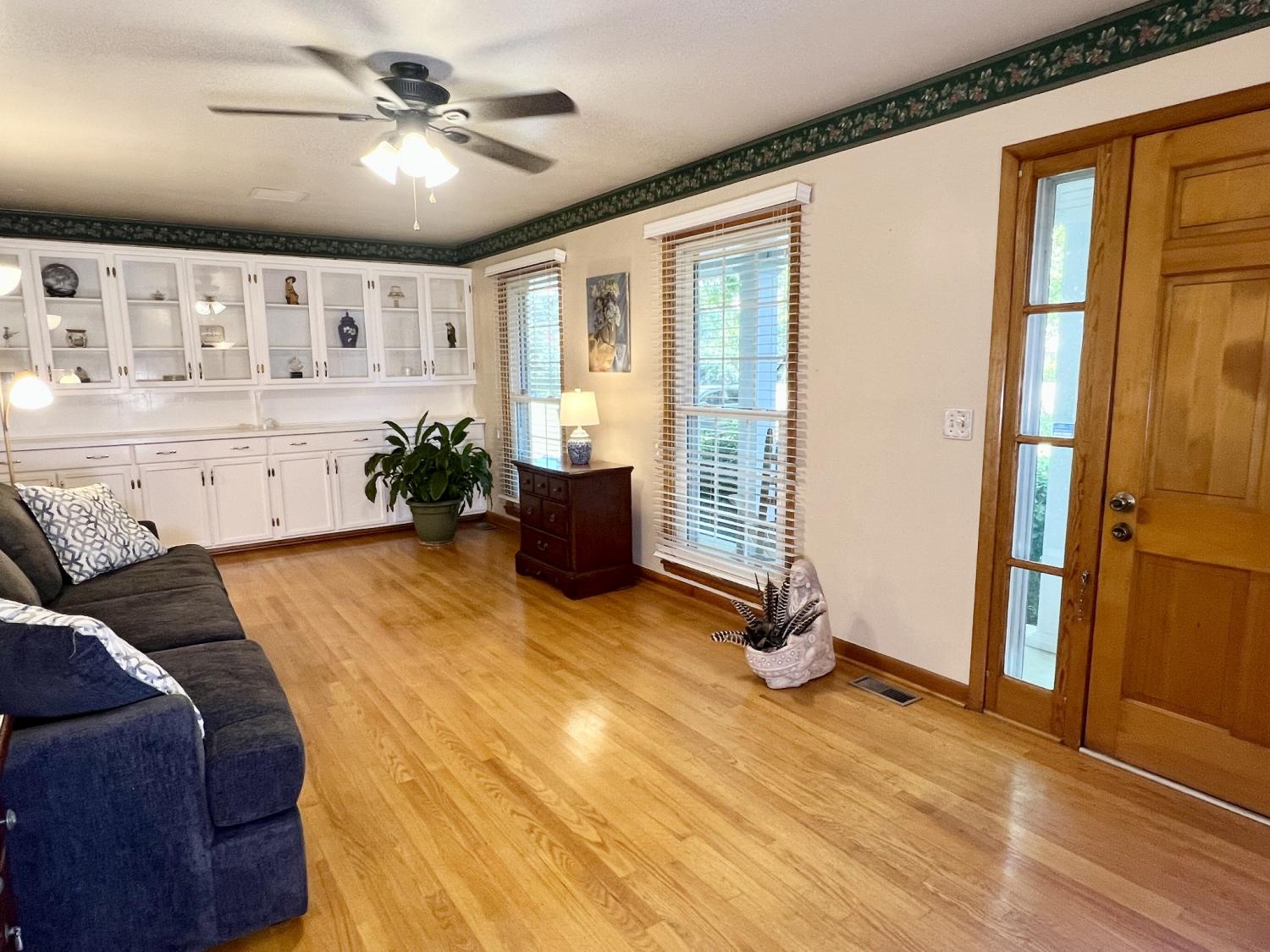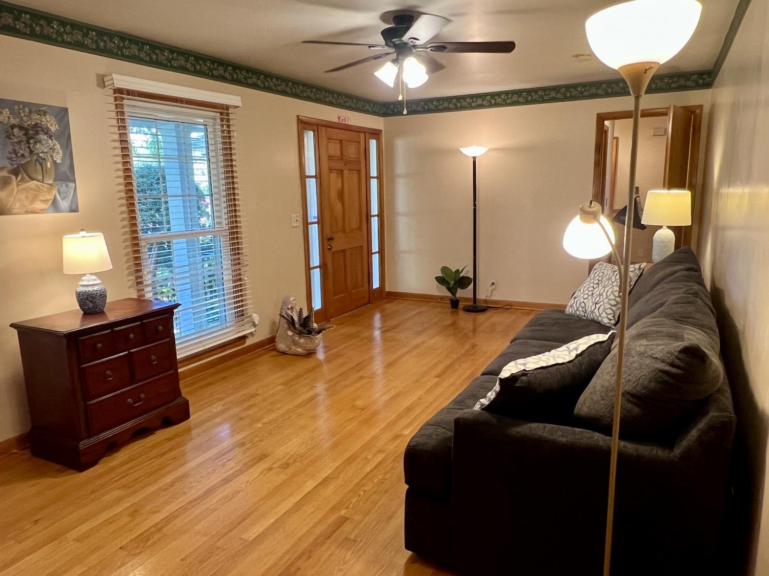 Down a quiet cul-de-sac in a highly desirable neighborhood, sits a spacious Mid-Century charmer in the shade of a beautifully & professionally landscaped half acre. It is truly a rare opportunity to own this prestigious home in the prime location of Murfreesboro! 2010 Sanders Ct awaits your touch to its many possibilities. From the covered front porch your entry is into the formal den with shining hardwood floors, floor length tall windows and wall to wall built in cabinets with glass doors. The kitchen is presented as it was originally designed plus a storage pantry and hardwood paneling. The large dining room off of the kitchen features a lovely built in cabinet and glass display upper cabinets perfect for a beverage station, added serving space, or curio cabinet. Opening from the dining room is the true heart of this home, a huge vaulted living room with gas fireplace and stunning tall shelving. This sizable room has a door to the patio as well as a large storage closet, unique to home of this year. Also in this living room is a large loft waiting for you to make it your own hobby room, fitness space, home office; it has countless options to suit you. This cool space has a large walk in closet, wall length cabinets complete with a sink, in addition to a built in desk with cabinet & shelves. The generously sized primary bedroom features windows overlooking the backyard, a walk in closet and adjoining full bath with extra long vanity space. The front bedroom also has a full ensuite bathroom with a Hollywood glamour vanity. Outside this home is just as comfy feeling as the inside with it's semi-private space. There is an extra large concrete patio perfect for grilling and chilling overlooking the gardens of the backyard. Ample parking plus a 2 car garage with automatic doors. The front yard is long and level with several mature shade trees. The walkway to the front door is stunning and welcoming with all the green flowing beds. LOW RATE ASSUMABLE MORTGAGE AVAILABLE