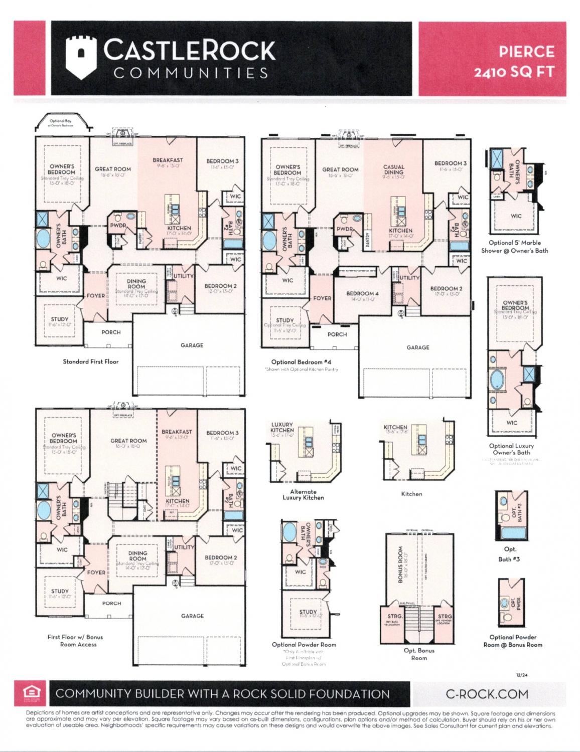 Presenting the Pierce Floorplan by CastleRock Communities. Featuring: 1/2 Acre Premium Lot, over $138,000 in Beautiful Upgrades, Luxury Kitchen, Vaulted Ceiling in Bonus Room, Luxury Owner's Bath, Oak Hardwood Treads, Optional Second Floor with Bonus Room and Full Bath, Covered Living Deck, 3-Car Garage, and 4-Sided Brick!