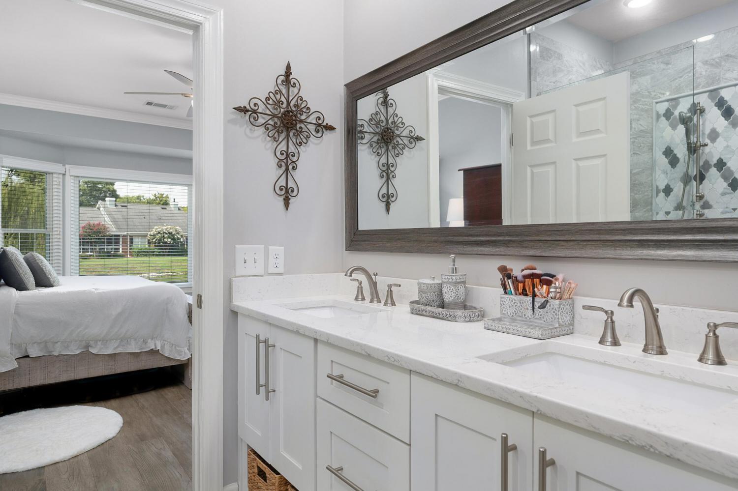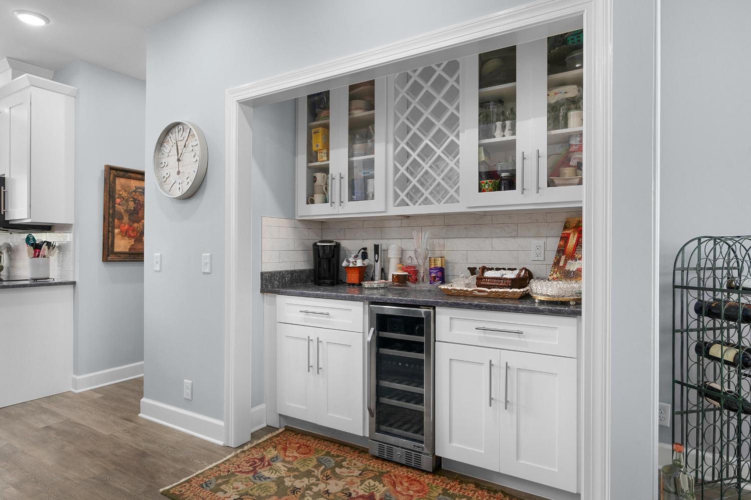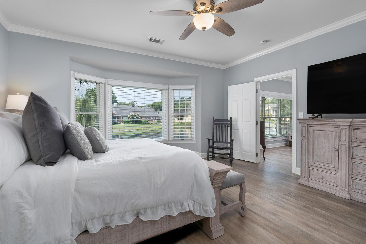 Fantastic opportunity in the desirable Heritage Landing gated community within walking distance to the parks, shopping and restaurants of the North Shore, and close to schools, hiking trails, the Tennessee Riverfront, hospitals, and downtown Chattanooga. This updated, 3 bedroom, 2.5 bath unit boasts engineered hardwoods, crown moldings, decorative lighting, the primary suite on the main, a double garage and views of one of the many community ponds with fountains. Your tour begins with entry from the covered front porch to the 2-story foyer which has access to the kitchen, living room, powder room and the garage. The living room is spacious and has a gas fireplace and opens to the formal dining room and the rear deck overlooking the pond. The dining room also opens to a butler's pantry area that has a dry bar with glass display cabinetry, wine rack and wine fridge and flows into the kitchen - perfect as your beverage center and staging area when entertaining. The kitchen has granite countertops, tile backsplash, sift-close cabinetry, sleek black stainless-steel appliances and a pantry. The primary bedroom is also large and has a bay window, a walk-in closet and private bath with a dual vanity, a separate shower with a bench seat and tile and glass surround, as well as a nice linen closet. The washer/dryer hook-ups are just a few steps away in the garage, as is the pull-down attic access. Head upstairs where you will find 2 additional bedrooms adjoined by a shared bath and a nice walk-in storage or hobby room. All of this and the neighborhood offers a gated entry with a guardhouse, 2 pools, tennis courts, sidewalks and a clubhouse. If you are looking for quality finishes, a great floor plan and a convenient location, then this could be the spot for you, please call for more information and to schedule your private showing today. Information is deemed reliable but not guaranteed. Buyer to verify any and information they deem important.