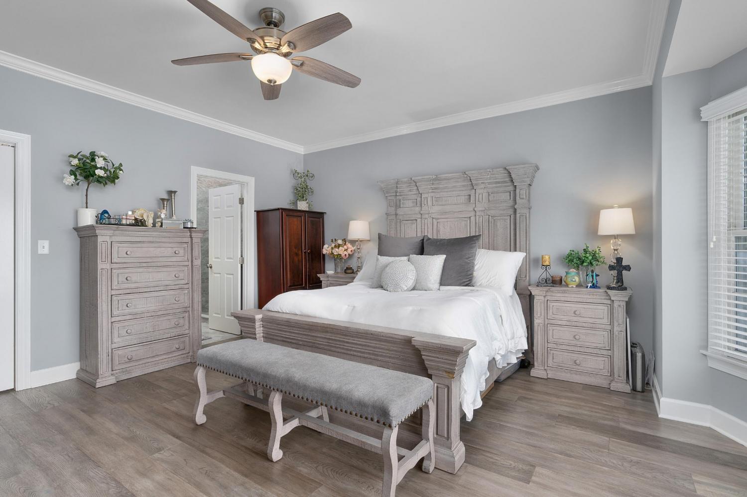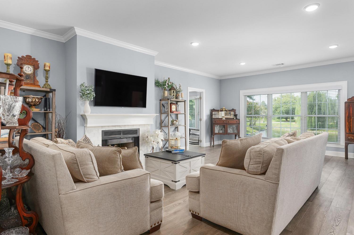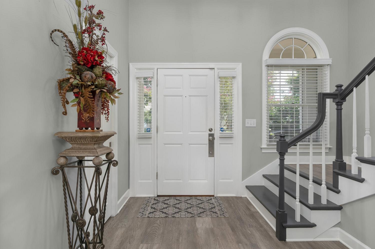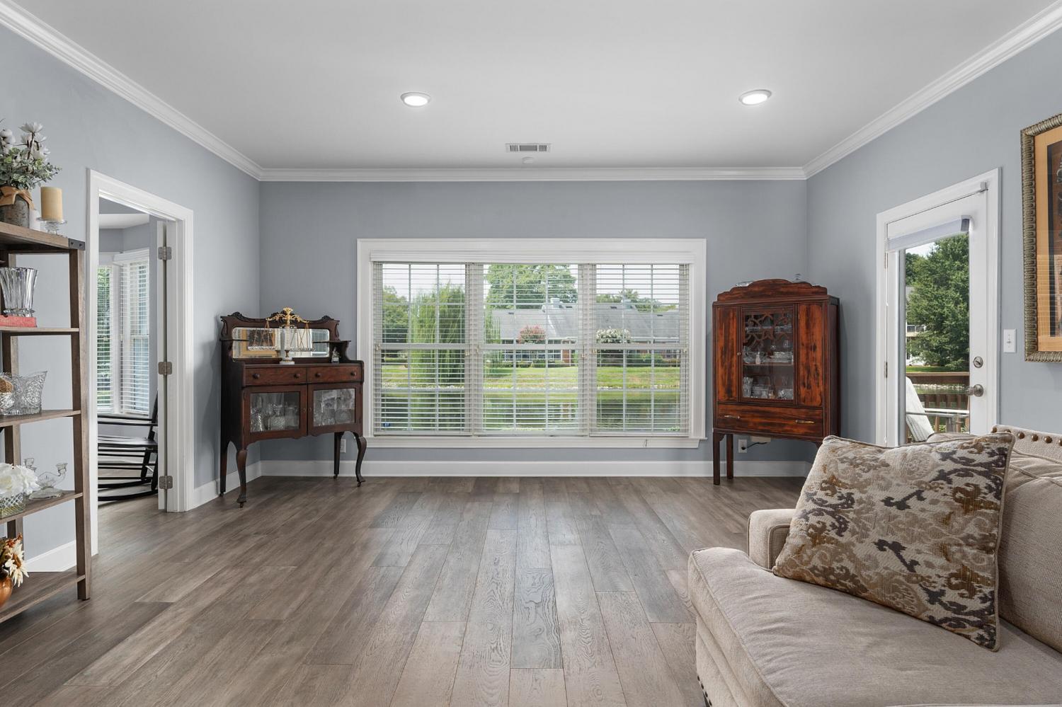 Fantastic opportunity in the desirable Heritage Landing gated community within walking distance to the parks, shopping and restaurants of the North Shore, and close to schools, hiking trails, the Tennessee Riverfront, hospitals, and downtown Chattanooga. This updated, 3 bedroom, 2.5 bath unit boasts engineered hardwoods, crown moldings, decorative lighting, the primary suite on the main, a double garage and views of one of the many community ponds with fountains. Your tour begins with entry from the covered front porch to the 2-story foyer which has access to the kitchen, living room, powder room and the garage. The living room is spacious and has a gas fireplace and opens to the formal dining room and the rear deck overlooking the pond. The dining room also opens to a butler's pantry area that has a dry bar with glass display cabinetry, wine rack and wine fridge and flows into the kitchen - perfect as your beverage center and staging area when entertaining. The kitchen has granite countertops, tile backsplash, sift-close cabinetry, sleek black stainless-steel appliances and a pantry. The primary bedroom is also large and has a bay window, a walk-in closet and private bath with a dual vanity, a separate shower with a bench seat and tile and glass surround, as well as a nice linen closet. The washer/dryer hook-ups are just a few steps away in the garage, as is the pull-down attic access. Head upstairs where you will find 2 additional bedrooms adjoined by a shared bath and a nice walk-in storage or hobby room. All of this and the neighborhood offers a gated entry with a guardhouse, 2 pools, tennis courts, sidewalks and a clubhouse. If you are looking for quality finishes, a great floor plan and a convenient location, then this could be the spot for you, please call for more information and to schedule your private showing today. Information is deemed reliable but not guaranteed. Buyer to verify any and information they deem important.