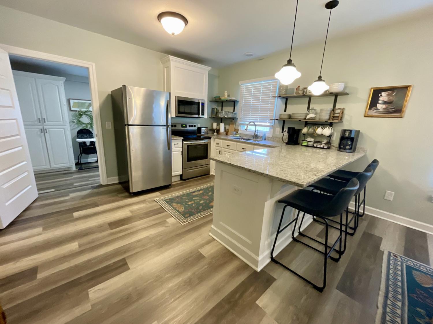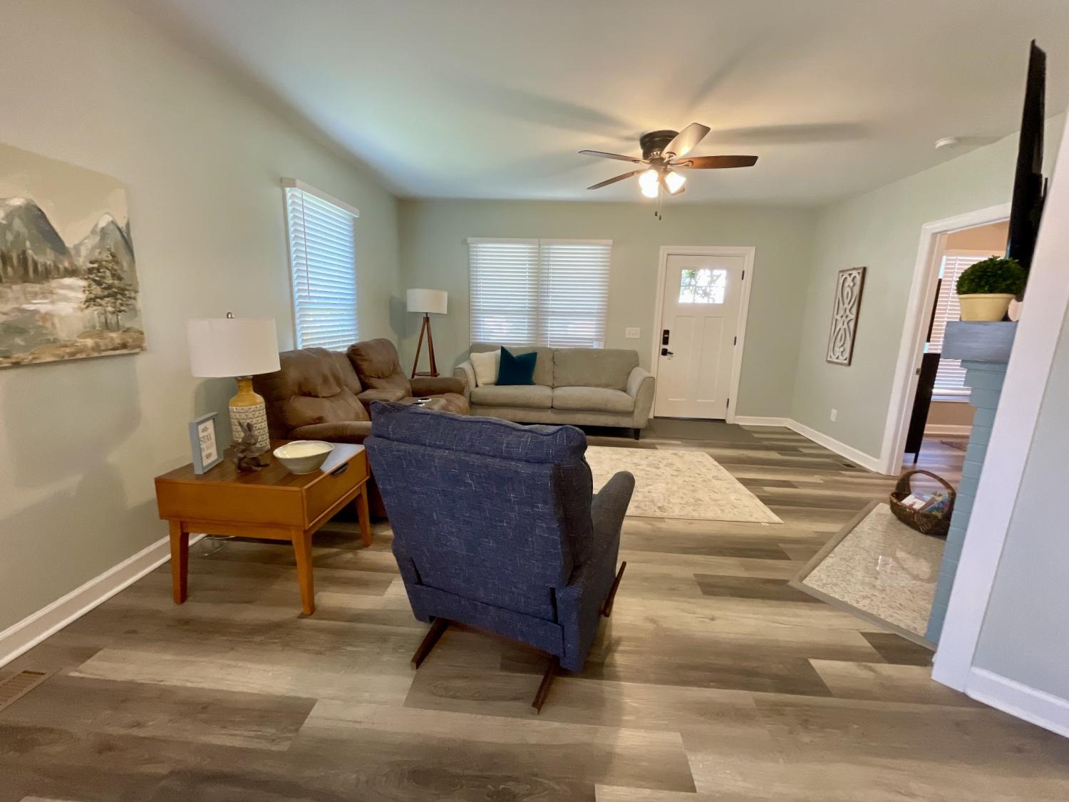 Fully Furnished, move-in ready home in Lawrenceburg. This 3 bedroom 1 bath home includes all furniture/decor, Stainless steel appliances, and washer/dryer. Home has been used as an AirBnB for the last few years, and is ready to continue as such, or to be a stress free option without the hassle of moving furniture and appliances. Covered front porch and fully fenced in back yard.