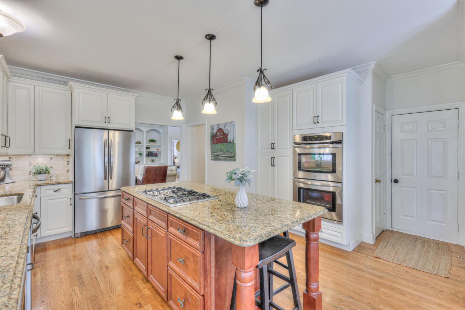 Beautiful one-owner all-brick home with hardwood floors throughout the main level. The spacious primary suite is located on the first floor, and the two-story entry opens into a light-filled living room with built-ins flanking a gas fireplace. The eat-in kitchen features granite counters, a tile backsplash, center island with breakfast seating, gas cooktop, built-in double oven, and stainless appliances. Upstairs, you’ll find two bedrooms with walk-in closets and a large bonus room. The park-like backyard is designed for entertaining with extensive landscaping, privacy fencing, and a stamped concrete patio with a tongue-and-groove wood ceiling, stacked-stone wood-burning fireplace, and built-in grill. Irrigation is provided by well water on site.