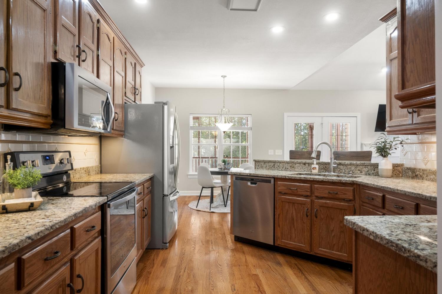 Welcome home to 7435 Coastal Drive! This amazing Harrison home is located in Island Point Estates between Highway 58 and Snow Hill Road, and only 30 minutes from downtown Chattanooga. This home is within 10 minutes of four boat ramps. Island Point community amenities include pickleball/ tennis court(s). This mostly brick 1998 Bill Fine single story home features 3 Bedrooms and 2.5 Baths (on main level) with a finished Bonus Room over the three car garage. When you enter the home, you arrive in the Foyer. Directly ahead is the spacious Great Room with hardwood flooring, gas log fireplace, and vaulted ceiling. To the right of the Foyer are the Guest Bedrooms and Full Bath. To the left is the Dining Room. The Great Room is combined with the Kitchen and casual dining area. A patio door leads to a spacious Screened Porch and expansive deck. The Kitchen has granite countertops, tile backsplash, under-cabinet lighting. Stainless Whirlpool appliances include a microwave/hood, electric range, integrated dishwasher, Adjacent to the Kitchen is a hallway leading to the garage, pantry, laundry with built-in desk area. The Primary Suite is a private retreat located away from the living areas on the back of the home with access to the Screened Porch. Featuring fresh paint , the Primary Bedroom is generously-sized and features an updated Bathroom with double sink vanity; jetted tub; walk-in shower with glass enclosure; and walk-in closet. Out the back is a screened deck and large uncovered deck. Stairs lead from the Great Room to a spacious finished basement with a bathroom and kitchen. There is HVAC throughout the basement! Additional parking for a RV in back of the home.