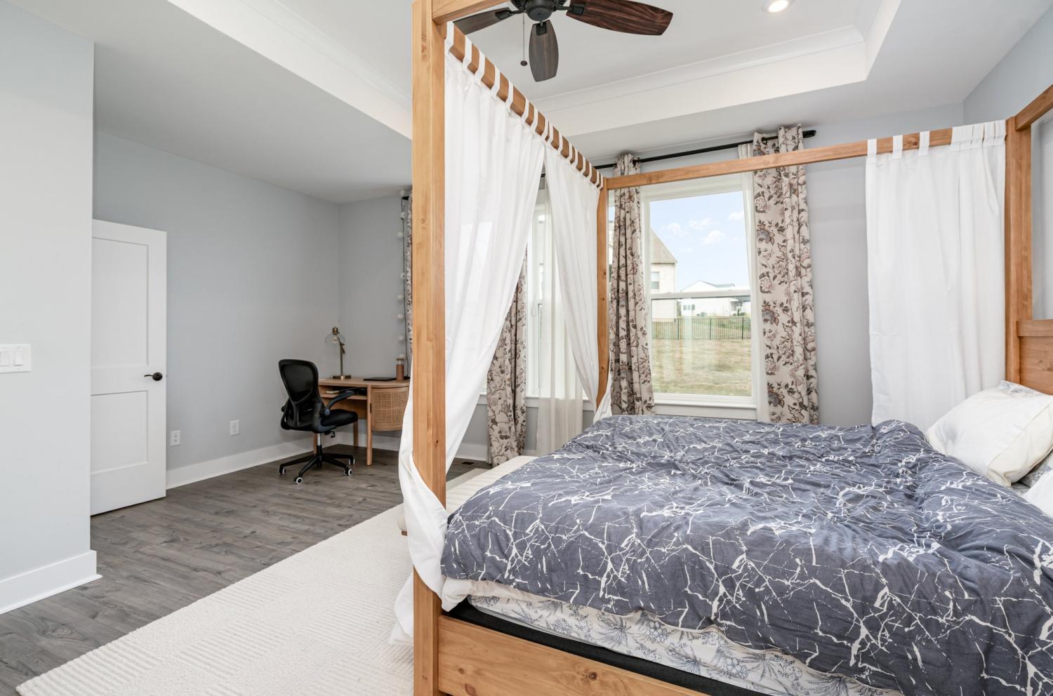 Turnkey Luxury with $145K+ in Upgrades—Rare Opportunity on Premium Lot! This all-brick Drees home features a 3-car garage, expansive screened-in patio, luxurious office with coffered ceiling and French doors, and the largest lot in Ashton Park—privately tucked beside green space. Minutes from the lake, parks, shopping, and major connectors, it offers a lifestyle of convenience and outdoor enjoyment. Inside, vaulted ceilings with cedar beams, designer window treatments, a shiplap fireplace, and abundant natural light create a warm, open atmosphere. The kitchen flows into the living area and patio, while custom hardscaping and a firepit extend the living space outdoors. Enjoy easy main-level living with a spacious primary suite, spa-like bath, walk-in closet, two additional bedrooms, PLUS an office. Upstairs offers a fourth bedroom, full bath, and generous bonus room—ideal for guests, media, or work-from-home. Schedule your private tour today!