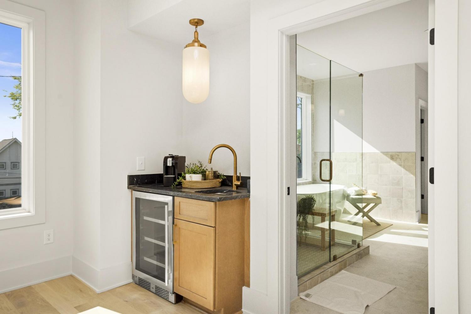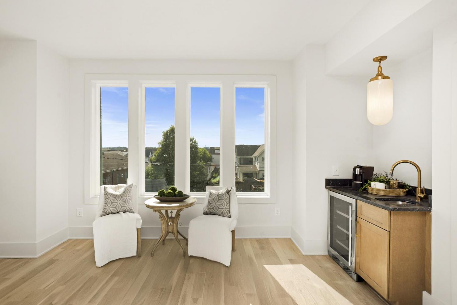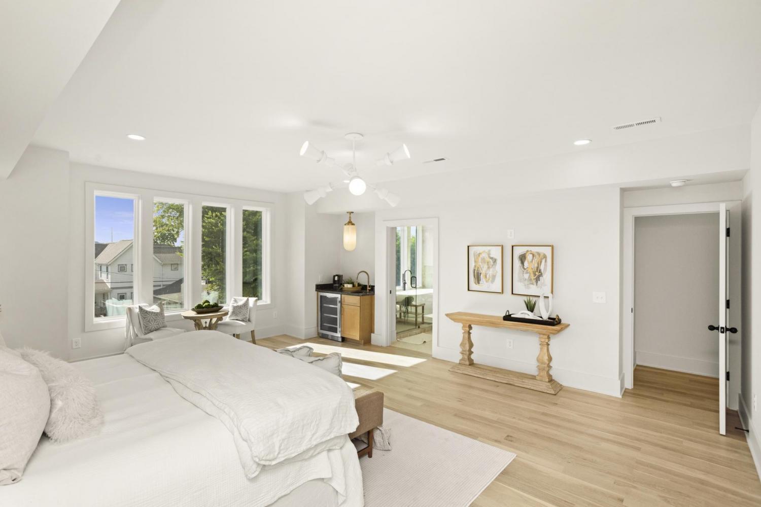Rare 6-Bedroom Luxury Home in The Nations with Rooftop Deck and Epic Views - Welcome to this new construction home in The Nations, one of Nashville’s most vibrant and walkable neighborhoods. Just steps from coffee shops, restaurants, breweries, and shopping, this property combines everyday convenience with high-end design. Offering six bedrooms, a rarity in this area, the home is thoughtfully designed with exceptional finishes and expansive living spaces. The interiors showcase whitewashed, sand-finished white oak floors throughout the home. Soaring 10-foot ceilings add to the grandeur, and open and airy feel. The chef’s kitchen is gorgeous with quartzite countertops featuring a dramatic waterfall edge, high-end cabinetry and appliances, and a walk-in pantry with granite countertops for additional prep and storage. The primary suite is a true retreat, offering a massive layout with amazing views from the wall of windows, a huge walk-in closet with a built-in vanity, a spa-inspired bathroom with waterfall quartzite countertops, and its own wet bar with beverage refrigerator and sink, perfect for your morning coffee. Upstairs, the third floor offers a very large bonus room with a wall of built-in cabinetry that incorporates another wet bar complete with a beverage refrigerator and ice maker, making it the ultimate entertaining space. This level also provides direct access to the rooftop deck, where stunning sunset views create the perfect backdrop for gatherings or private evenings at home. Also, featuring a large two-car attached garage offering convenience and security. With six bedrooms, you'll have the space for an office, exercise and/or craft room, if so desired. Set in The Nations, known for its walkability, strong community, and thriving local scene, this home is a rare find offering both size and sophistication in one of Nashville’s most desirable neighborhoods.The front and side yard will be a great place for your pets, fence negotiable.