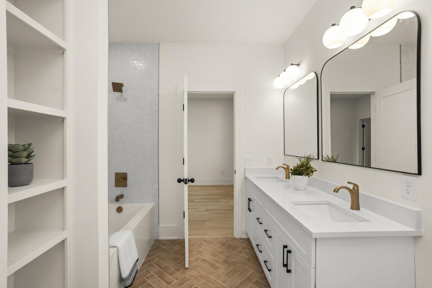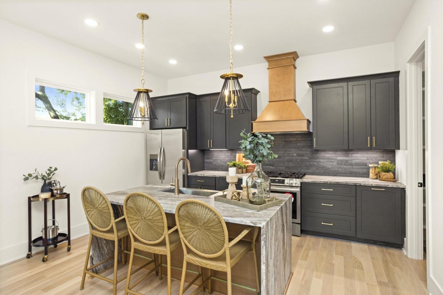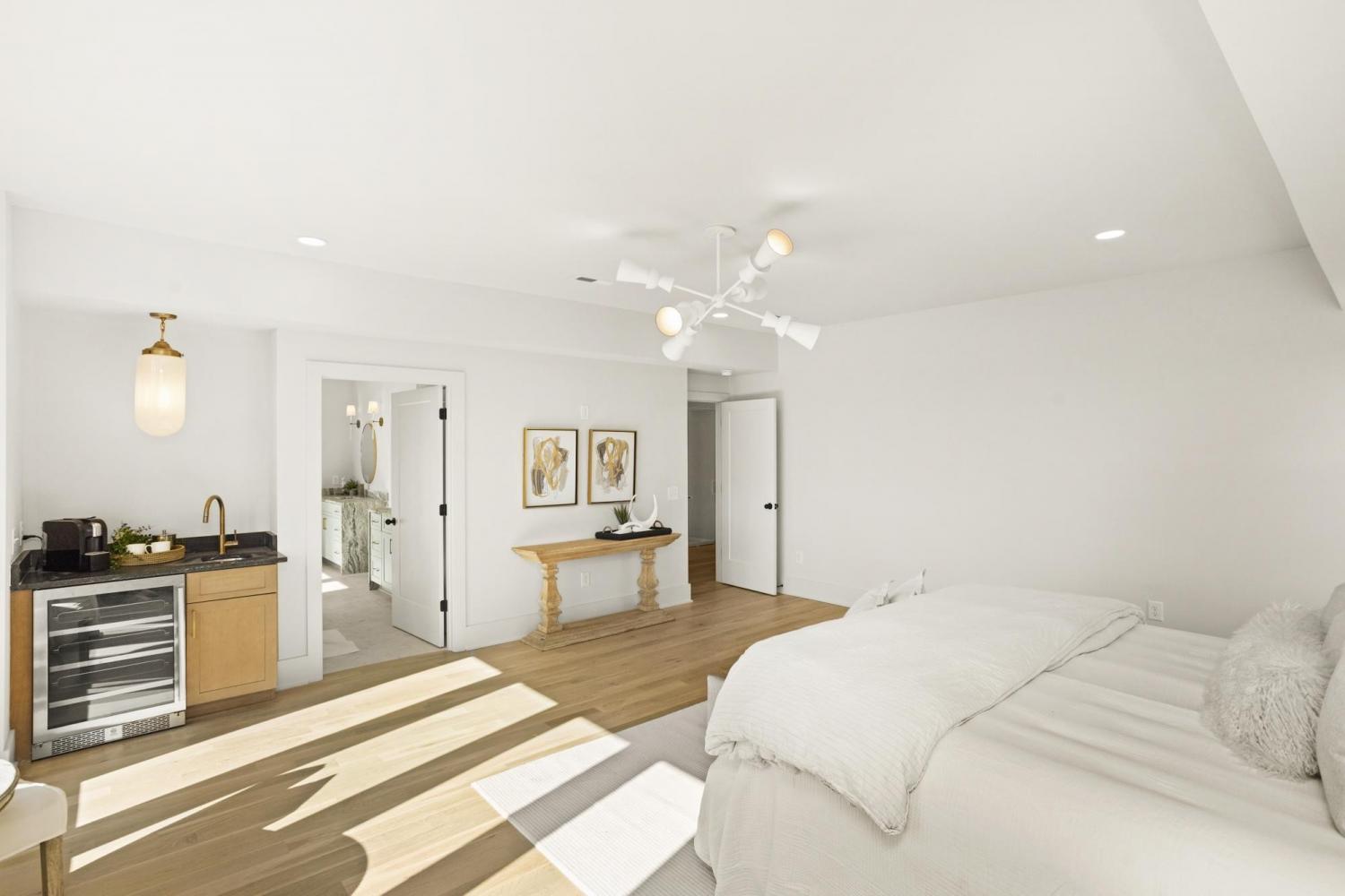 Rare 6-Bedroom Luxury Home in The Nations with Rooftop Deck and Epic Views - Welcome to this new construction home in The Nations, one of Nashville’s most vibrant and walkable neighborhoods. Just steps from coffee shops, restaurants, breweries, and shopping, this property combines everyday convenience with high-end design. Offering six bedrooms, a rarity in this area, the home is thoughtfully designed with exceptional finishes and expansive living spaces. The interiors showcase whitewashed, sand-finished white oak floors throughout the home. Soaring 10-foot ceilings add to the grandeur, and open and airy feel. The chef’s kitchen is gorgeous with quartzite countertops featuring a dramatic waterfall edge, high-end cabinetry and appliances, and a walk-in pantry with granite countertops for additional prep and storage. The primary suite is a true retreat, offering a massive layout with amazing views from the wall of windows, a huge walk-in closet with a built-in vanity, a spa-inspired bathroom with waterfall quartzite countertops, and its own wet bar with beverage refrigerator and sink, perfect for your morning coffee. Upstairs, the third floor offers a very large bonus room with a wall of built-in cabinetry that incorporates another wet bar complete with a beverage refrigerator and ice maker, making it the ultimate entertaining space. This level also provides direct access to the rooftop deck, where stunning sunset views create the perfect backdrop for gatherings or private evenings at home. Also, featuring a large two-car attached garage offering convenience and security. With six bedrooms, you'll have the space for an office, exercise and/or craft room, if so desired. Set in The Nations, known for its walkability, strong community, and thriving local scene, this home is a rare find offering both size and sophistication in one of Nashville’s most desirable neighborhoods.The front and side yard will be a great place for your pets, fence negotiable.