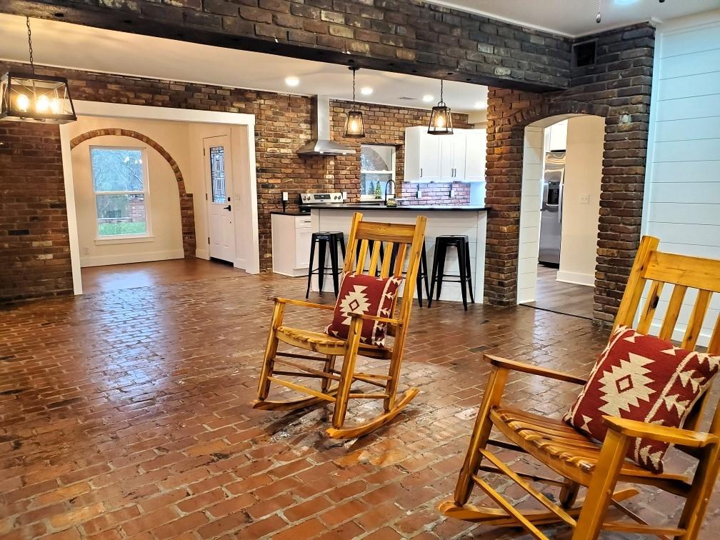 STUNNING SPANISH REVIVAL RETREAT tucked away in a secluded storybook setting. Meticulously rehabilitated from the ground up with a beautiful architectual facade. Modern luxury blends seamlessly throughout the home with hints of timeless character. Enduring features liked arched openings, a walled courtyard & original brickwork lend to it's rustic elegance. Cozy up to the restaurant-style wood burning fireplace in the living room. Contemporary kitchen with granite countertops, under cabinet lighting & stainless appliances with vented hood is a true chef's delight. Combination dining room provides maximum functionality with custom built-in display shelves to highlight your collectibles. Sip your coffee as you and your indoor plants capture the morning sun in the breakfast room. Make your way to the master suite that will amaze you with special design details, sunny sitting area & spa-like luxury bath. Guests will enjoy the spacious spare bedrooms and the family cat will appreciate the large window ledges to nap on. Zoned bonus room is separate from the main living area offering a private space for a den, home office, workshop, recording studio or game room. Plenty of parking in the 12x42 attached carport for vehicles, boats & equipment. Enjoy consistent comfort & lower utility bills thanks to the total encapsulation of whole-house spray foam insulation. Convenient to Magic Valley Golf Course & Raphaels Restaurant just around the bend, as well as the short drive to local attractions like Eva Beach & Public Boat Ramp at the Tennessee River, Nathan Bedford Forrest State Park & Beaver Dam Marina. Property has been surveyed and marked. It's unique, one of a kind, move-in ready & it's going to impress!