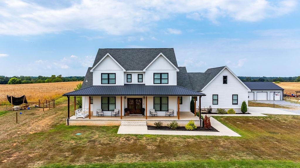 Welcome to your dream property at 3765 South Rd in Cadiz, KY! Nestled on 20 sprawling, unrestricted acres, this hard-to-find modern farmhouse offers the perfect blend of comfort, space, and country freedom. Featuring 6 bedrooms, 3 full baths, and 2 bonus rooms, this home provides ample space for family and guests alike. Enjoy thoughtful details throughout, including a butler’s pantry, walk-in closets, and large porches with peaceful views of the surrounding countryside. The property also includes a detached 3-car garage with a mother-in-law suite or additional living area, and partially fenced acreage ready for your horses or cattle. Whether you dream of starting an agribusiness, exploring recreational opportunities, or simply enjoying the privacy and tranquility of country living, this property offers endless potential. Bring your vision—and make this incredible estate your own!