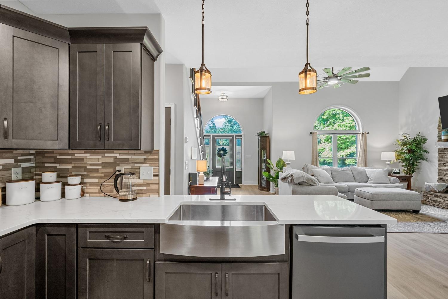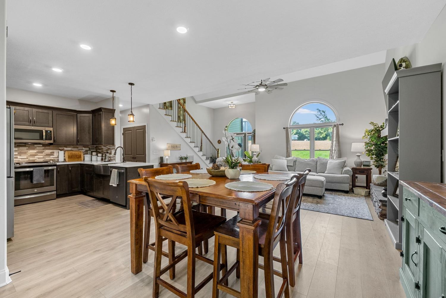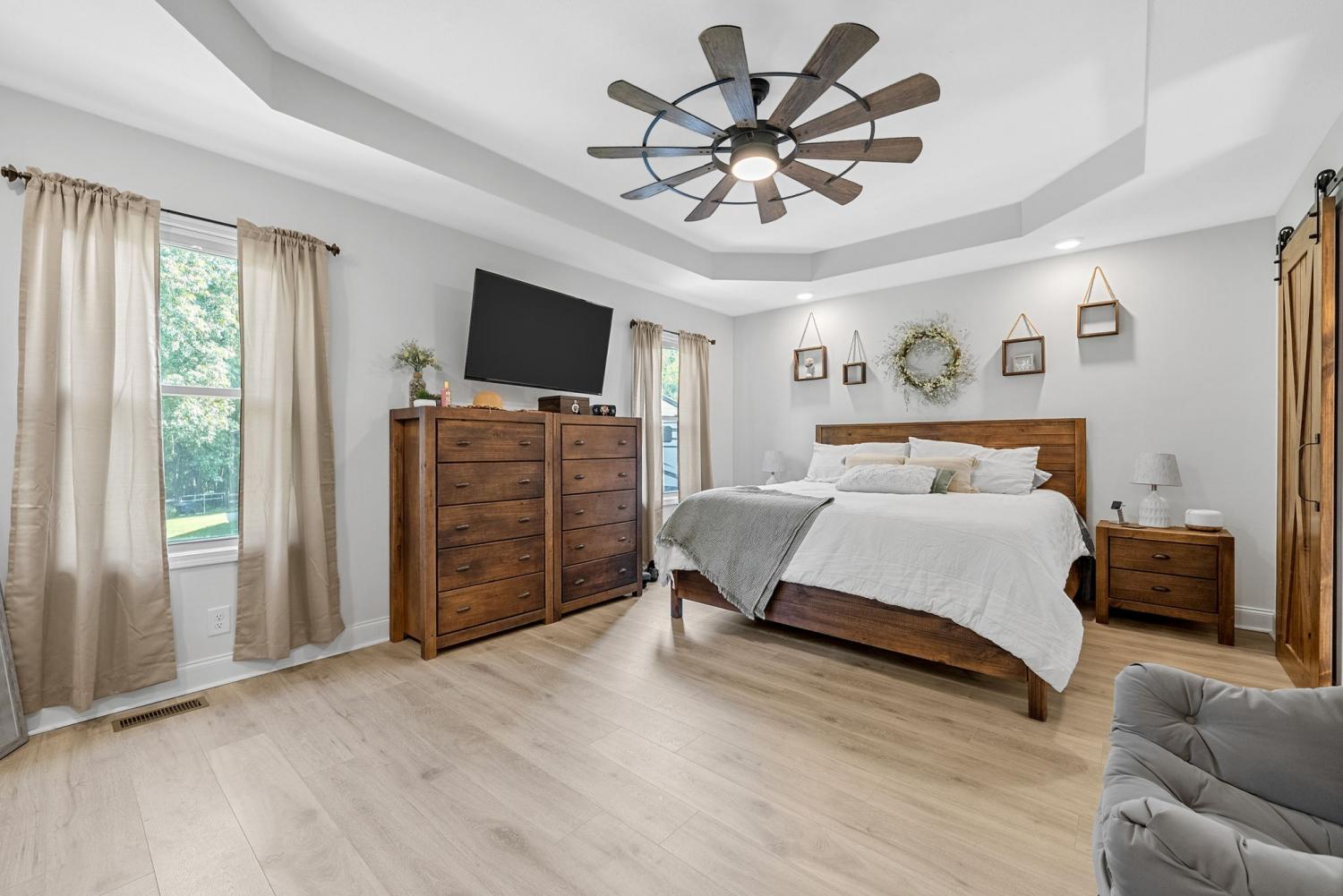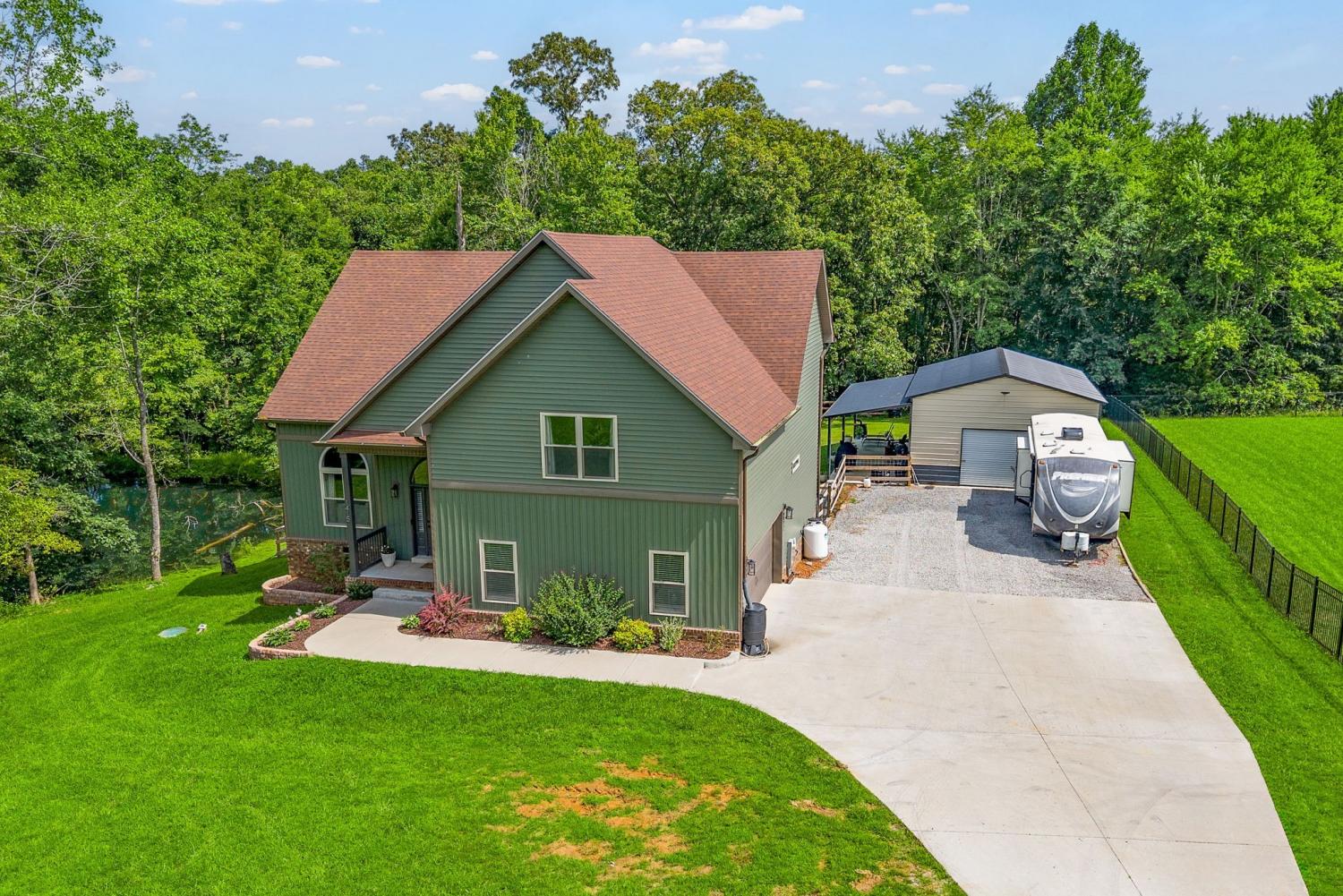 NO HOA! NO CITY TAXES! A long driveway welcomes you home to your peaceful 2.74-acre retreat, complete with a detached garage + covered patio, fenced-in yard, chicken coop (with chickens!), and a gated path leading to a dirt walking trail down to the creek. You’ll also enjoy half ownership of the pond for those quiet coffee mornings on the covered deck. Inside you will find vaulted ceilings, a stone fireplace, handcrafted floors, and stairwell lighting! The kitchen features stunning custom cabinetry and quartz countertops. On the main level, the first primary suite delivers a dreamy walk-in closet and an en suite bathroom with double vanities and a custom-tiled shower. Upstairs, you’ll find two oversized bedrooms with large closets, PLUS a second primary suite with a walk-in closet so big it could fit a queen mattress! The en suite bathroom opens with sliding barn doors and features another stunning tiled shower. BUT WAIT! There’s still more - a massive bonus room that could easily flex into a fifth bedroom, office, or movie room! *SELLER TO PROVIDE $5K IN BUYER CONCESSIONS!*