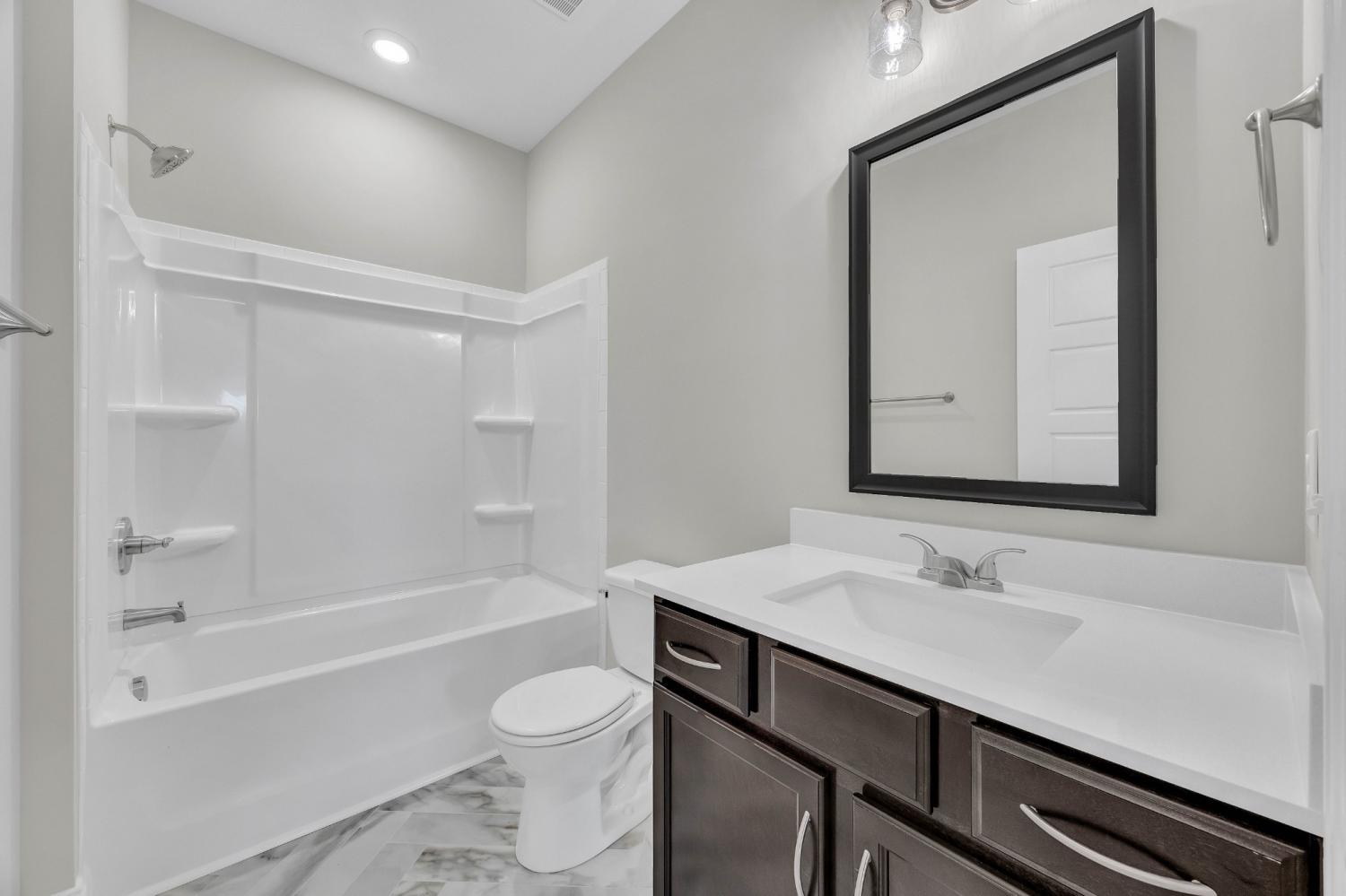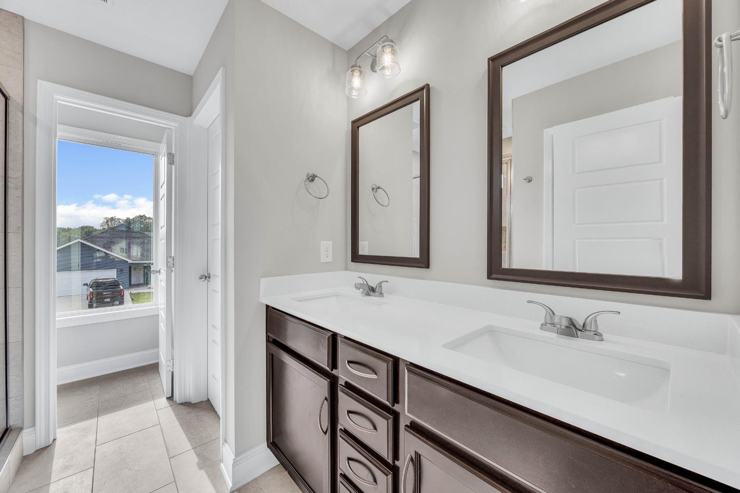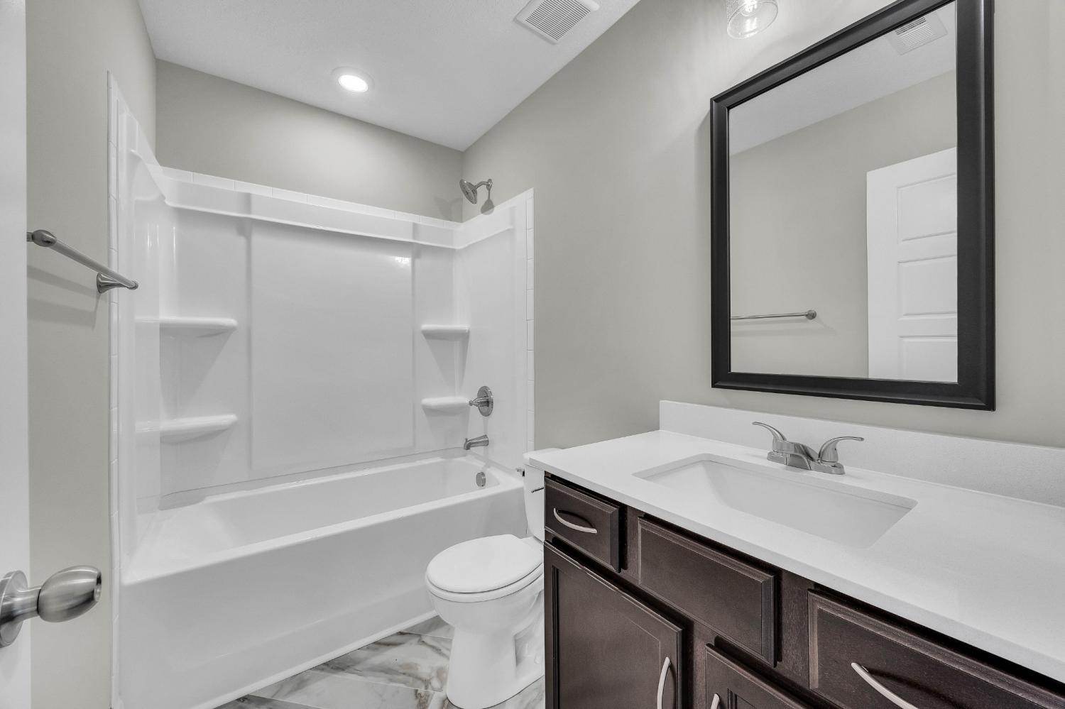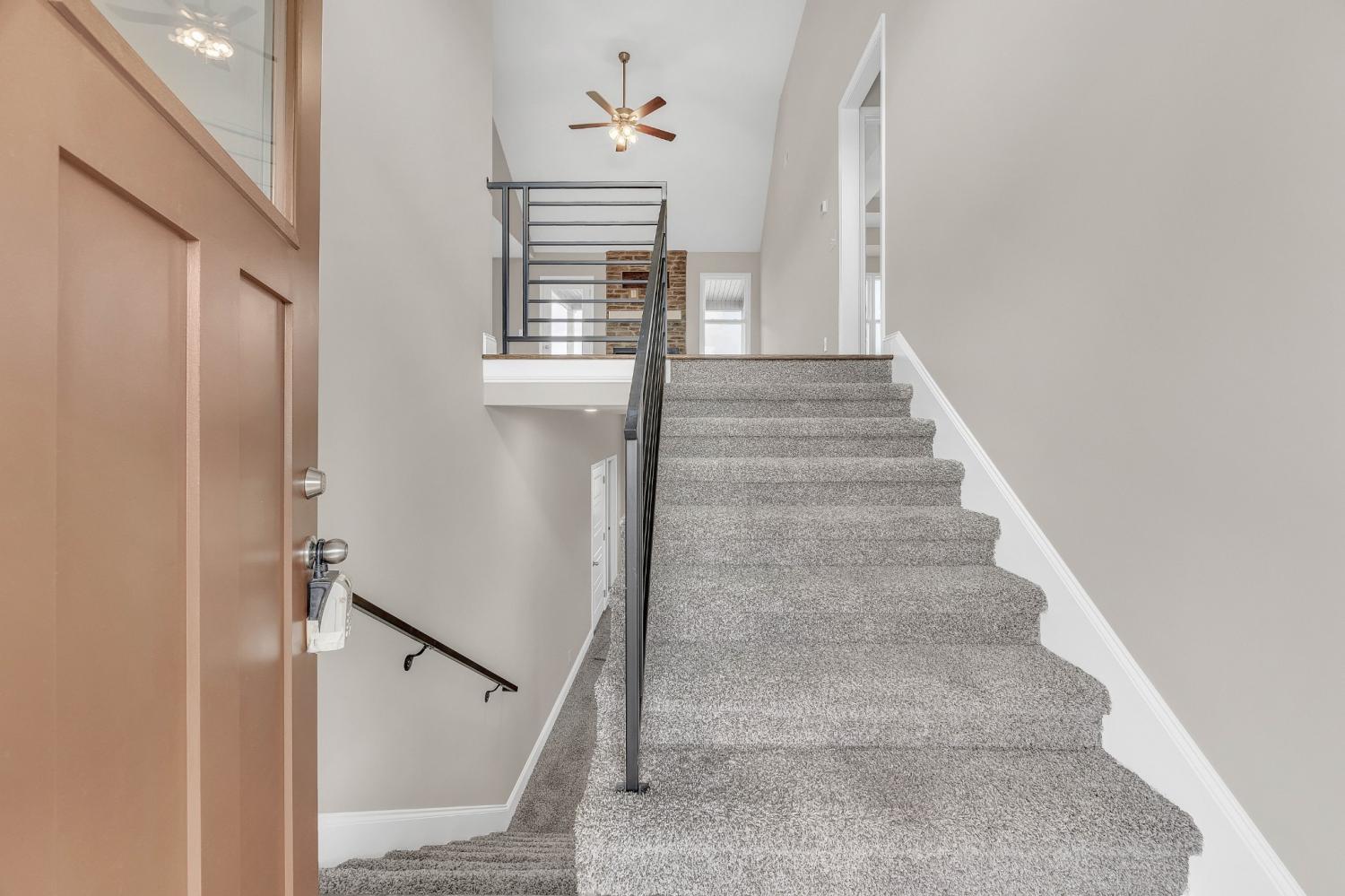 INCLUDES A FRIDGE & BLINDS! The peaceful living experience that you deserve! Beautifully cut quartz counter tops in kitchen with custom cabinetry. Designer showcase double tile shower in master bath. Insulated, smart garage door. Rec room on lower level. Covered outdoor living space with fan & picturesque view that will make your friends envious. Sodded front and back yard. LOVE where you live!