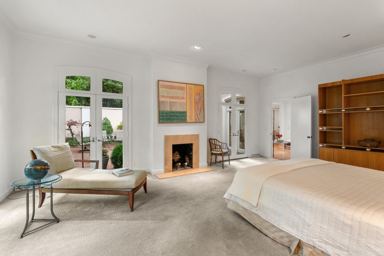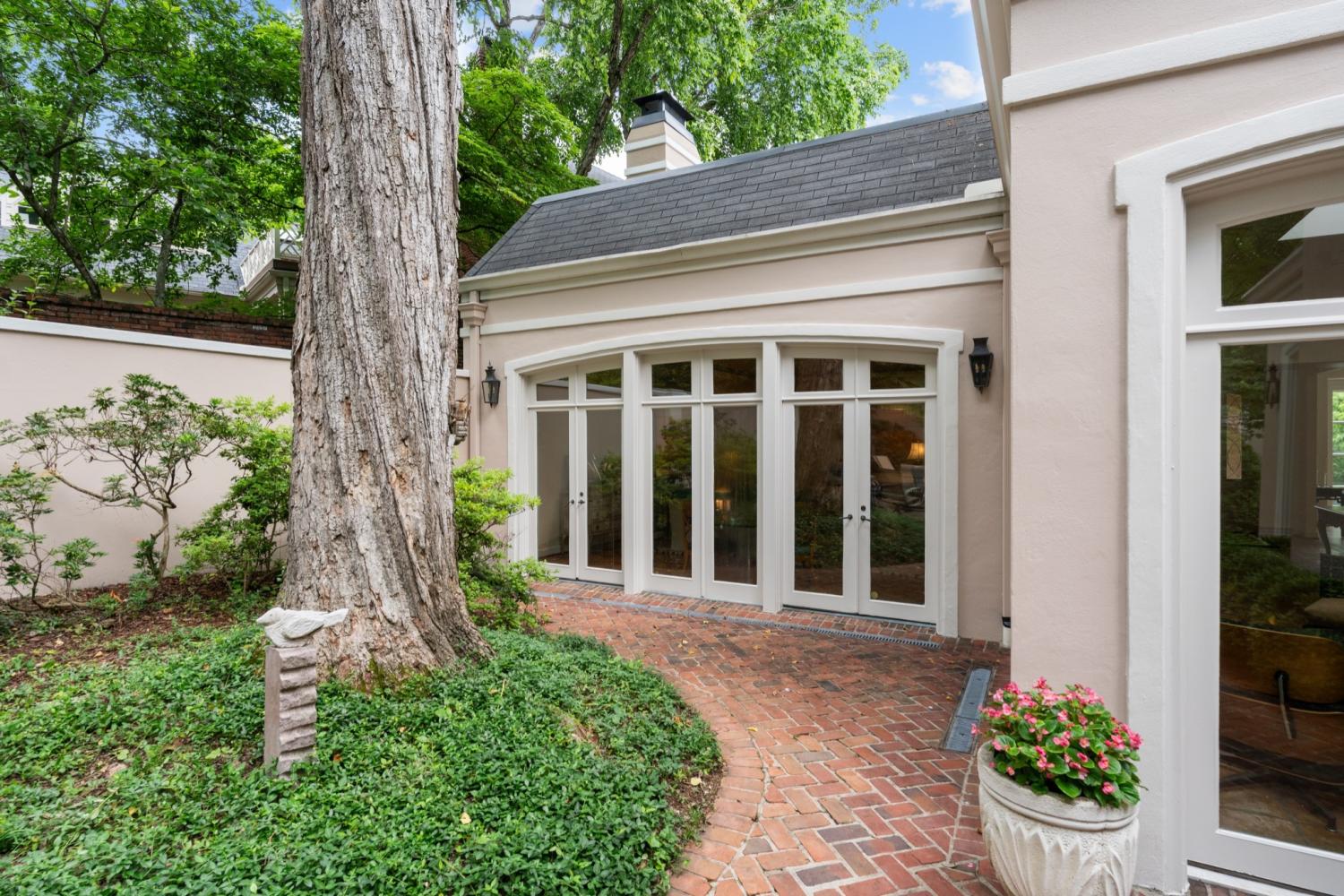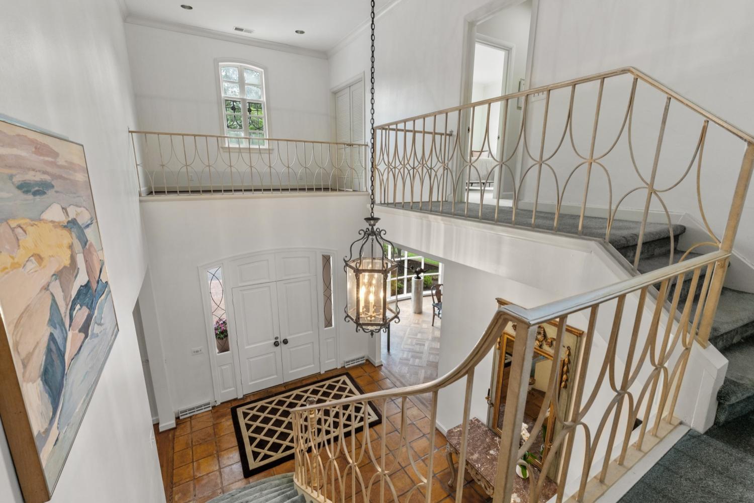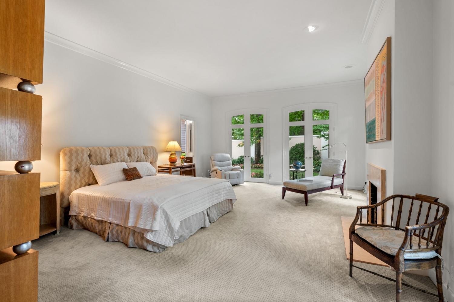 Soaring ceilings and light-filled rooms are the marks of distinction of this beautiful home. Enter the 2-story foyer with a dramatic staircase. To your left is a grand dining room with a magnificent crystal chandelier. To your right is the impressive living room with a mirrored fireplace. The primary suite is enormous! It has a fireplace, large windows looking out into the private garden, and a sumptuous primary bath with a soaking tub, a separate shower, and a huge walk-in closet. Upstairs are 2 large bedrooms with a Jack + Jill bath. The home has been freshly painted. You will enjoy the garden views from the windows, and the patio is walled and very private.