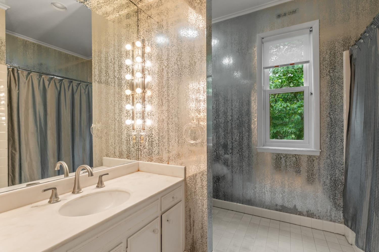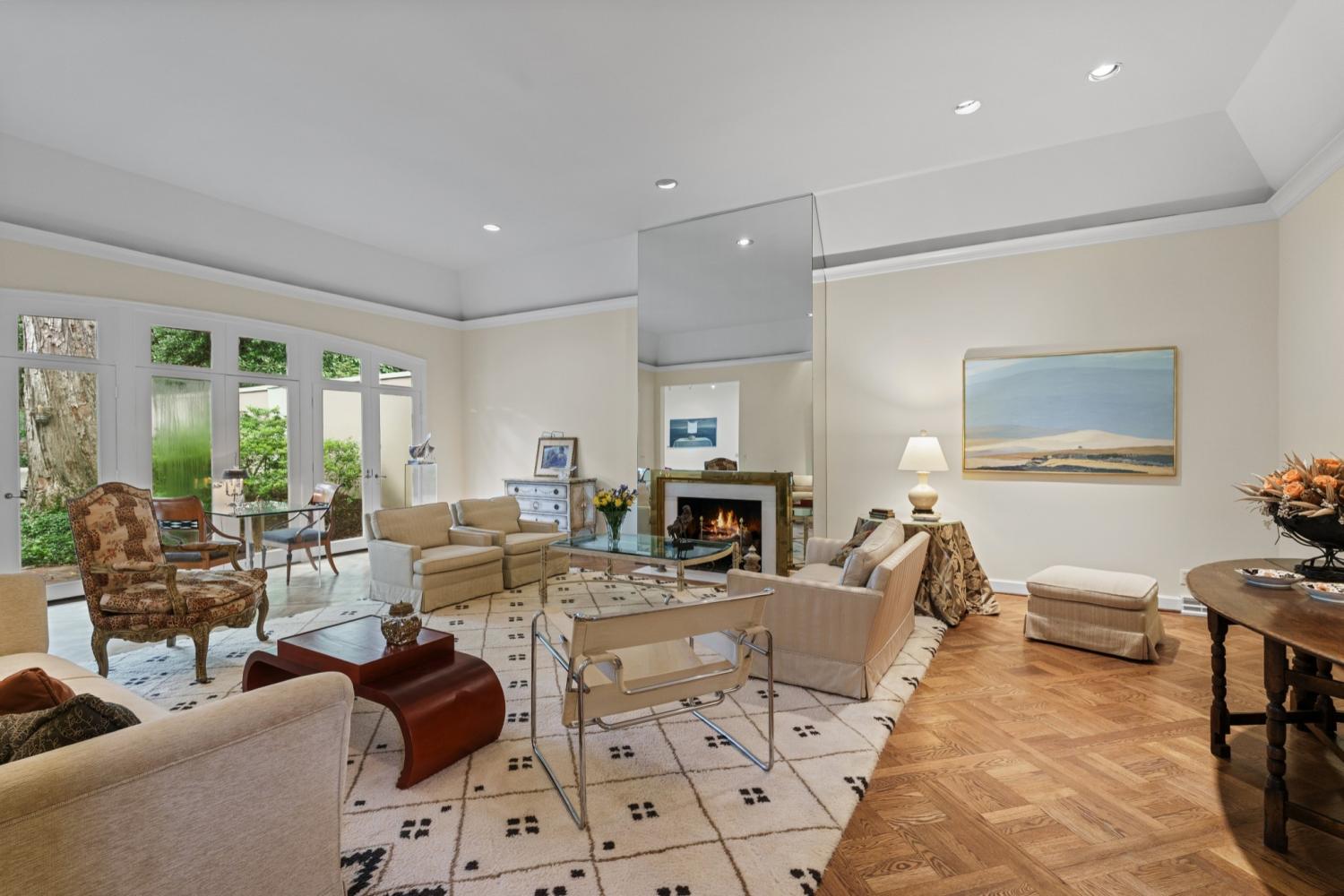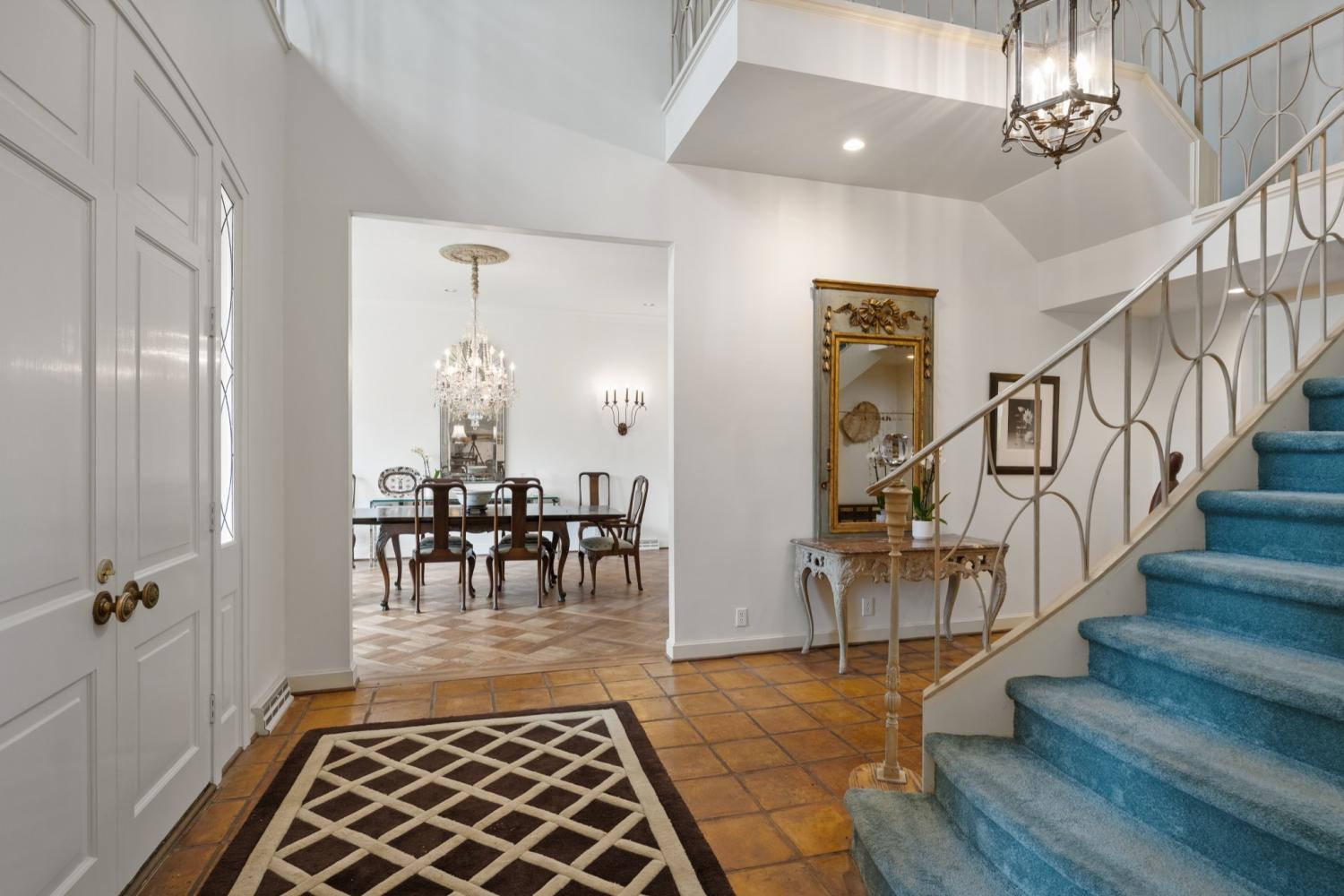 Soaring ceilings and light-filled rooms are the marks of distinction of this beautiful home. Enter the 2-story foyer with a dramatic staircase. To your left is a grand dining room with a magnificent crystal chandelier. To your right is the impressive living room with a mirrored fireplace. The primary suite is enormous! It has a fireplace, large windows looking out into the private garden, and a sumptuous primary bath with a soaking tub, a separate shower, and a huge walk-in closet. Upstairs are 2 large bedrooms with a Jack + Jill bath. The home has been freshly painted. You will enjoy the garden views from the windows, and the patio is walled and very private.
