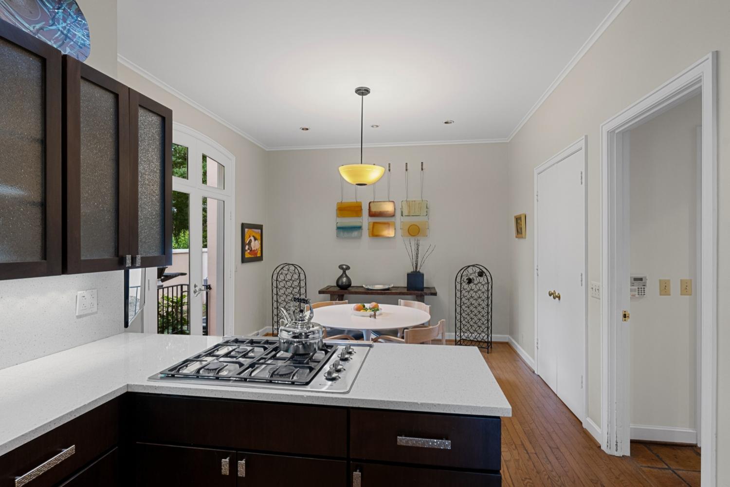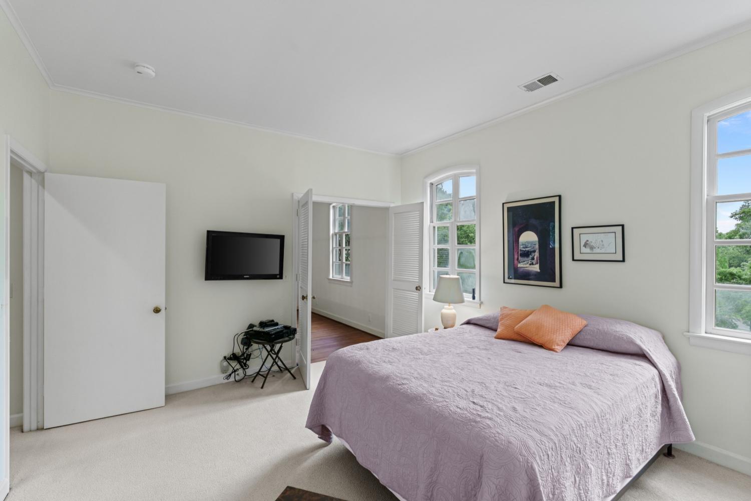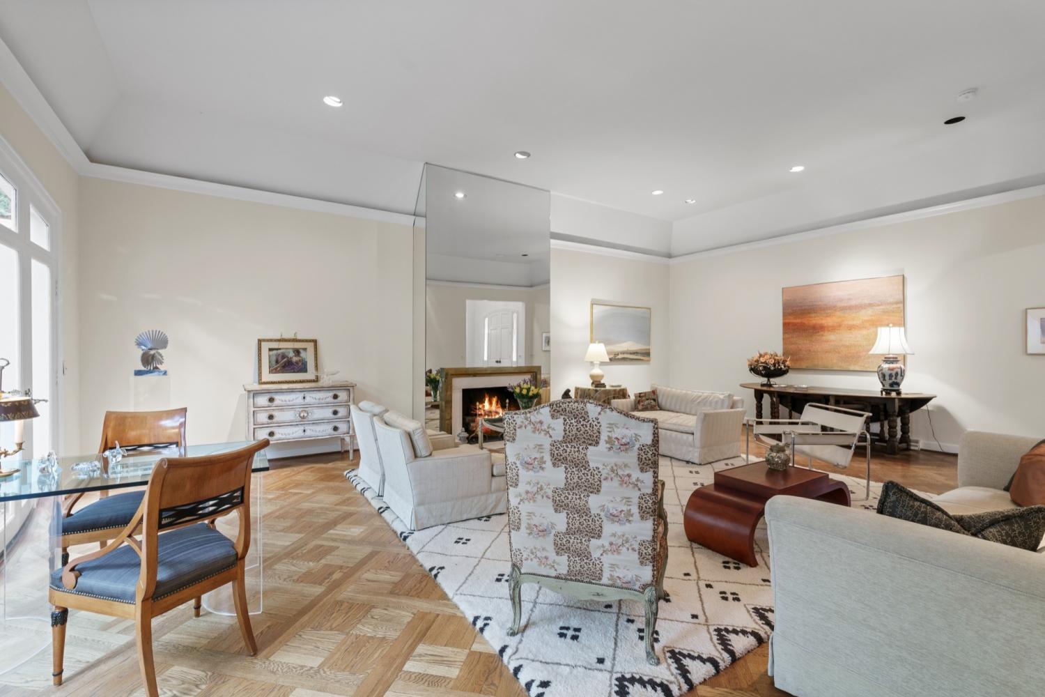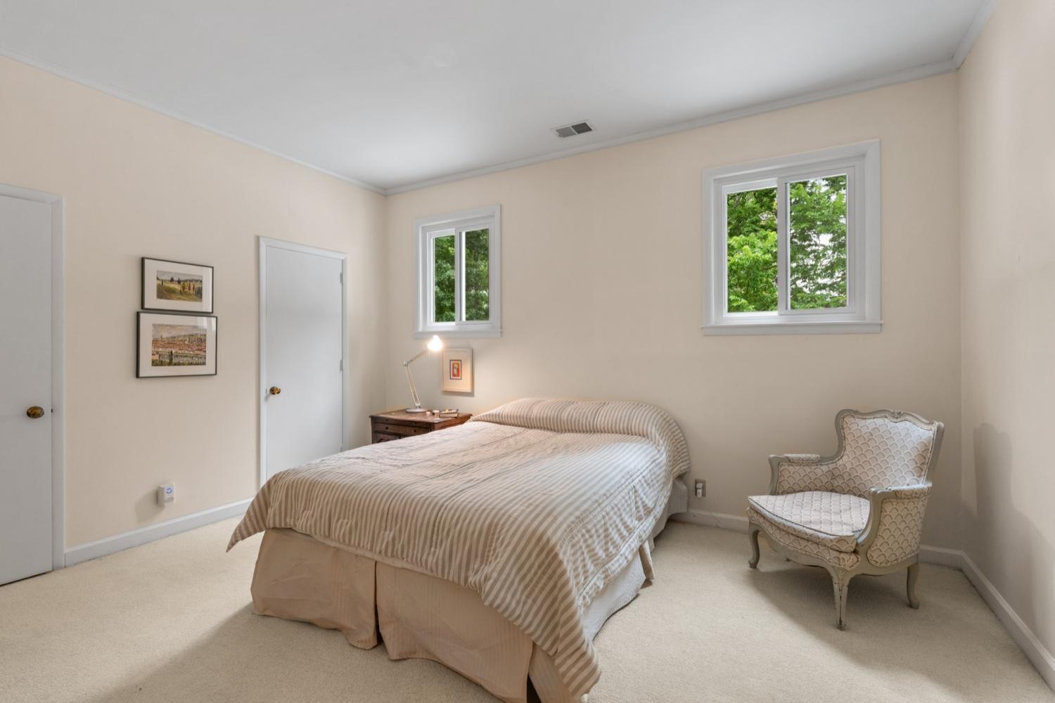 Soaring ceilings and light-filled rooms are the marks of distinction of this beautiful home. Enter the 2-story foyer with a dramatic staircase. To your left is a grand dining room with a magnificent crystal chandelier. To your right is the impressive living room with a mirrored fireplace. The primary suite is enormous! It has a fireplace, large windows looking out into the private garden, and a sumptuous primary bath with a soaking tub, a separate shower, and a huge walk-in closet. Upstairs are 2 large bedrooms with a Jack + Jill bath. The home has been freshly painted. You will enjoy the garden views from the windows, and the patio is walled and very private.