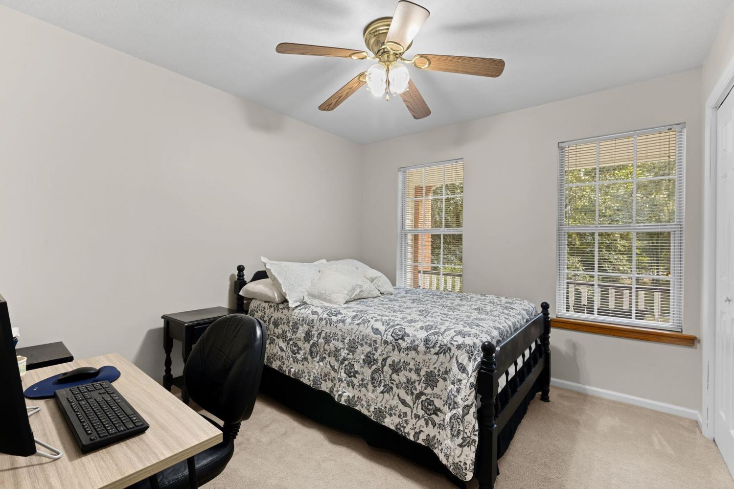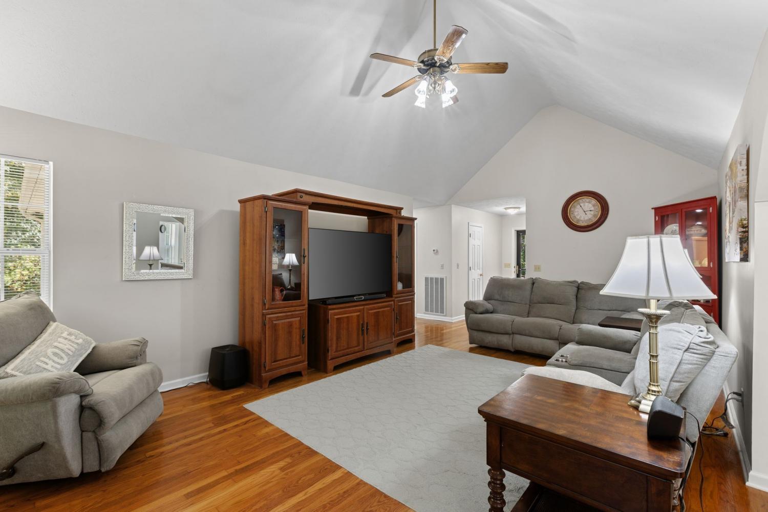 This home is hidden among the shade trees. Private setting, yet minutes from town and the interstate. 3 bedrooms on main level, upstairs a bonus room and home office. Updated baths , great room with gas fireplace. Spacious kitchen with pantry. Oversized deck perfect for those Fall bbq's