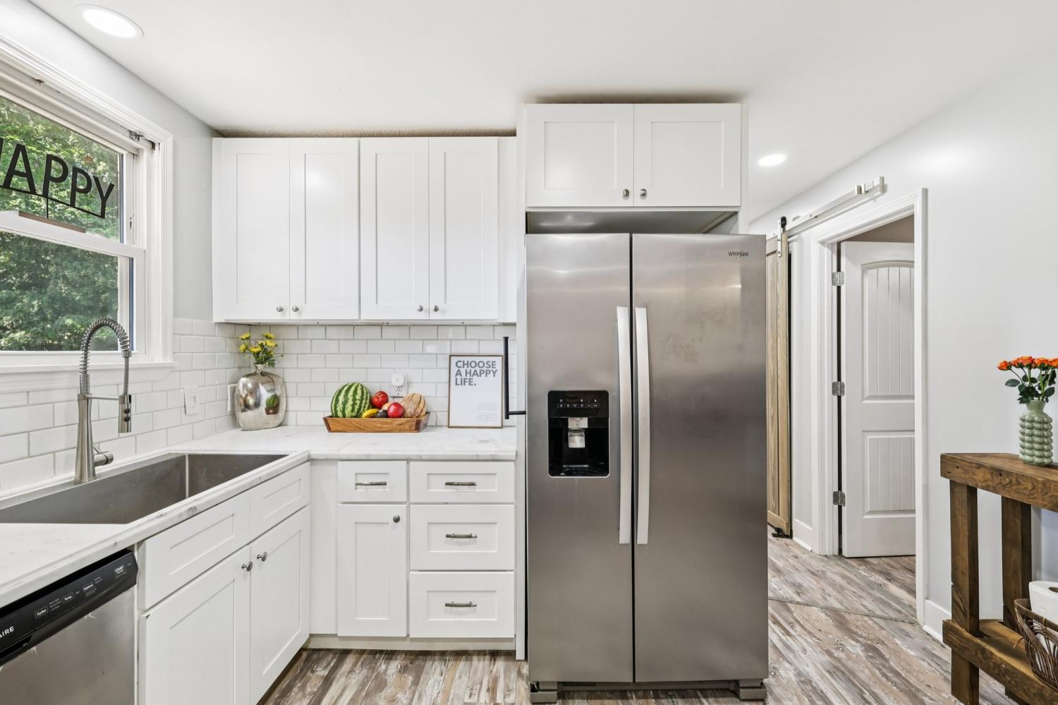 Welcome to this charming brick ranch, nestled on a private lot set back from the street with an oversized attached carport. Step inside to a modern, open floor plan where updated luxury vinyl plank creates a seamless flow throughout. The inviting eat-in kitchen features stainless steel appliances and plenty of space for casual dining. All bedrooms are equipped with ceiling fans for added comfort. The home also boasts a full walkout basement with a BRAND NEW mini split, which is partially finished and includes a full bathroom, offering flexible space for a recreation room, home gym, or future living space. Outdoors, you’ll find a huge back deck perfect for entertaining or relaxing while overlooking the large, private partially fenced yard. A storage large building provides ample space for all your tools and outdoor gear. There is also a chicken coop with a timed automatic door. New Water Heater 2023. This home combines classic charm with modern updates, all on a beautiful, private lot. Tour today!