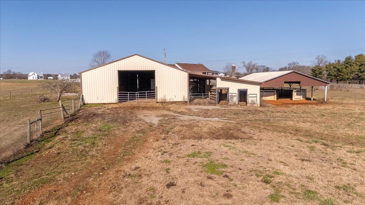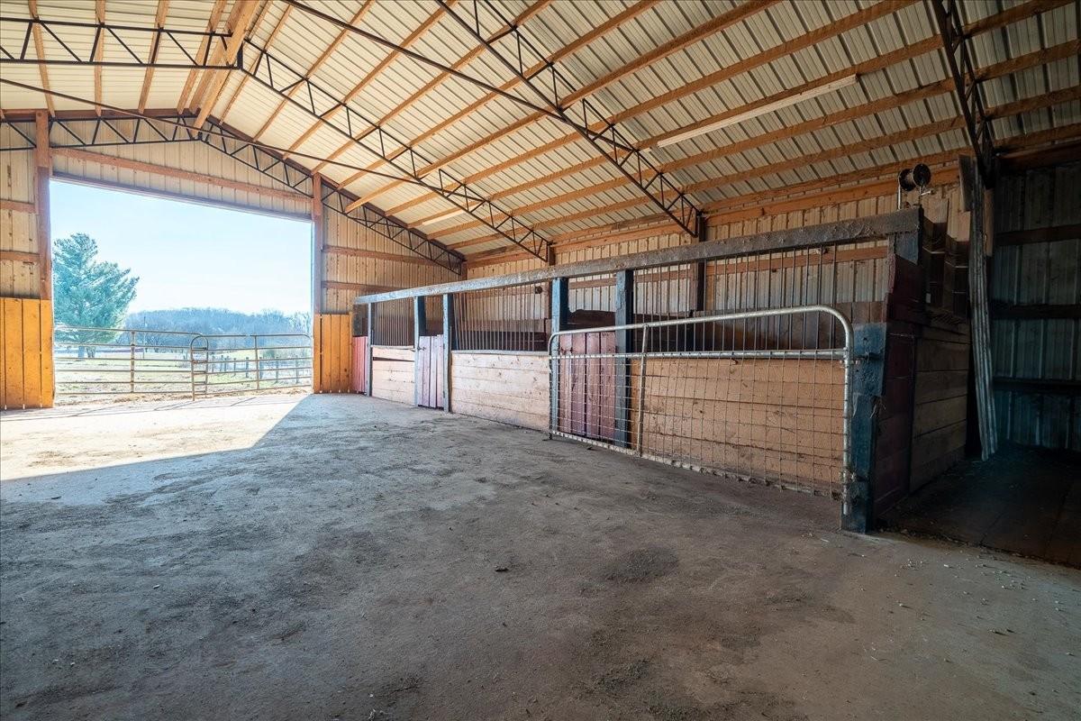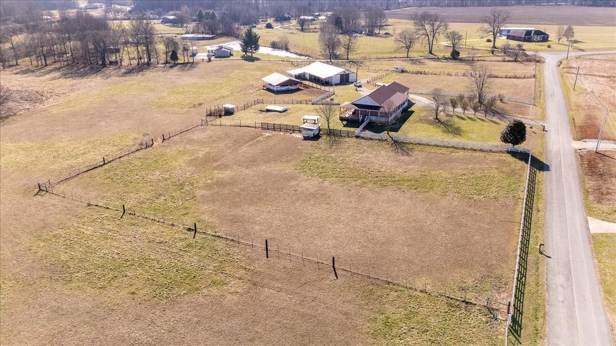Stunning Brick Home on 24+ Acres – Equestrian Farm with Custom Barn. This remarkable brick home with a wraparound porch and beautiful acreage is the ideal property for anyone seeking a well-maintained farm. Inside, you’ll find custom touches throughout, including a spacious kitchen with abundant cabinetry and countertop space, perfect for the home cook. The large living room with a cozy gas fireplace is perfect for entertaining or simply relaxing at the end of the day. Step outside and enjoy your morning coffee or evening sunsets on the covered wraparound porch, overlooking the gorgeous property. The land is fully fenced and cross-fenced, featuring a pond, a creek, and even a backup generator for peace of mind. Currently set up as an equestrian farm, the property is well-suited for horses or other livestock. The large custom barn includes 6 stalls, a tack room, water, and electric, while the covered round pen provides a safe and convenient space for training or working with animals. Take cover from the storms with a storm shelter (12x16 with electricity) installed on the property. Also staying with property is a 6 person hot tub (Hot Tub install Fall 2024), and relaxing gazebo. HVAC 17 years old, new roof install September 2025, propane tankless gas water heater approx 6 yrs old, house has termite bond with Cook's. Don’t miss the chance to own this phenomenal property offering both a stunning custom home and 24+ acres of versatile farmland.
