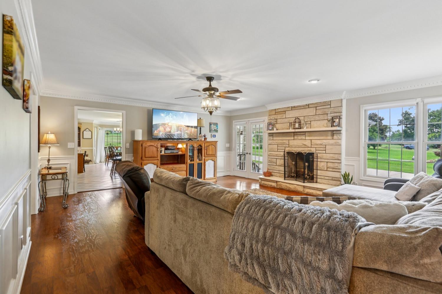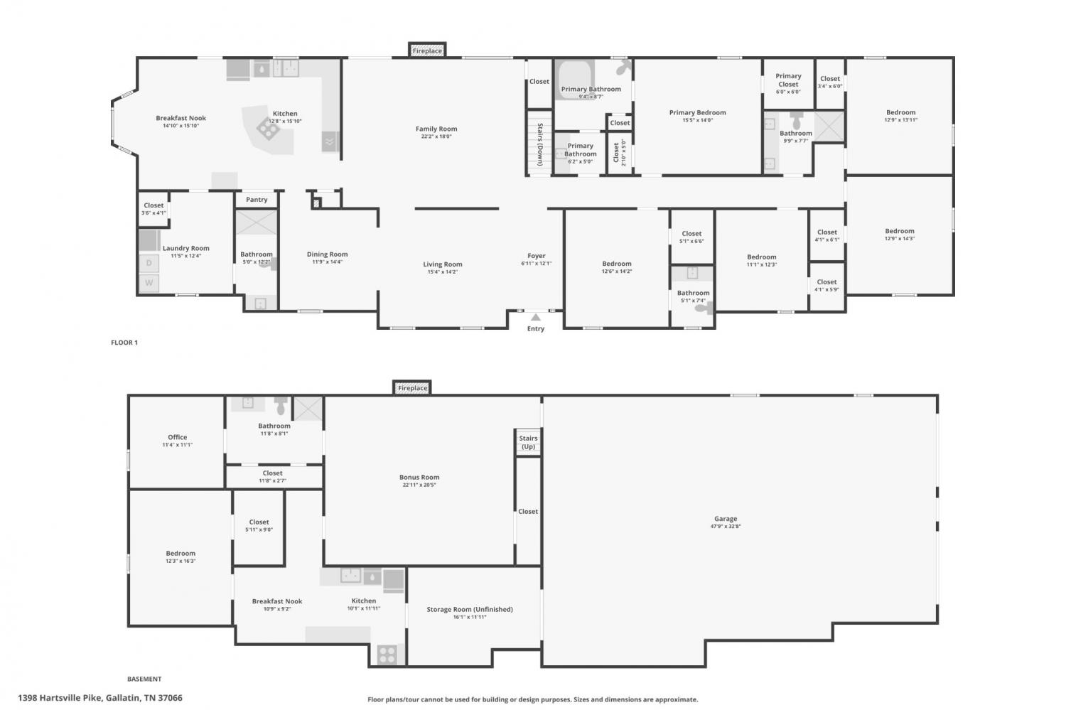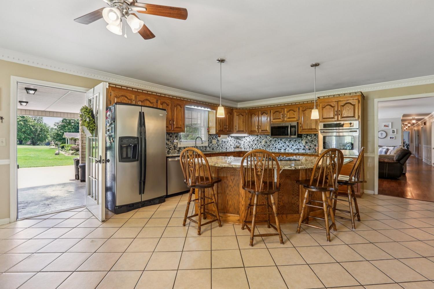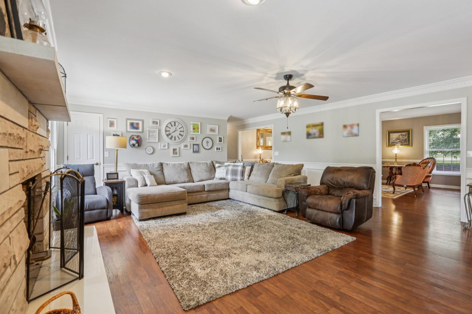 Open House - Sunday 10/26 from 2:00-4:00pm. $51k price reduction! Welcome to this charming Alabama stone ranch, set on 1.5 acres in Gallatin! Two homes in one - multigenerational living opportunity! The main level offers over 3,300 sq. ft. with 4 bedrooms and 3.5 baths. A spacious kitchen, brand-new flooring, updated fixtures, freshly painted walls, doors, and trim + added wainscoting. Multiple flex spaces gives plenty of room to spread out, and every bedroom comes with its own walk-in closet! Downstairs, the 1,500 sq. ft. finished basement apartment includes 2 bedrooms, 1 bath; a full kitchen with pantry, large living room, laundry hookups, and a private entrance, perfect for in-laws, guests, or rental income. Step outside to enjoy the covered patio/carport, sprawling flat yard space, and a newer above-ground pool w/ trex deck. Thoughtful landscaping with 15 evergreens and a weeping willow creates both beauty and privacy. Plus, the massive 1,700 sq. ft. 4-car garage offers endless storage or workshop possibilities. No HOA! With a new 30-year roof (installed April 2022) and all the space you need, this well-loved home is ready for its next chapter! Property is eligible for USDA 100% financing!