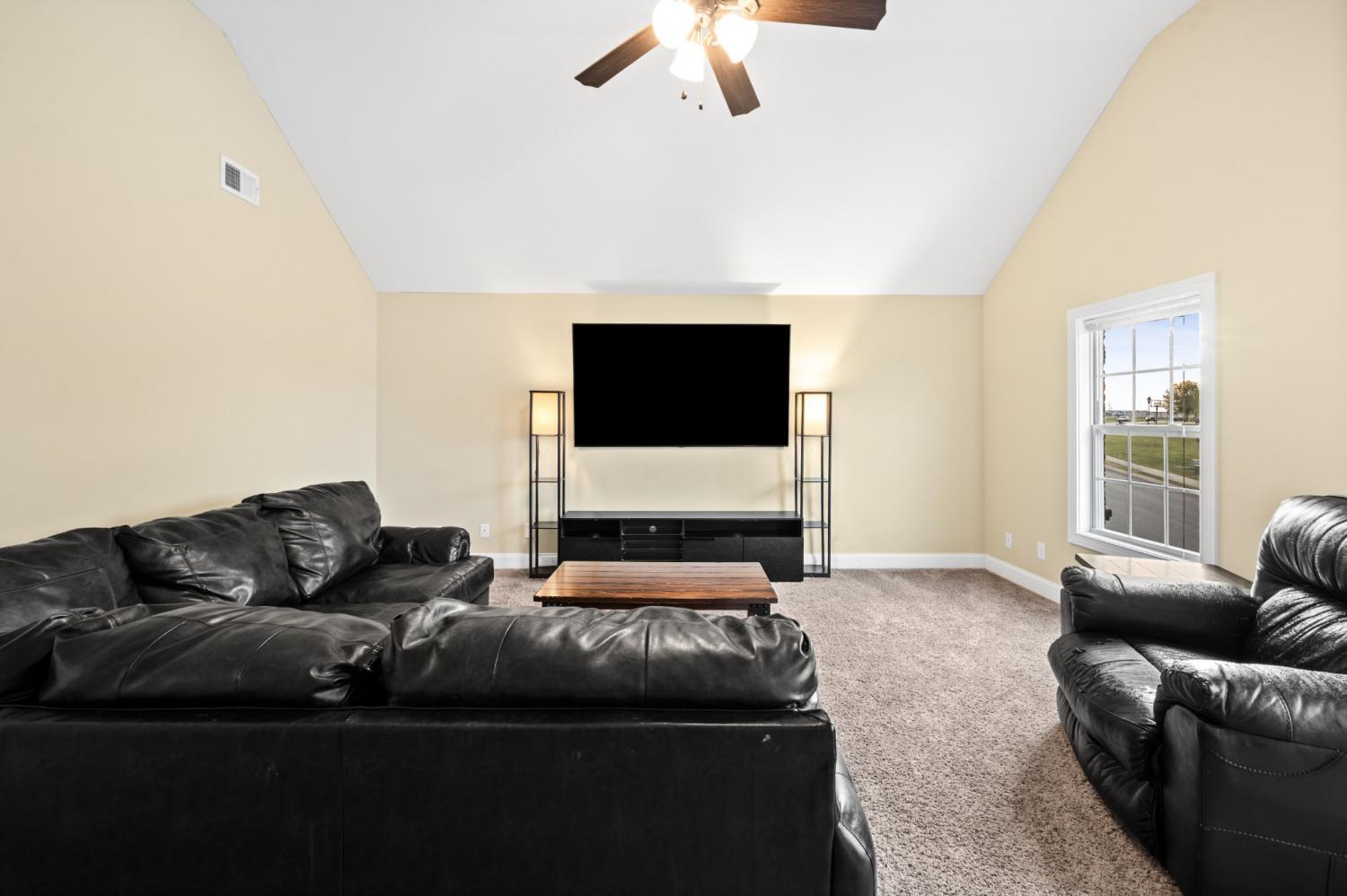 Welcome home! This 5 bedroom, 3.5 bath home offers space, style, and convenience. Step inside to hardwood floors on the main level, a formal dining room, and a spacious living room with soaring ceilings and a cozy fireplace. The kitchen is designed for entertaining with granite countertops, tile backsplash, stainless steel appliances, double ovens, and an island for extra prep space. The primary suite is located on the main level and features a jetted tub, walk-in tile shower, dual vanities, and a generous walk-in closet. Upstairs you’ll find four additional bedrooms, two full baths, and a huge bonus room—perfect for a playroom, office, or media space. Enjoy outdoor living with a large deck and concrete pad. Buyers also have the opportunity to assume the VA loan at 2.625%. Conveniently located near Kirkwood schools, Clarksville shopping and dining, and just minutes from I-24.