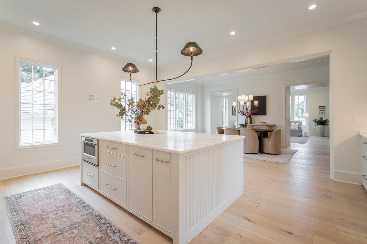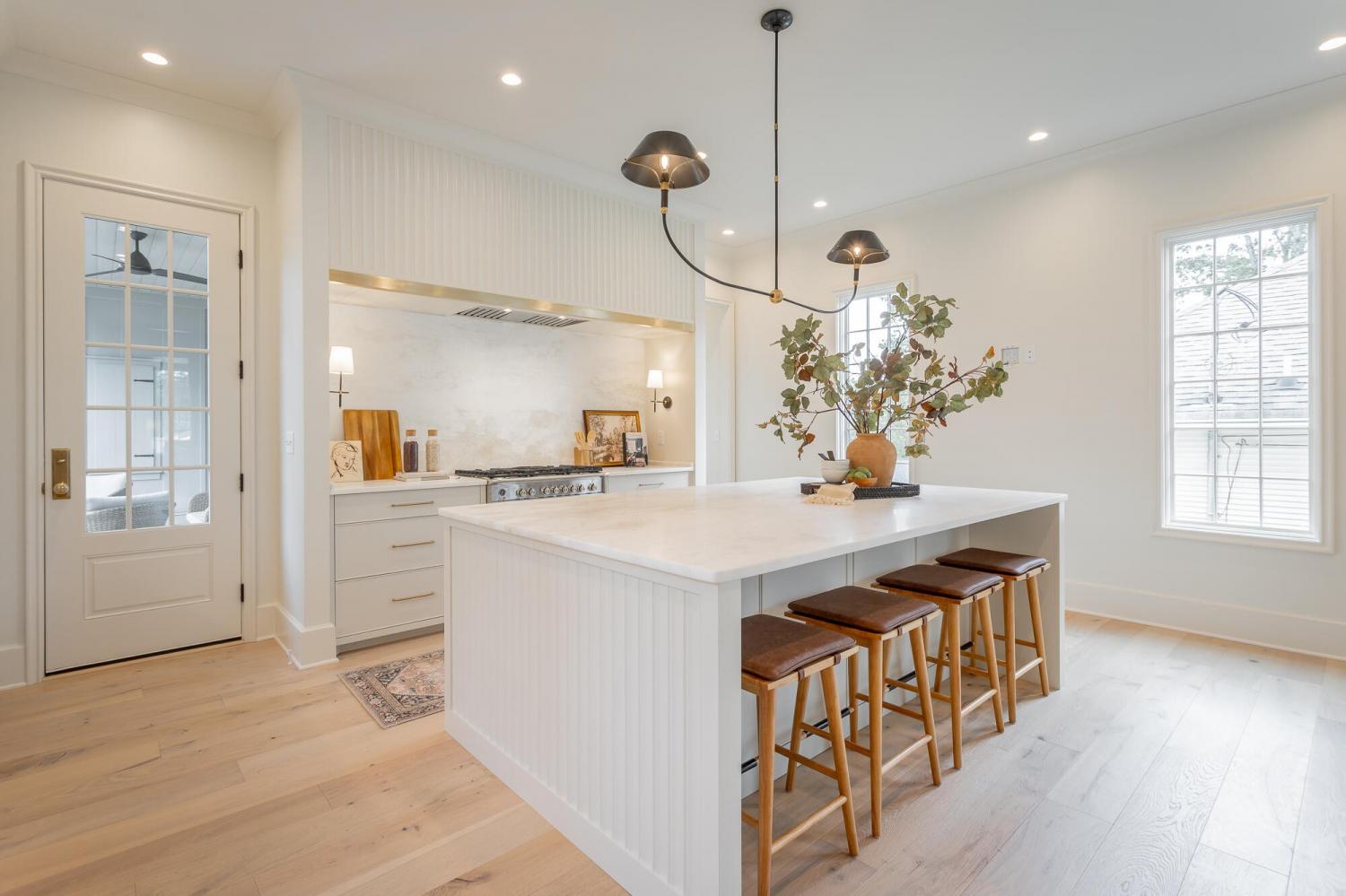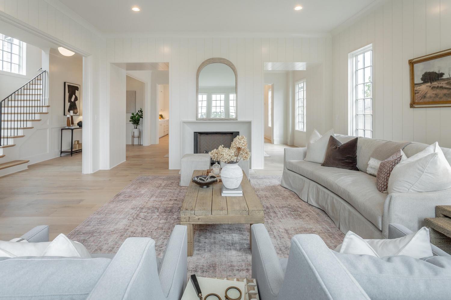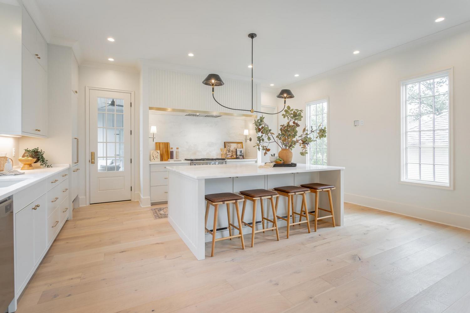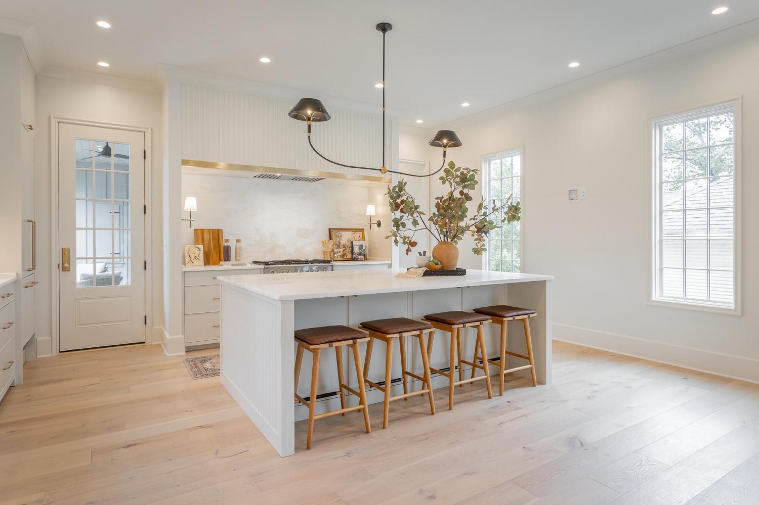 Welcome to 607 Colville Street, a brand-new North Chattanooga cottage-inspired home by Waters-Holland, where timeless design meets thoughtful functionality. Nestled on a deep lot providing a rare, alley-accessible three car garage, this charming home blends seamlessly into its neighborhood with a modern French Farmhouse true round front door, metal accent roof, natural stone details, and gas lantern. Step inside to a light-filled entry foyer with wide plank oak hardwood floors and soothing neutral color palette. The Waters-Holland signature shines through in the use of wood trim, tall baseboards and crown moldings, with distinctive touches like chamfered edge cased openings and vertical wood paneling in the living room. A cast concrete fireplace with a herringbone interior anchors the living room while the open dining room flows effortlessly into a kitchen showcasing a fluted range hood with brass trim, Fisher-Paykel appliances, and a spacious work island for casual dining. The main level feels boasts cozy yet open living spaces. A powder room with deep blue walls features a marble topped vanity with wall-mounted brass faucet. A mudroom bench and double-door storage closet greet you at the owner's entry from the garage, while a walk-in pantry is just a few steps away from the range wall. The kitchen has an exterior door leading to a partially covered patio pre-wired for outdoor entertainment. Upstairs, the Primary Suite is a serene retreat with a private hallway, vaulted ceiling, decorative wall trim, and custom closet. The primary bath features an oversized double-sink vanity, polished nickel fixtures, and a fully tiled shower with dual heads. A light-filled hallway connects three additional bedrooms (one ensuite), two full baths, a lavish laundry room, and a versatile family room. With southern coastal and Cape Cod influences, this home radiates warmth, elegance, and meticulous craftsmanshipa perfect blend of style and comfort.