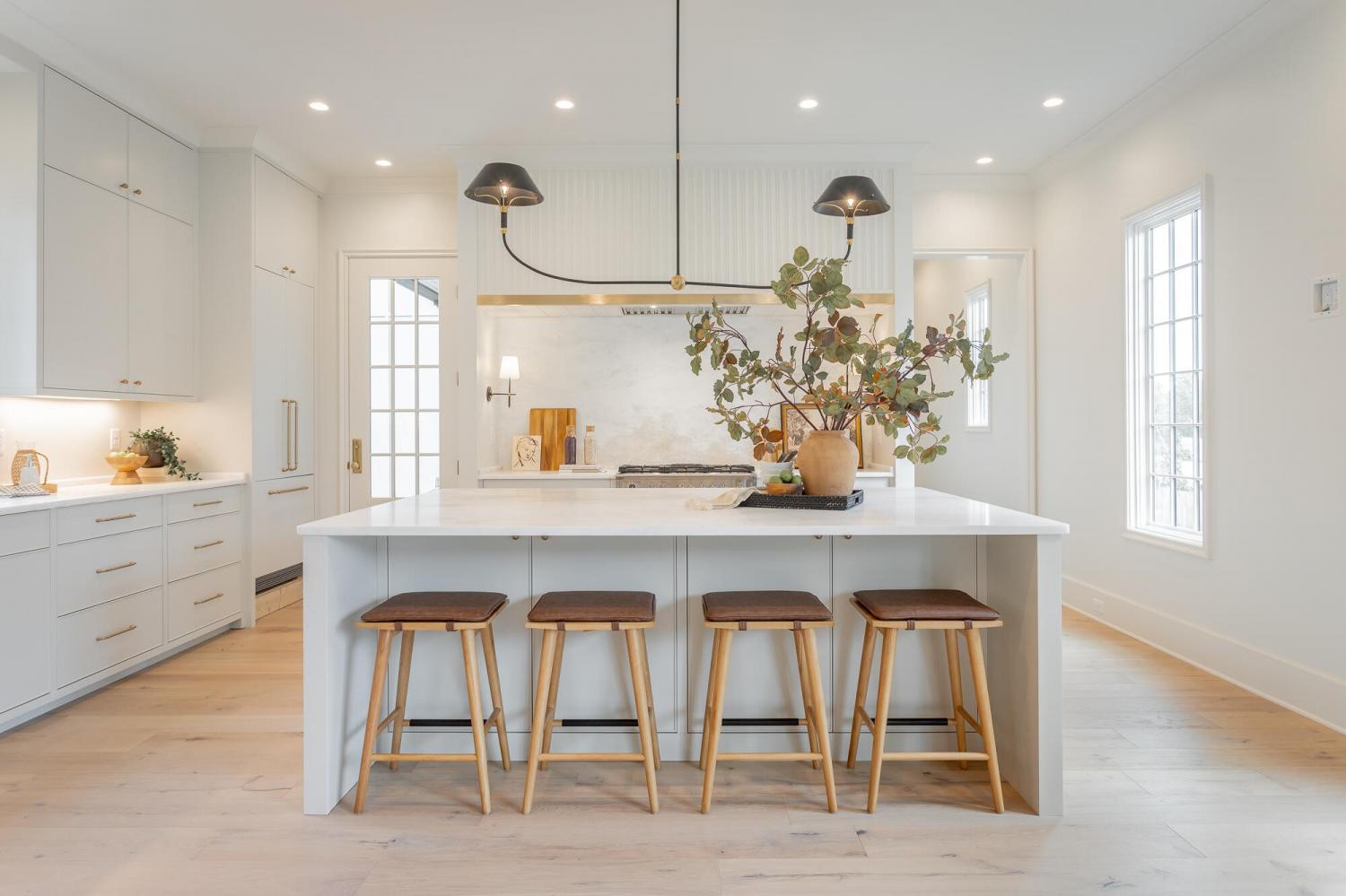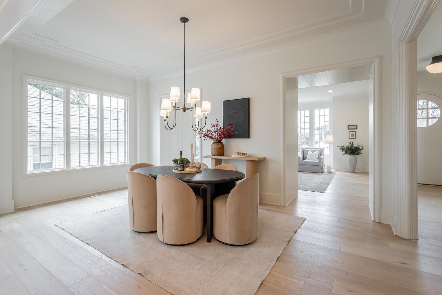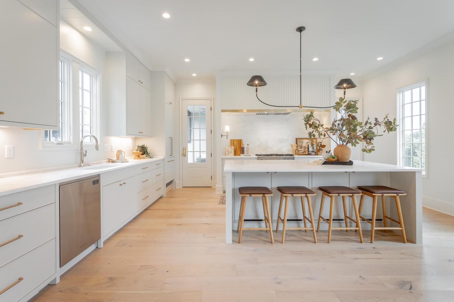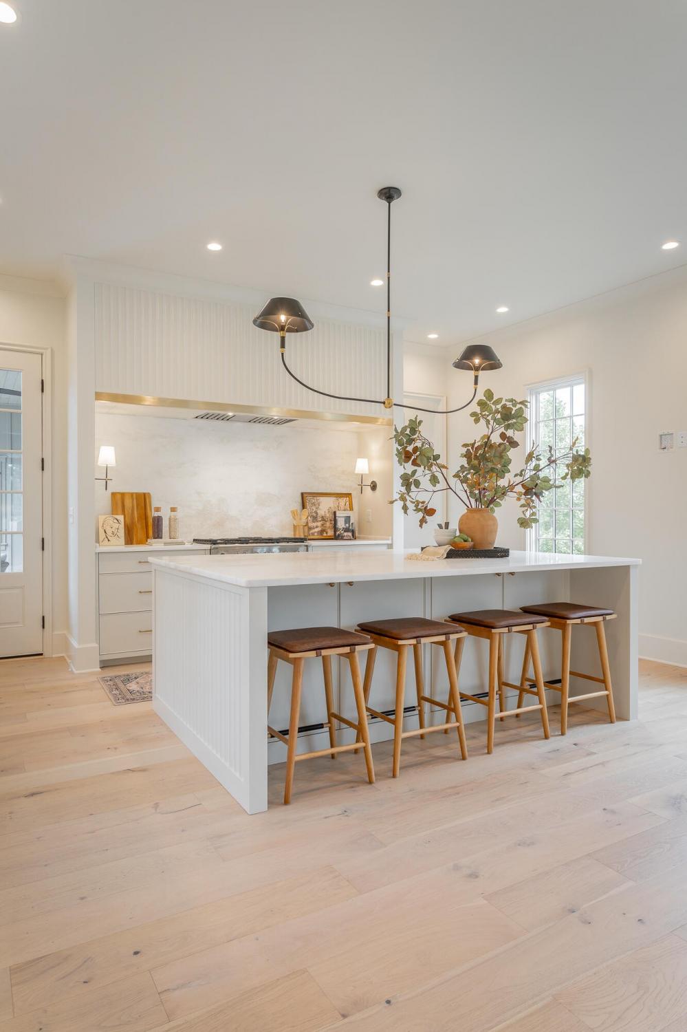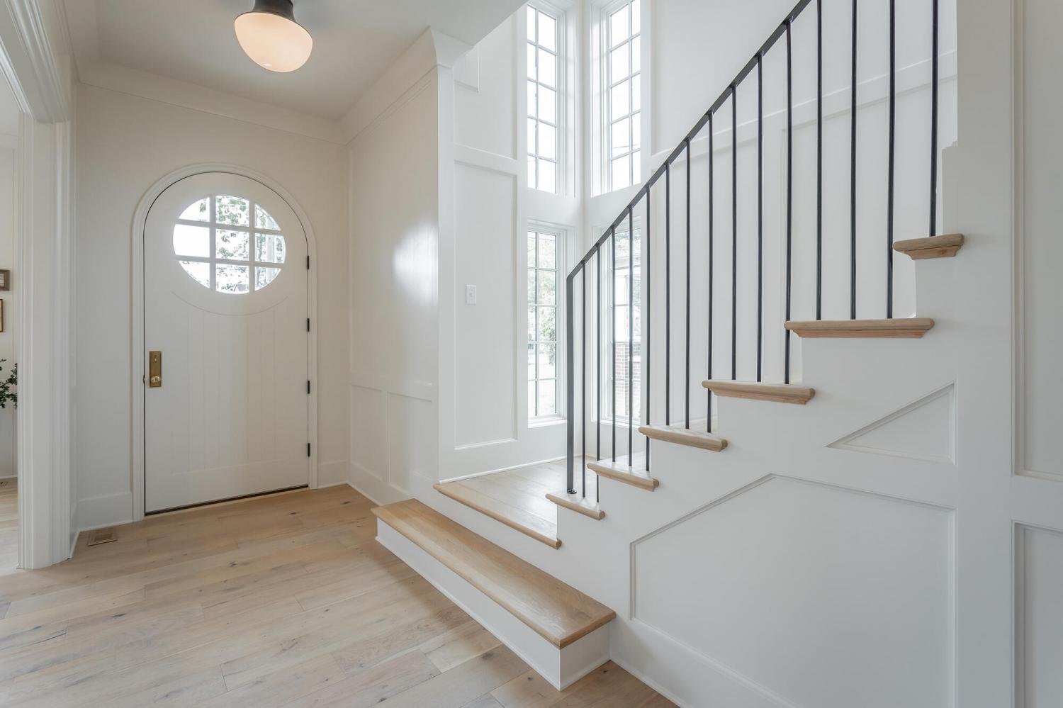 Welcome to 607 Colville Street, a brand-new North Chattanooga cottage-inspired home by Waters-Holland, where timeless design meets thoughtful functionality. Nestled on a deep lot providing a rare, alley-accessible three car garage, this charming home blends seamlessly into its neighborhood with a modern French Farmhouse true round front door, metal accent roof, natural stone details, and gas lantern. Step inside to a light-filled entry foyer with wide plank oak hardwood floors and soothing neutral color palette. The Waters-Holland signature shines through in the use of wood trim, tall baseboards and crown moldings, with distinctive touches like chamfered edge cased openings and vertical wood paneling in the living room. A cast concrete fireplace with a herringbone interior anchors the living room while the open dining room flows effortlessly into a kitchen showcasing a fluted range hood with brass trim, Fisher-Paykel appliances, and a spacious work island for casual dining. The main level feels boasts cozy yet open living spaces. A powder room with deep blue walls features a marble topped vanity with wall-mounted brass faucet. A mudroom bench and double-door storage closet greet you at the owner's entry from the garage, while a walk-in pantry is just a few steps away from the range wall. The kitchen has an exterior door leading to a partially covered patio pre-wired for outdoor entertainment. Upstairs, the Primary Suite is a serene retreat with a private hallway, vaulted ceiling, decorative wall trim, and custom closet. The primary bath features an oversized double-sink vanity, polished nickel fixtures, and a fully tiled shower with dual heads. A light-filled hallway connects three additional bedrooms (one ensuite), two full baths, a lavish laundry room, and a versatile family room. With southern coastal and Cape Cod influences, this home radiates warmth, elegance, and meticulous craftsmanshipa perfect blend of style and comfort.