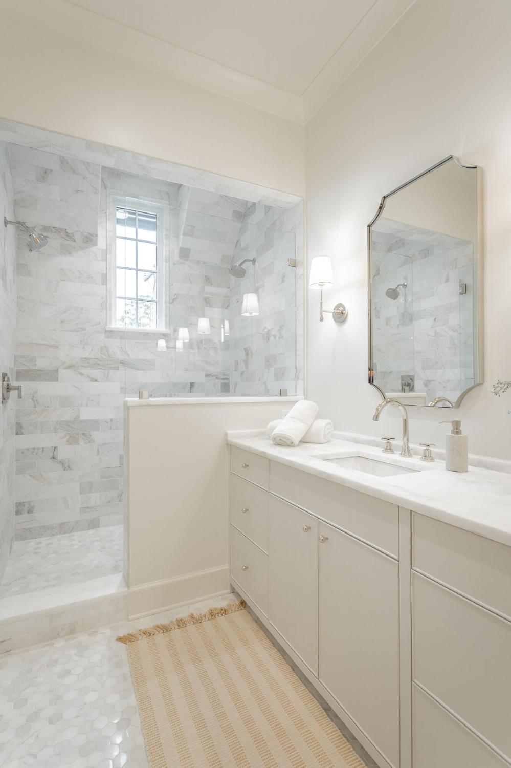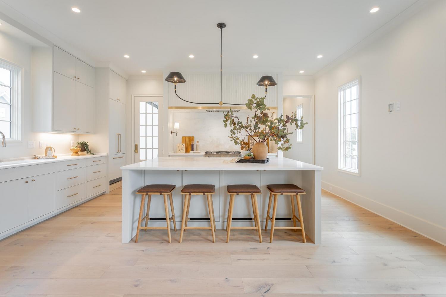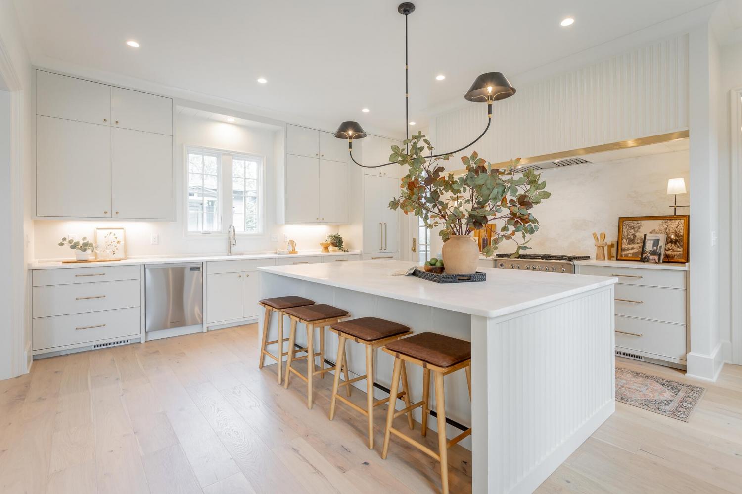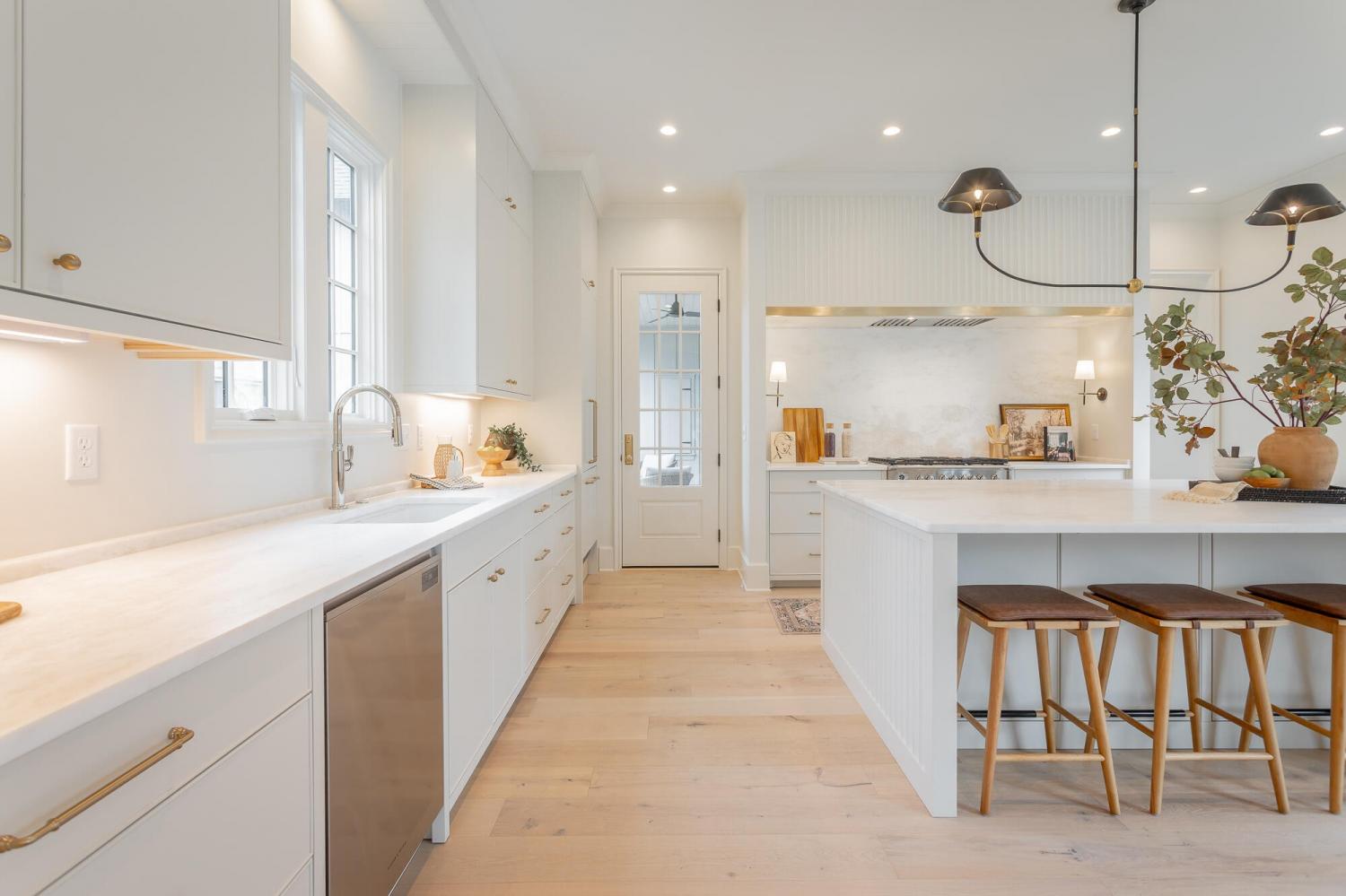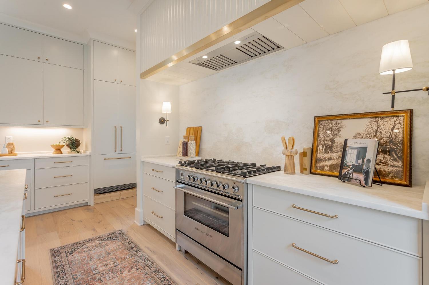 Welcome to 607 Colville Street, a brand-new North Chattanooga cottage-inspired home by Waters-Holland, where timeless design meets thoughtful functionality. Nestled on a deep lot providing a rare, alley-accessible three car garage, this charming home blends seamlessly into its neighborhood with a modern French Farmhouse true round front door, metal accent roof, natural stone details, and gas lantern. Step inside to a light-filled entry foyer with wide plank oak hardwood floors and soothing neutral color palette. The Waters-Holland signature shines through in the use of wood trim, tall baseboards and crown moldings, with distinctive touches like chamfered edge cased openings and vertical wood paneling in the living room. A cast concrete fireplace with a herringbone interior anchors the living room while the open dining room flows effortlessly into a kitchen showcasing a fluted range hood with brass trim, Fisher-Paykel appliances, and a spacious work island for casual dining. The main level feels boasts cozy yet open living spaces. A powder room with deep blue walls features a marble topped vanity with wall-mounted brass faucet. A mudroom bench and double-door storage closet greet you at the owner's entry from the garage, while a walk-in pantry is just a few steps away from the range wall. The kitchen has an exterior door leading to a partially covered patio pre-wired for outdoor entertainment. Upstairs, the Primary Suite is a serene retreat with a private hallway, vaulted ceiling, decorative wall trim, and custom closet. The primary bath features an oversized double-sink vanity, polished nickel fixtures, and a fully tiled shower with dual heads. A light-filled hallway connects three additional bedrooms (one ensuite), two full baths, a lavish laundry room, and a versatile family room. With southern coastal and Cape Cod influences, this home radiates warmth, elegance, and meticulous craftsmanshipa perfect blend of style and comfort.