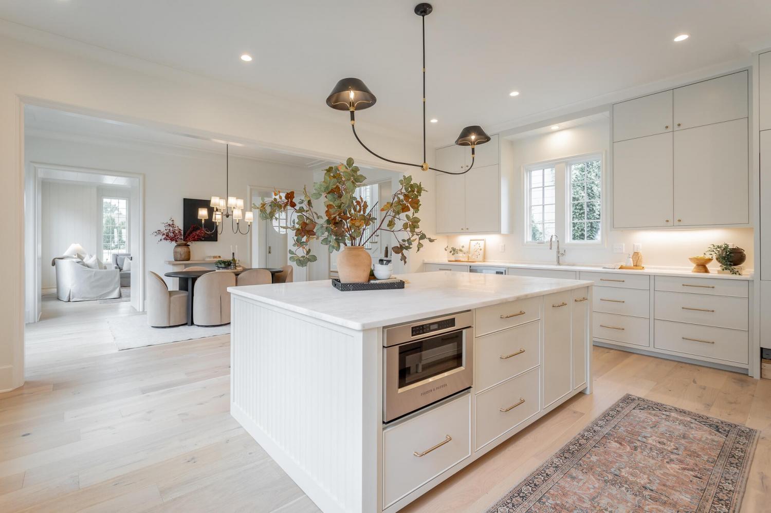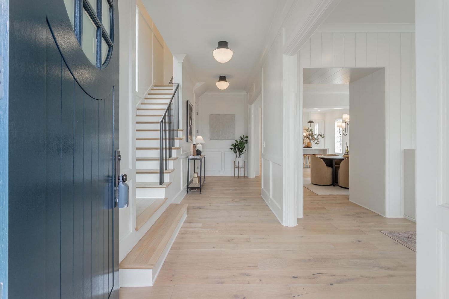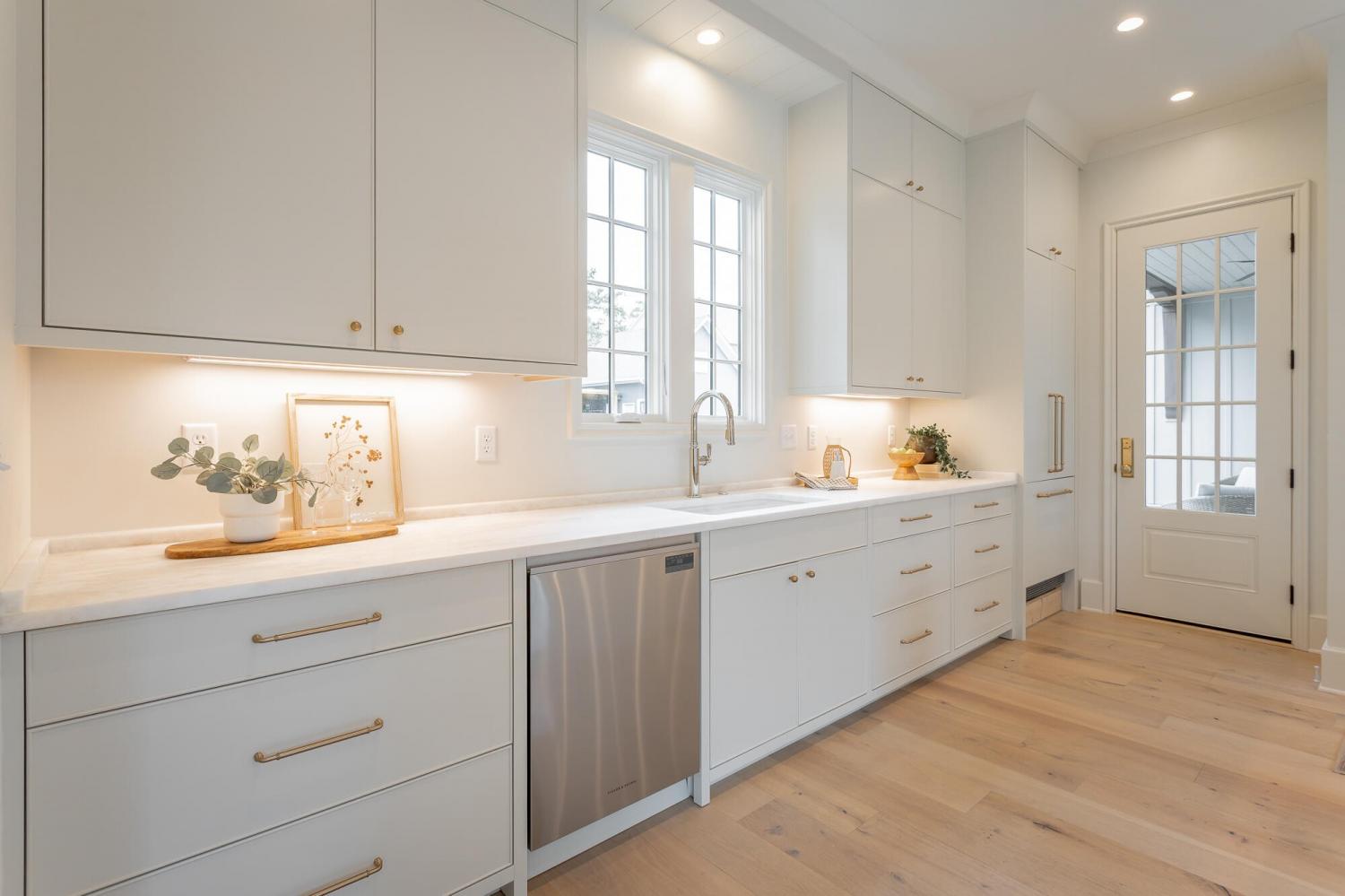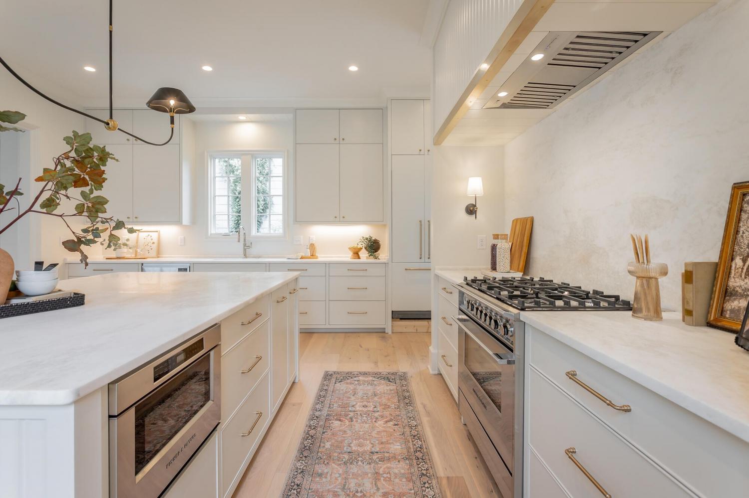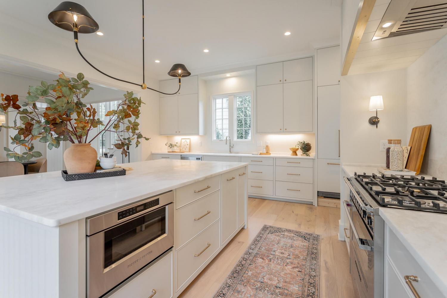Welcome to 607 Colville Street, a brand-new North Chattanooga cottage-inspired home by Waters-Holland, where timeless design meets thoughtful functionality. Nestled on a deep lot providing a rare, alley-accessible three car garage, this charming home blends seamlessly into its neighborhood with a modern French Farmhouse true round front door, metal accent roof, natural stone details, and gas lantern. Step inside to a light-filled entry foyer with wide plank oak hardwood floors and soothing neutral color palette. The Waters-Holland signature shines through in the use of wood trim, tall baseboards and crown moldings, with distinctive touches like chamfered edge cased openings and vertical wood paneling in the living room. A cast concrete fireplace with a herringbone interior anchors the living room while the open dining room flows effortlessly into a kitchen showcasing a fluted range hood with brass trim, Fisher-Paykel appliances, and a spacious work island for casual dining. The main level feels boasts cozy yet open living spaces. A powder room with deep blue walls features a marble topped vanity with wall-mounted brass faucet. A mudroom bench and double-door storage closet greet you at the owner's entry from the garage, while a walk-in pantry is just a few steps away from the range wall. The kitchen has an exterior door leading to a partially covered patio pre-wired for outdoor entertainment. Upstairs, the Primary Suite is a serene retreat with a private hallway, vaulted ceiling, decorative wall trim, and custom closet. The primary bath features an oversized double-sink vanity, polished nickel fixtures, and a fully tiled shower with dual heads. A light-filled hallway connects three additional bedrooms (one ensuite), two full baths, a lavish laundry room, and a versatile family room. With southern coastal and Cape Cod influences, this home radiates warmth, elegance, and meticulous craftsmanshipa perfect blend of style and comfort.
