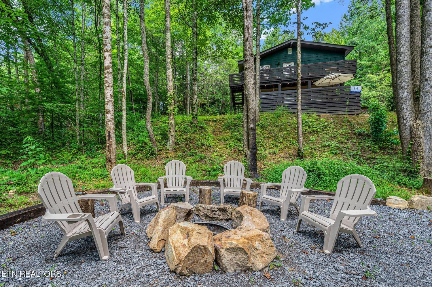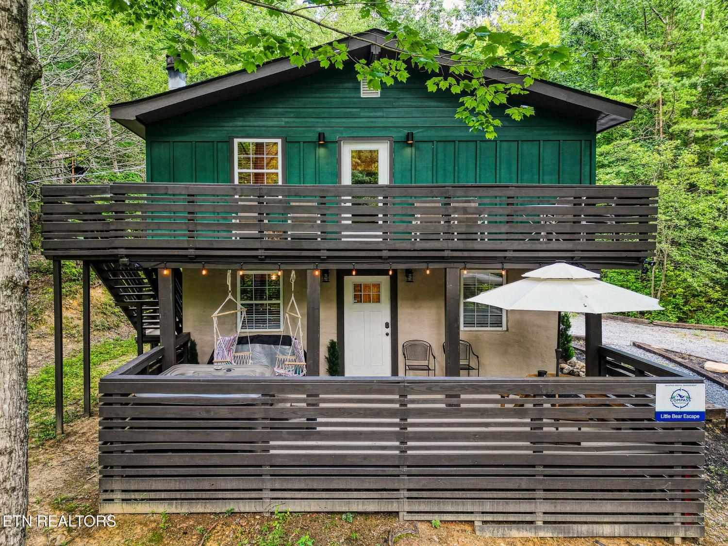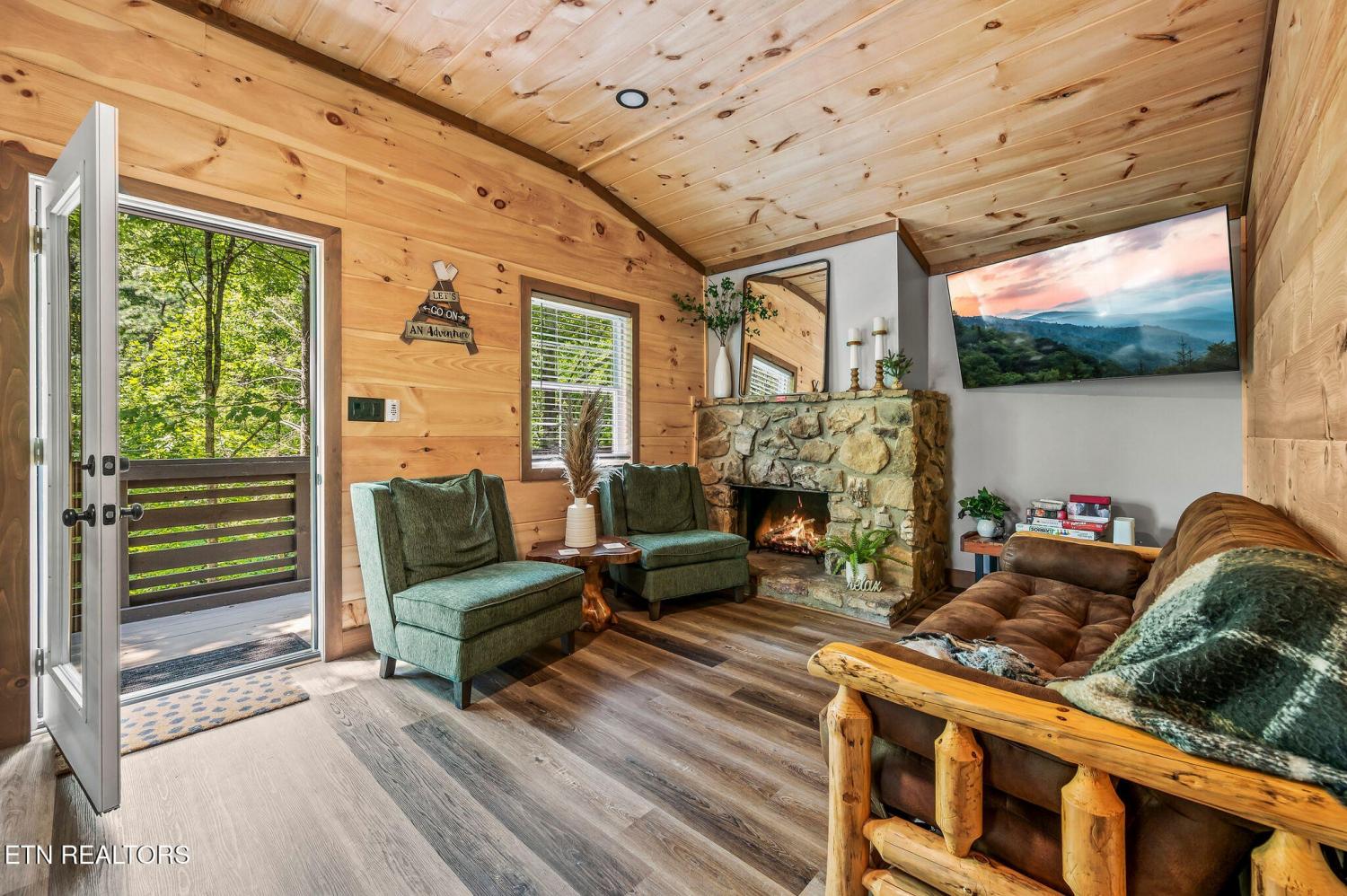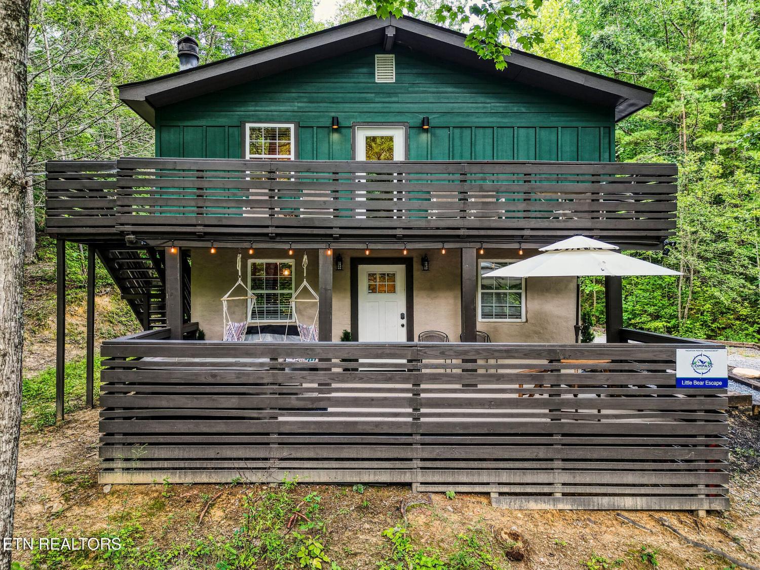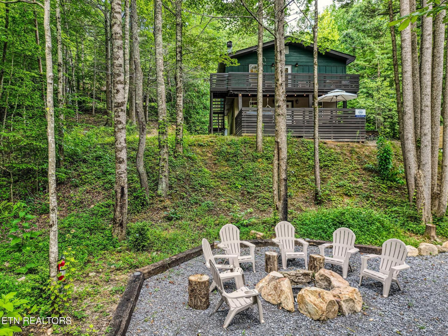 Motivated Sellers! Bring An Offer! The seller is in the process of purchasing via a 1031 exchange and will consider all offers! Recently renovated and fully furnished, this turnkey 3-bedroom, 2-bathroom mountain retreat sleeps up to 8 guests and offers the ultimate Smoky Mountain getaway. Nestled on a private wooded lot, the cabin combines rustic charm with modern comforts and is located just a short drive from Pigeon Forge, Gatlinburg, and the Great Smoky Mountains National Park. Inside, you'll find a warm and inviting living space with a striking wood-burning stone fireplace, vaulted ceilings, and a balcony off the upper-level living room that overlooks the serene setting. The full kitchen, dining area, and dedicated remote workspace make it practical for both vacation and extended stays. Outdoors features multiple decks, a brand-new paved driveway, and a beautifully designed entertaining area. Enjoy a large firepit space perfect for gathering under the stars, a relaxing hot tub, picnic table, and cozy chair swings. An outdoor storage shed adds functionality, while the wooded backdrop ensures privacy and a true mountain feel. With a strong rental history and all furnishings included, this property is move-in ready and income-producing from day one. Whether you're searching for a personal retreat or an investment property, this Smoky Mountain cabin checks every box.