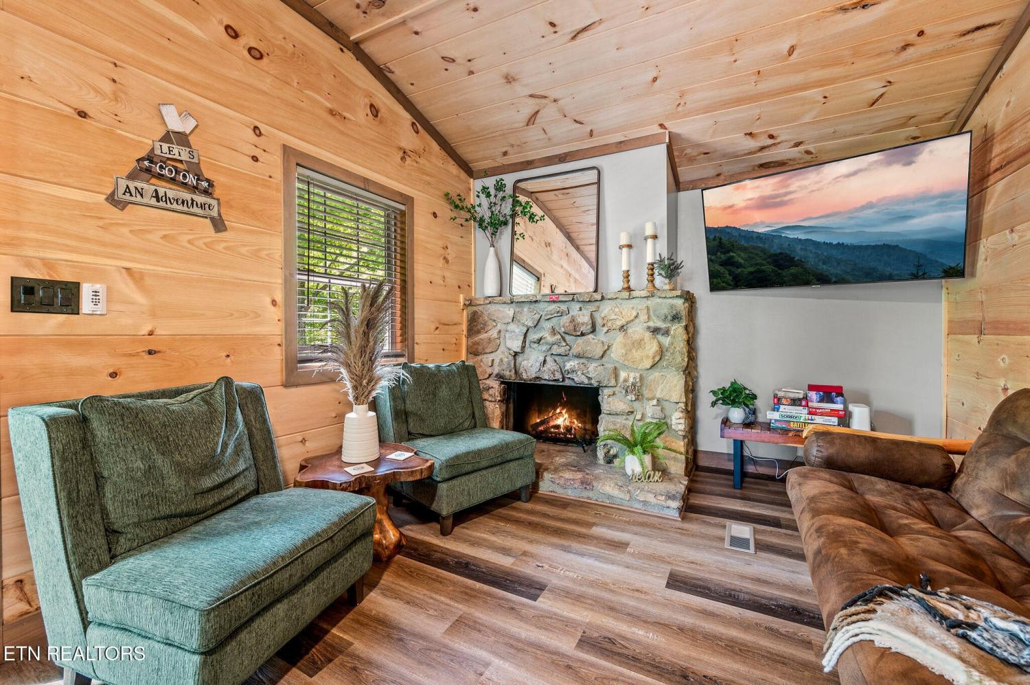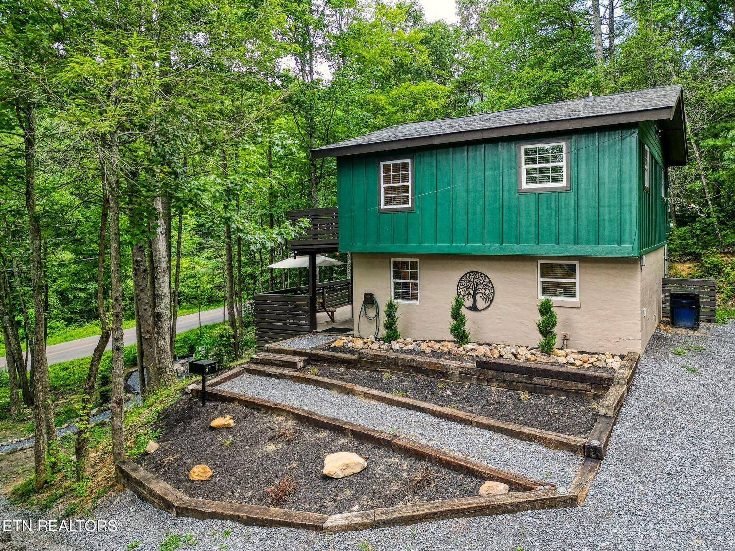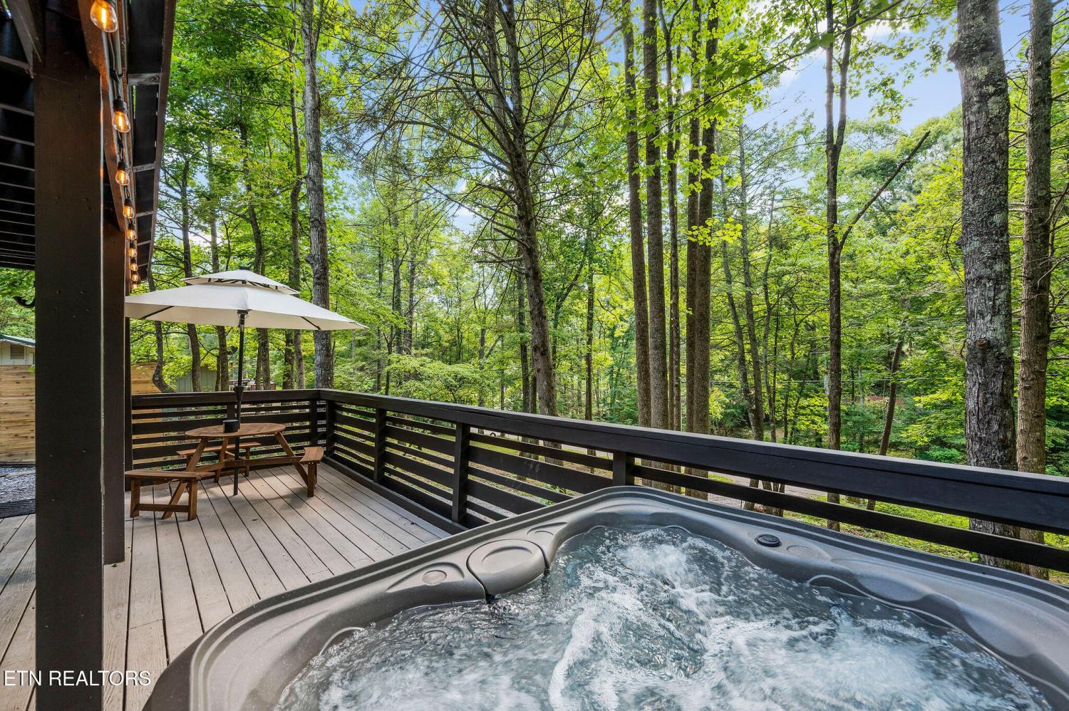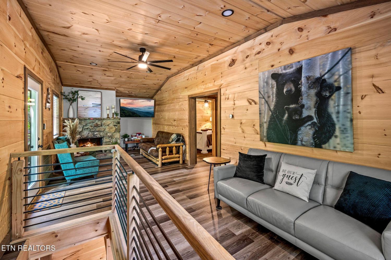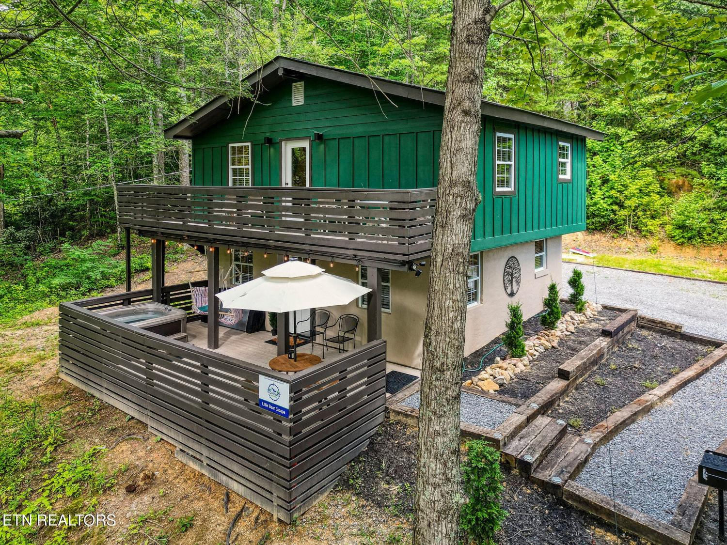 Motivated Sellers! Bring An Offer! The seller is in the process of purchasing via a 1031 exchange and will consider all offers! Recently renovated and fully furnished, this turnkey 3-bedroom, 2-bathroom mountain retreat sleeps up to 8 guests and offers the ultimate Smoky Mountain getaway. Nestled on a private wooded lot, the cabin combines rustic charm with modern comforts and is located just a short drive from Pigeon Forge, Gatlinburg, and the Great Smoky Mountains National Park. Inside, you'll find a warm and inviting living space with a striking wood-burning stone fireplace, vaulted ceilings, and a balcony off the upper-level living room that overlooks the serene setting. The full kitchen, dining area, and dedicated remote workspace make it practical for both vacation and extended stays. Outdoors features multiple decks, a brand-new paved driveway, and a beautifully designed entertaining area. Enjoy a large firepit space perfect for gathering under the stars, a relaxing hot tub, picnic table, and cozy chair swings. An outdoor storage shed adds functionality, while the wooded backdrop ensures privacy and a true mountain feel. With a strong rental history and all furnishings included, this property is move-in ready and income-producing from day one. Whether you're searching for a personal retreat or an investment property, this Smoky Mountain cabin checks every box.
