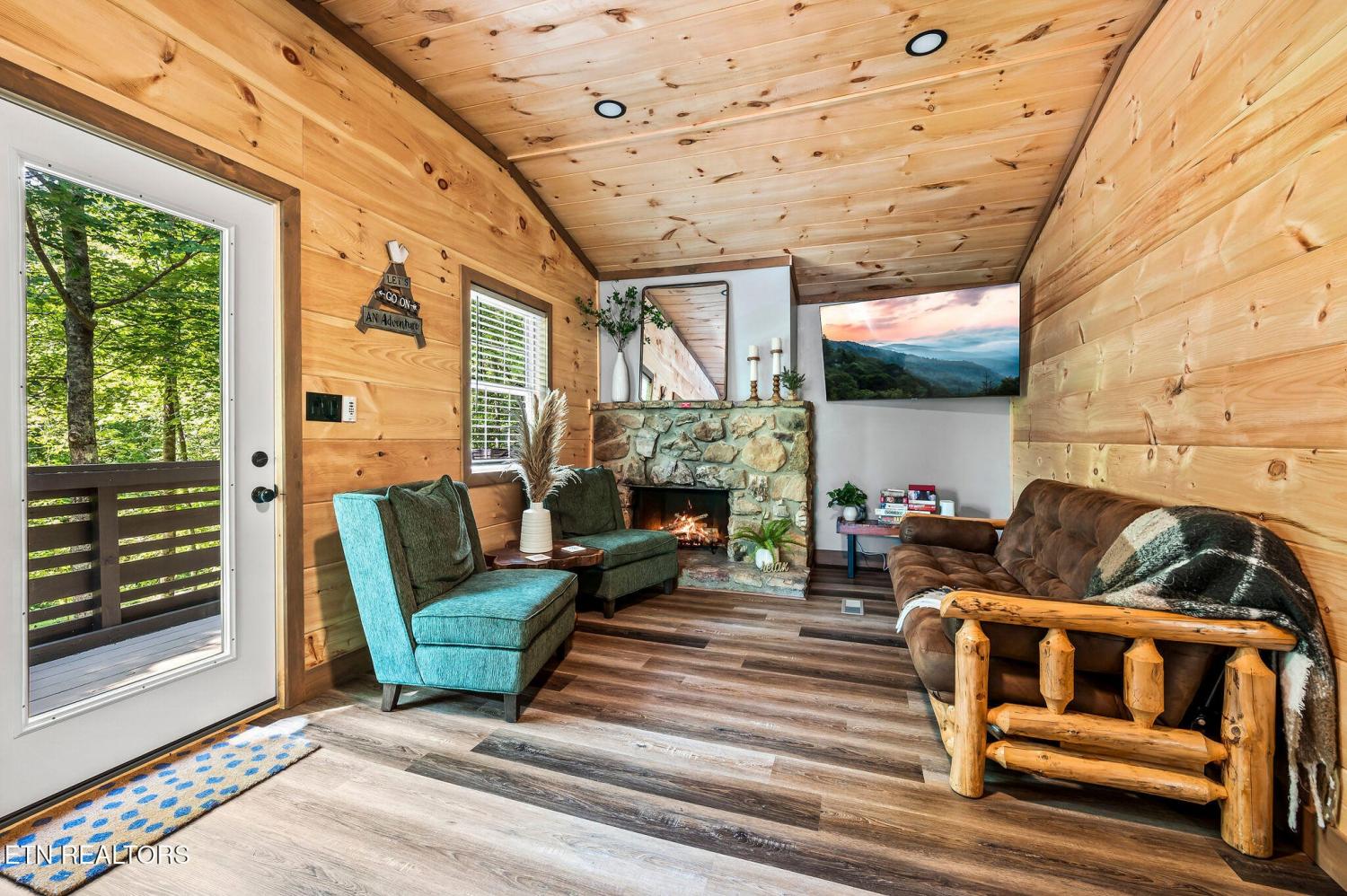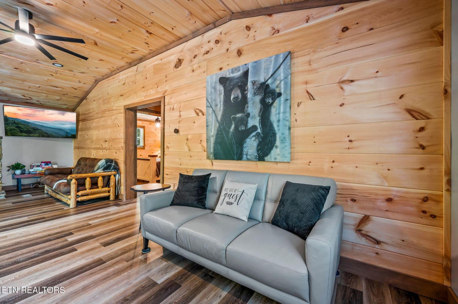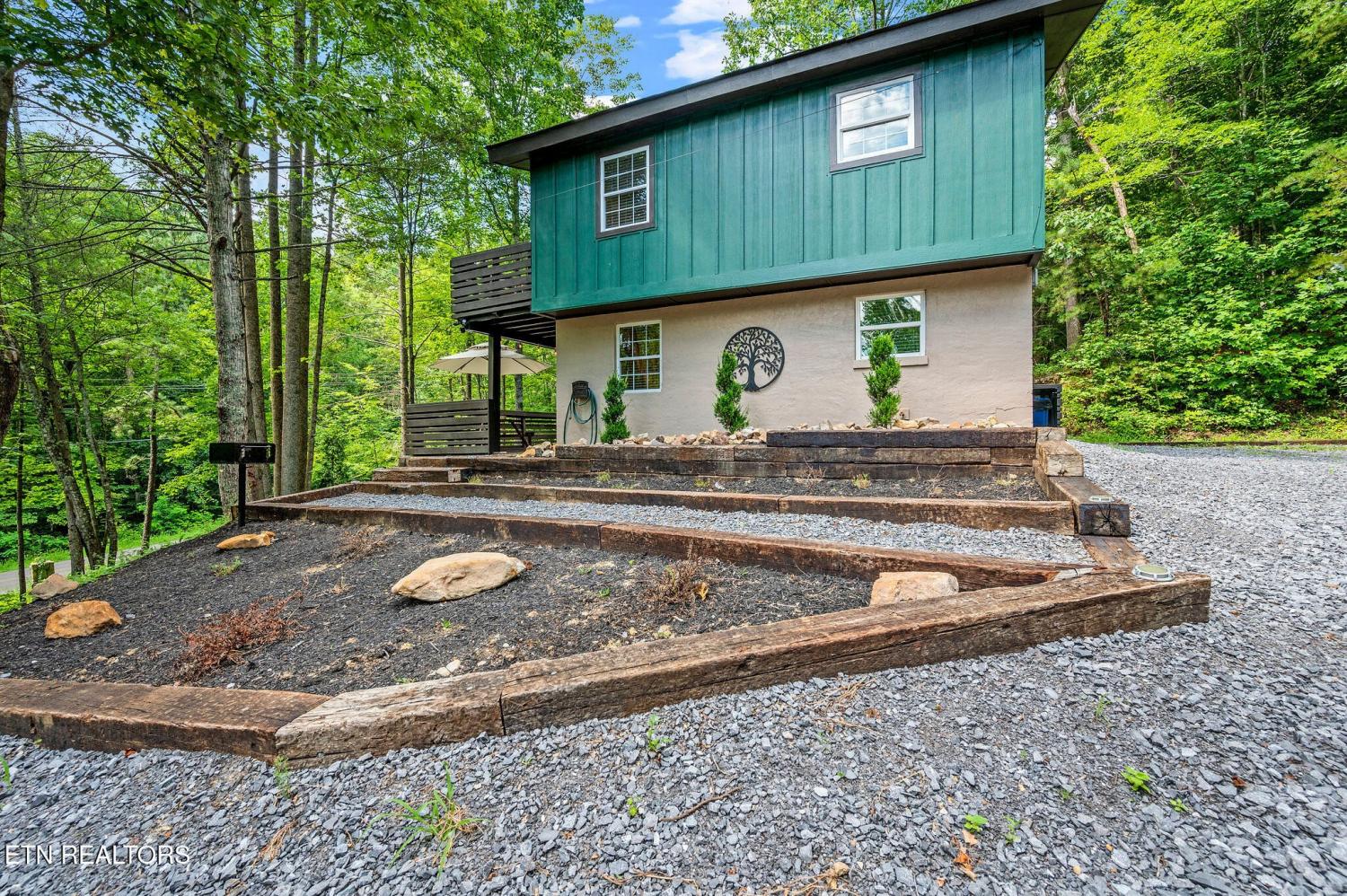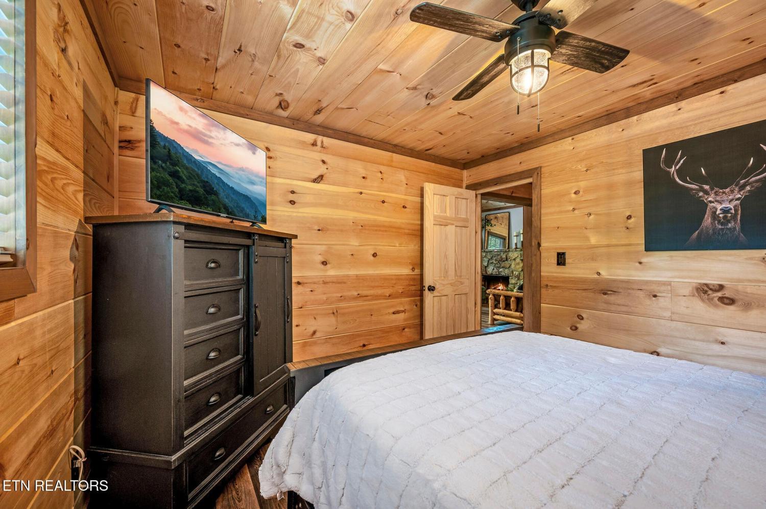 Motivated Sellers! Bring An Offer! The seller is in the process of purchasing via a 1031 exchange and will consider all offers! Recently renovated and fully furnished, this turnkey 3-bedroom, 2-bathroom mountain retreat sleeps up to 8 guests and offers the ultimate Smoky Mountain getaway. Nestled on a private wooded lot, the cabin combines rustic charm with modern comforts and is located just a short drive from Pigeon Forge, Gatlinburg, and the Great Smoky Mountains National Park. Inside, you'll find a warm and inviting living space with a striking wood-burning stone fireplace, vaulted ceilings, and a balcony off the upper-level living room that overlooks the serene setting. The full kitchen, dining area, and dedicated remote workspace make it practical for both vacation and extended stays. Outdoors features multiple decks, a brand-new paved driveway, and a beautifully designed entertaining area. Enjoy a large firepit space perfect for gathering under the stars, a relaxing hot tub, picnic table, and cozy chair swings. An outdoor storage shed adds functionality, while the wooded backdrop ensures privacy and a true mountain feel. With a strong rental history and all furnishings included, this property is move-in ready and income-producing from day one. Whether you're searching for a personal retreat or an investment property, this Smoky Mountain cabin checks every box.