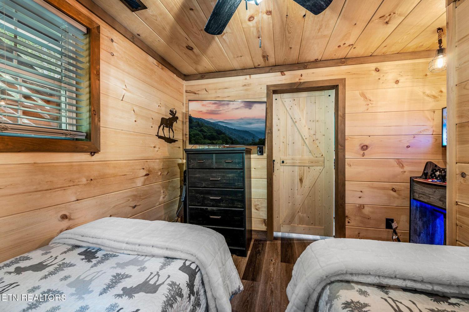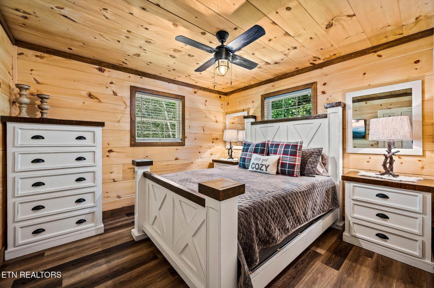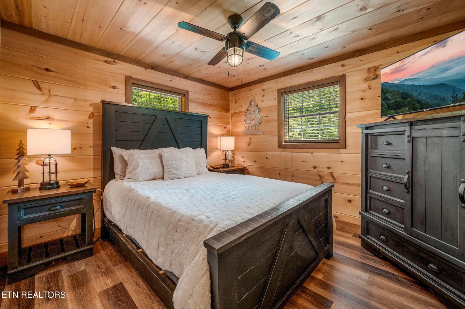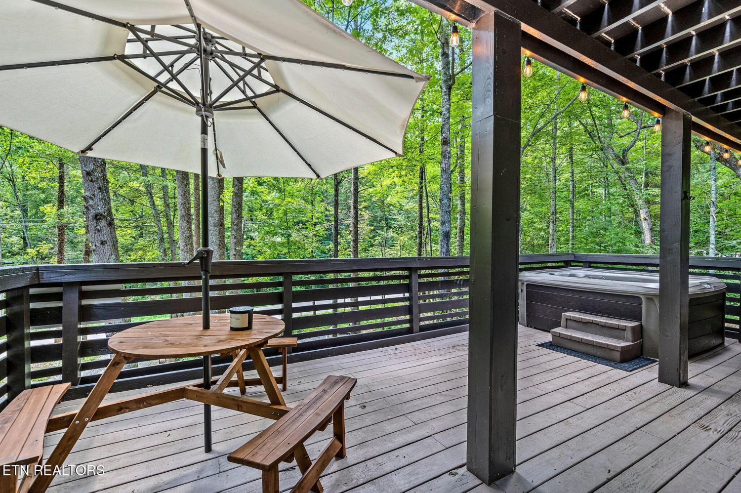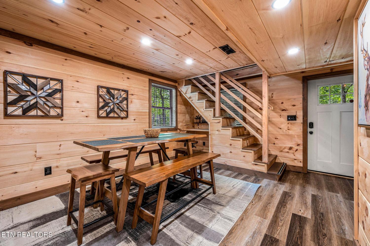 Motivated Sellers! Bring An Offer! The seller is in the process of purchasing via a 1031 exchange and will consider all offers! Recently renovated and fully furnished, this turnkey 3-bedroom, 2-bathroom mountain retreat sleeps up to 8 guests and offers the ultimate Smoky Mountain getaway. Nestled on a private wooded lot, the cabin combines rustic charm with modern comforts and is located just a short drive from Pigeon Forge, Gatlinburg, and the Great Smoky Mountains National Park. Inside, you'll find a warm and inviting living space with a striking wood-burning stone fireplace, vaulted ceilings, and a balcony off the upper-level living room that overlooks the serene setting. The full kitchen, dining area, and dedicated remote workspace make it practical for both vacation and extended stays. Outdoors features multiple decks, a brand-new paved driveway, and a beautifully designed entertaining area. Enjoy a large firepit space perfect for gathering under the stars, a relaxing hot tub, picnic table, and cozy chair swings. An outdoor storage shed adds functionality, while the wooded backdrop ensures privacy and a true mountain feel. With a strong rental history and all furnishings included, this property is move-in ready and income-producing from day one. Whether you're searching for a personal retreat or an investment property, this Smoky Mountain cabin checks every box.