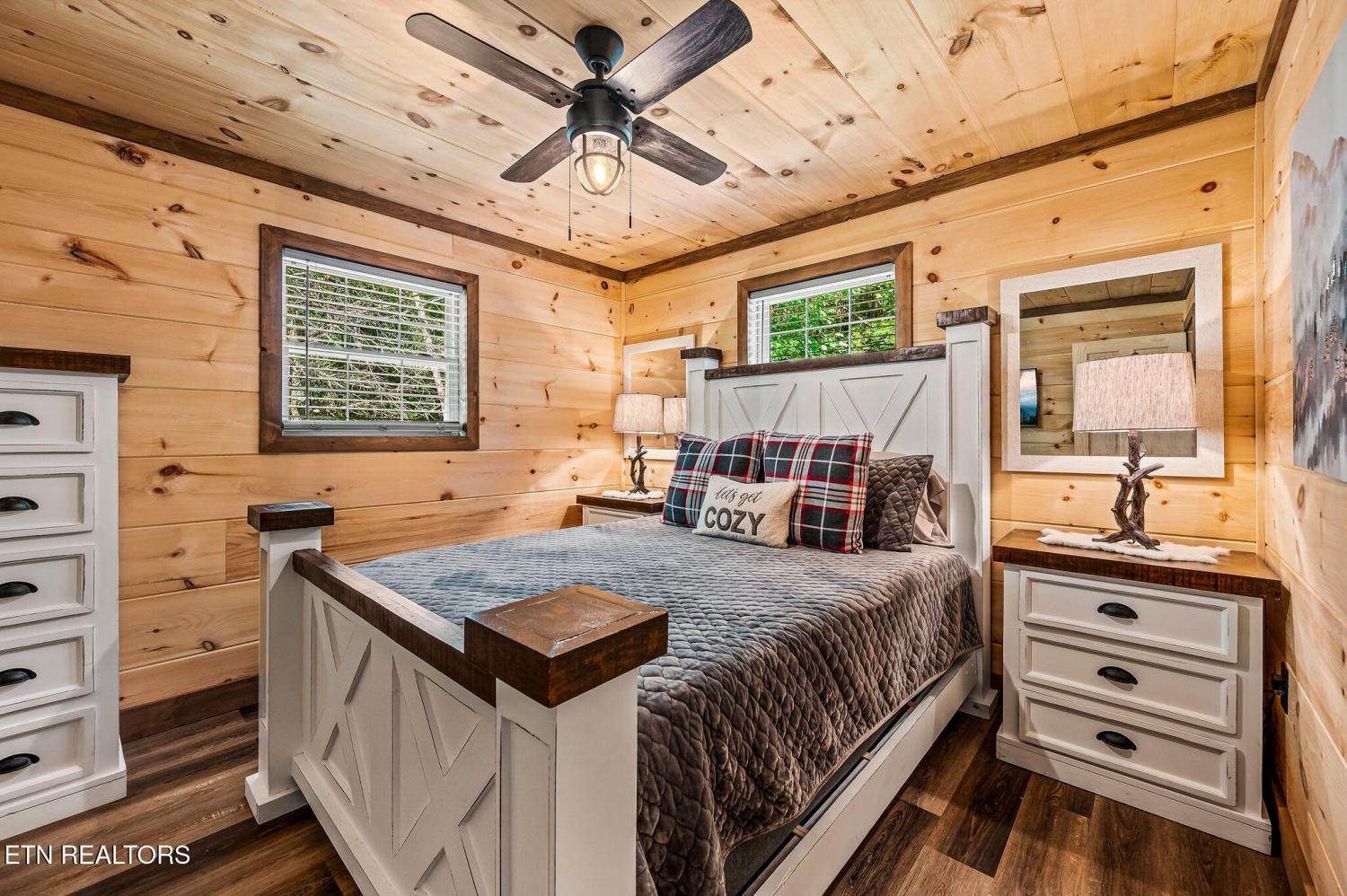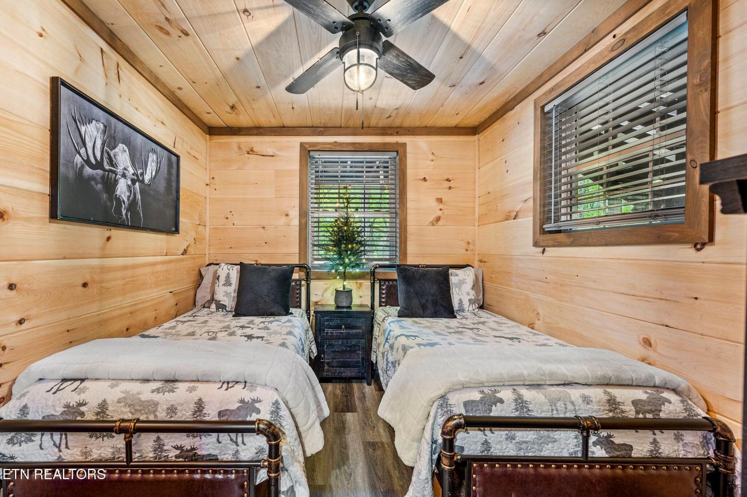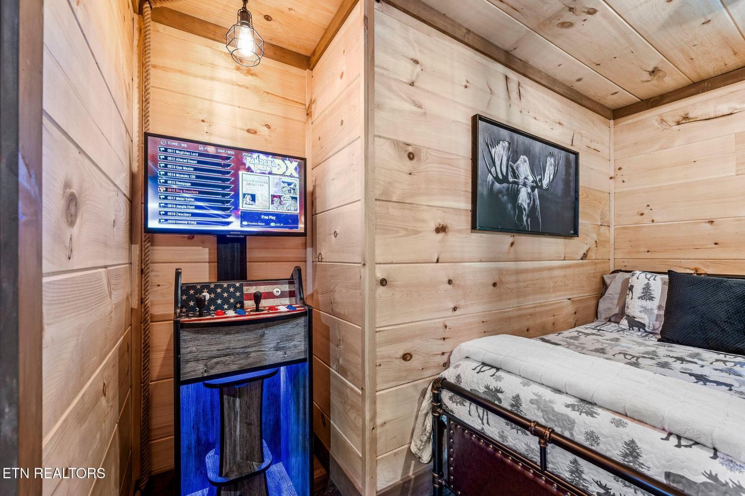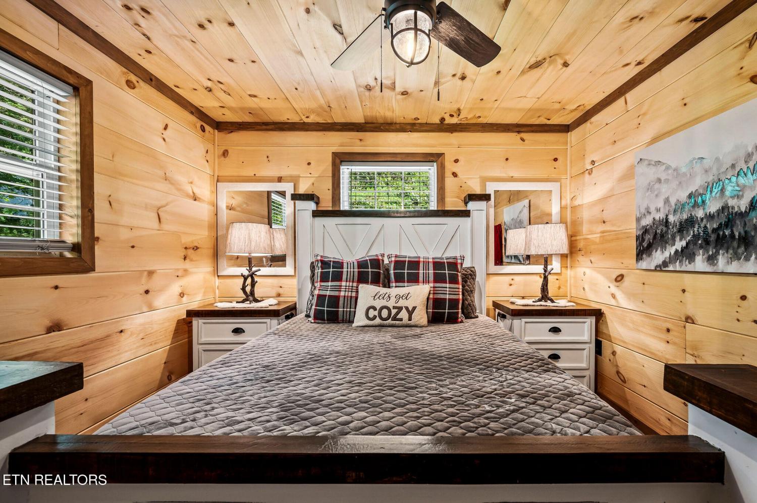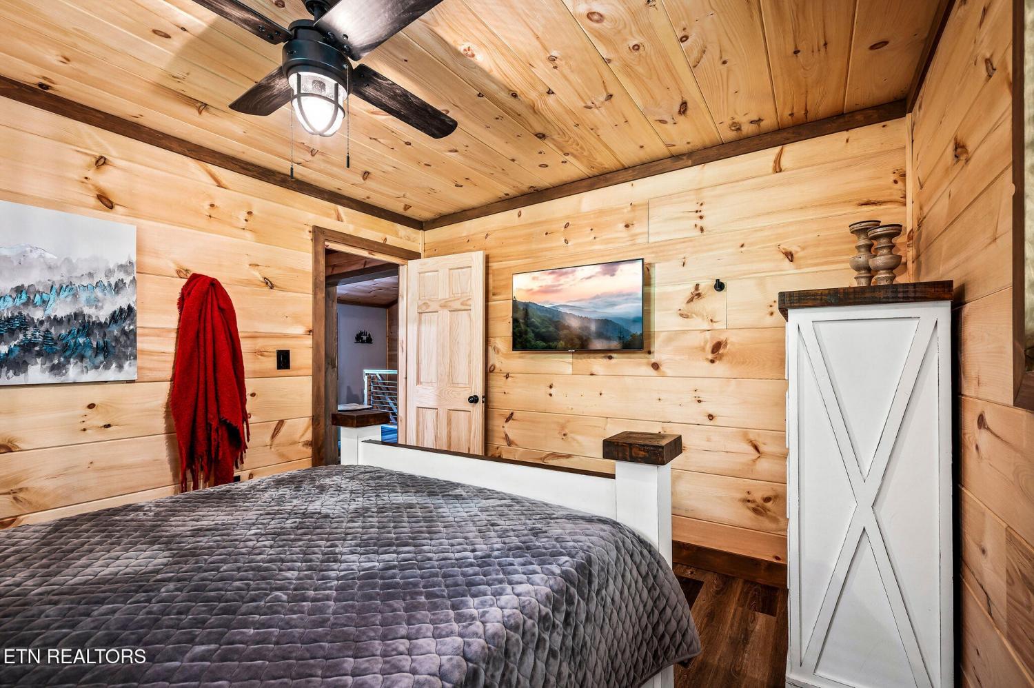 Motivated Sellers! Bring An Offer! The seller is in the process of purchasing via a 1031 exchange and will consider all offers! Recently renovated and fully furnished, this turnkey 3-bedroom, 2-bathroom mountain retreat sleeps up to 8 guests and offers the ultimate Smoky Mountain getaway. Nestled on a private wooded lot, the cabin combines rustic charm with modern comforts and is located just a short drive from Pigeon Forge, Gatlinburg, and the Great Smoky Mountains National Park. Inside, you'll find a warm and inviting living space with a striking wood-burning stone fireplace, vaulted ceilings, and a balcony off the upper-level living room that overlooks the serene setting. The full kitchen, dining area, and dedicated remote workspace make it practical for both vacation and extended stays. Outdoors features multiple decks, a brand-new paved driveway, and a beautifully designed entertaining area. Enjoy a large firepit space perfect for gathering under the stars, a relaxing hot tub, picnic table, and cozy chair swings. An outdoor storage shed adds functionality, while the wooded backdrop ensures privacy and a true mountain feel. With a strong rental history and all furnishings included, this property is move-in ready and income-producing from day one. Whether you're searching for a personal retreat or an investment property, this Smoky Mountain cabin checks every box.