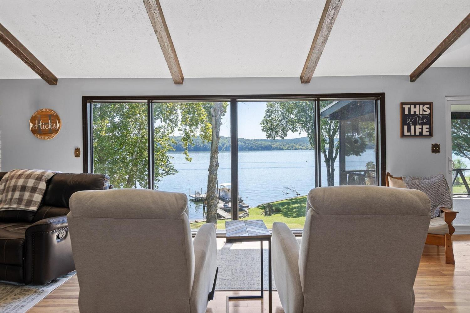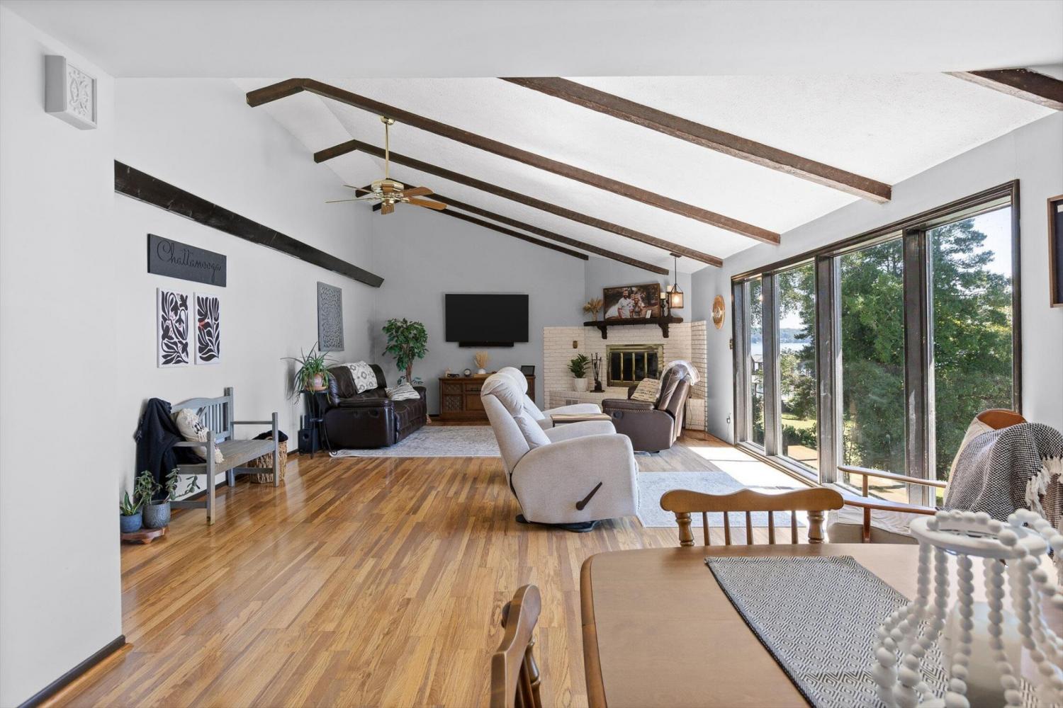 Main channel Chickamauga lakefront paradise on the TN River in this stunning four-bedroom, three-bathroom, 3 car garage home offering 2,960 square feet of open concept living. This exceptional property sits on a generous double lot with direct waterfront access, making it perfect for those who dream of sunrises every morning. View across the River/Lake is TVA land, so it will likely never change. Exterior of home was redone in '21 including: 60yr metal roof, all vinyl windows & 3 sliders, paint, and gutters w/guards, front door. The spacious interior flows seamlessly throughout, with the primary bedroom serving as a true retreat. Two additional bedrooms provide flexibility for family, guests, or that home office you've been planning. Easy to clean with the Central Vac system. The finished basement adds valuable living space and storage, because let's face it - who doesn't need a place to hide seasonal decorations and exercise equipment? Tons of storage in the unfinished basement area, too. Step outside to experience the true magic of lakefront living on your main level rear screened porch, or rear covered porch. The expansive outdoor space includes your own private dock, perfect for morning coffee with the fish or evening gatherings under the stars. Full yard irrigation system with lake pump. Whether you're launching a kayak, swimming on the beach with the kids or dogs, hosting a barbecue, or simply enjoying the peaceful water sounds, this outdoor oasis delivers year-round enjoyment. The Soddy-Daisy neighborhood offers the perfect blend of tranquil lakeside living and a community dock & boat ramp. You'll find yourself just minutes from more recreational opportunities, and 30 minutes to Chattanooga, Dunlap, or Dayton. This rare combination of main channel waterfront, spacious interiors, and prime location creates an opportunity that doesn't come often. The dock is ready, the views are breathtaking, and your lakefront lifestyle awaits. Owner/Agent
