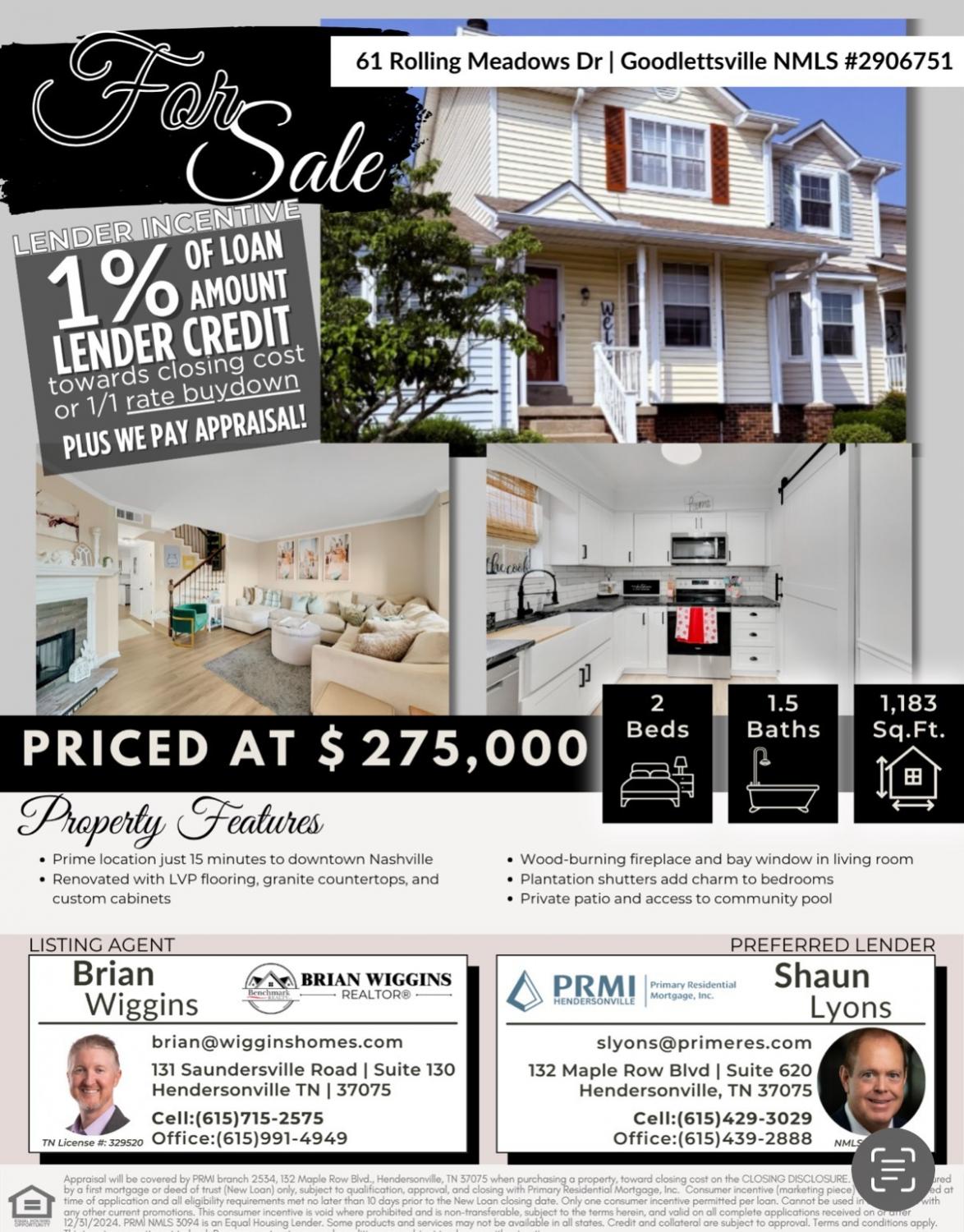Prime Location – 15 Mins to Downtown Nashville! 1% of purchase price credit and free appraisal with preferred lender! This beautifully renovated townhome features LVP flooring, custom cabinets, granite countertops, farmhouse sink, and stylish fixtures. Plantation shutters add charm to the bedrooms, while the wood-burning fireplace and bay window fill the living room with warmth and natural light. Enjoy your private patio and the community pool in summer! Don't miss this must-see home—schedule your tour today!