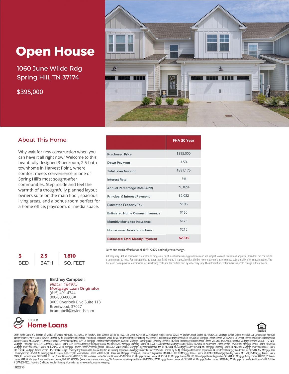 Up to $11K in seller and preferred lender incentives! Highly competitive rates with Keller Home Loans! Why wait for new construction when you can have it all—right now? Welcome to this beautifully designed 3-bedroom, 2.5-bath townhome in Harvest Point, where comfort meets convenience in one of Spring Hill’s most sought-after communities. Step inside and feel the warmth of a thoughtfully planned layout—owner’s suite on the main floor, spacious living areas, and a bonus room perfect for a home office, playroom, or media space. Enjoy an attached two-car garage plus extra parking, premium finishes, and access to Harvest Point’s pool, playground, dog park, walking trails and community garden—all ready to enjoy from day one. Skip the construction dust, long timelines, and surprise upgrade costs. This home is move-in ready, packed with value, and waiting for you. Schedule your private showing today—before someone else calls it "home."