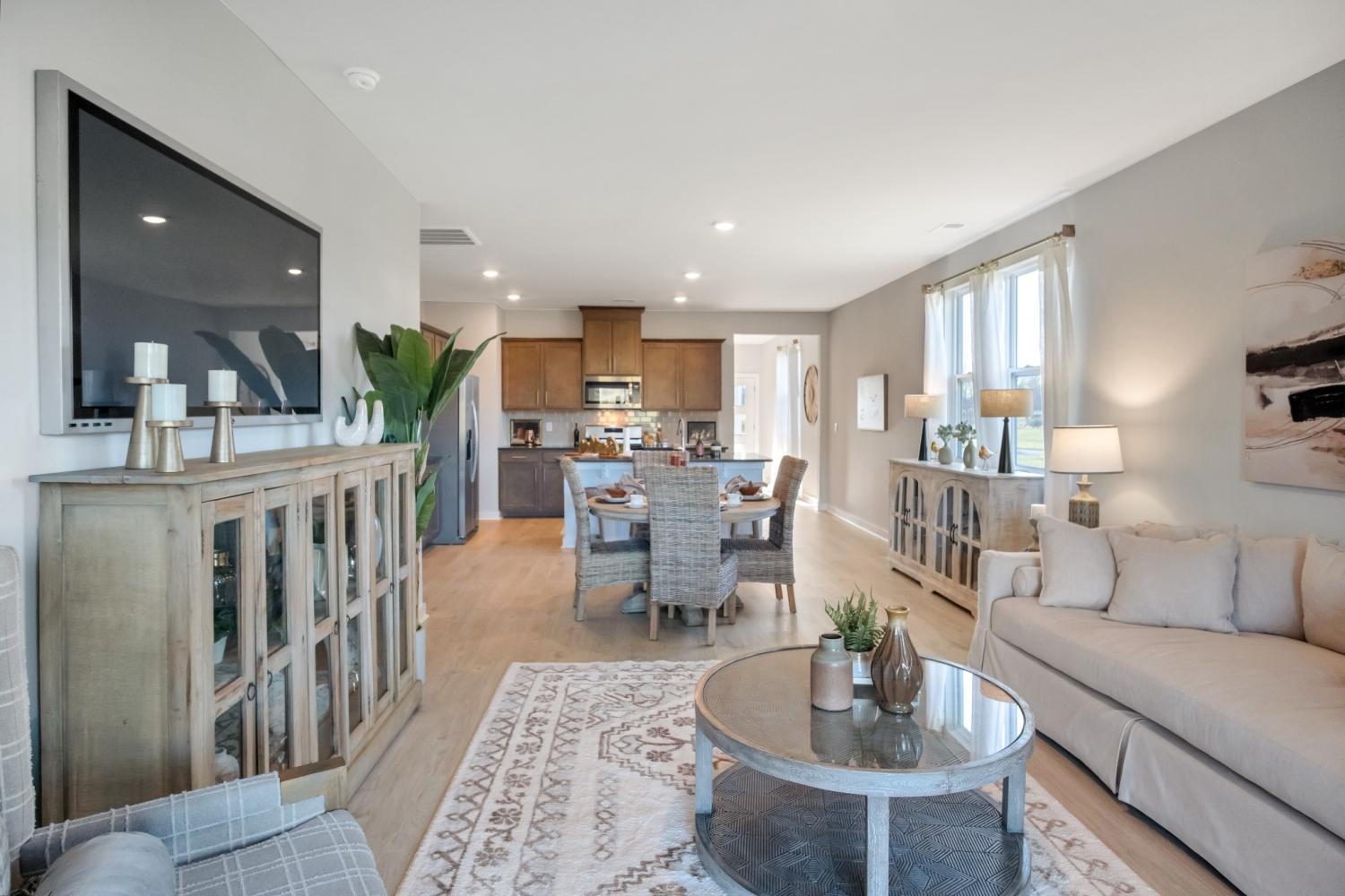 *Corner home* Jennings Plan, 3 bed, 2 ba, 2-car garage. No stairs, No CARPET, single story home! This elegant floorplan offers plenty of space for your family’s needs. A charming front porch invites you to relax and enjoy the peaceful neighborhood. Inside, the gourmet kitchen overlooks the living and dining areas, creating an open, welcoming space perfect for entertaining or everyday living. The kitchen boasts an island with bar seating, Subway tile kitchen backsplash, quartz countertops, and stainless-steel appliances, combining style with function. Smart home technology throughout adds convenience, security, and energy efficiency. The private master suite at the rear includes an ensuite bathroom and spacious walk-in closet for a peaceful retreat. Adjacent to the kitchen, a versatile flex space can serve as extra storage, a home office, or an additional bedroom. Easy access to the outdoor patio enhances your living experience. Everything is included. Homesite #314