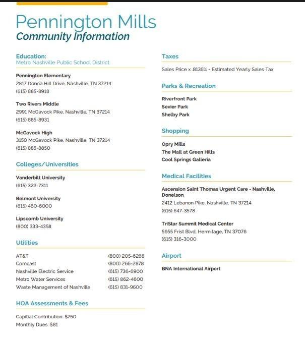 Take advantage of our Holiday of Homes Promotion Today! Buyers can enjoy up to $20,000 of mortgage incentive on this Quick Move In Home - A New Home for the Holidays with a Payment you can celebrate! 30 year Locked Rates as low as 4.875 - can include closing costs, or 3/2/1 buy down too! M/I Homes Marion Plan in the heart of Nashville, a beautifully designed home that combines contemporary comfort with a welcoming atmosphere. Nestled within the lively Donelson, steps from Locally Owned businesses and world class entertainment and food - Pennington Mills is bringing the Suburbs to the Urban side of town! Take a walk on Nashville Greenway, or play in Two Rivers Park. There is no shortage of things to do near this community. 10 min from Nashville International Airport, 12 min to Target! The Marion Plan features open, light-filled interiors optimized for everyday living. The well-appointed kitchen offers modern appliances and ample counter space, perfect for family meals and entertaining guests. The bedrooms serve as peaceful retreats, enhanced by thoughtful finishes and a cozy ambiance. Conveniently located near Nashville’s thriving downtown, parks, and various attractions, this home provides an ideal setting for enjoying city life in comfort. Come see Pennington Mills and the Marion Plan today and discover your next perfect home! We Love our Realtor Partners! Model Hours Monday 1-6, Tues-Wed 10-6, Saturday 10-6, Sunday 12-6 - Call for appointments outside these times! Listing is showing a $1740 price reduction, incentives are structured based on buyers needs and can be reallocated.
