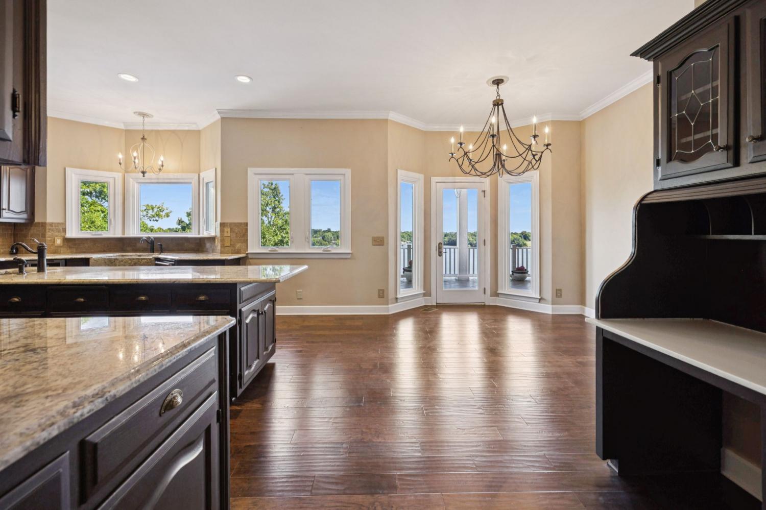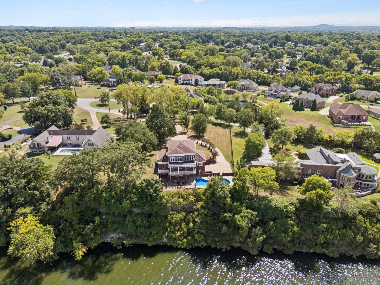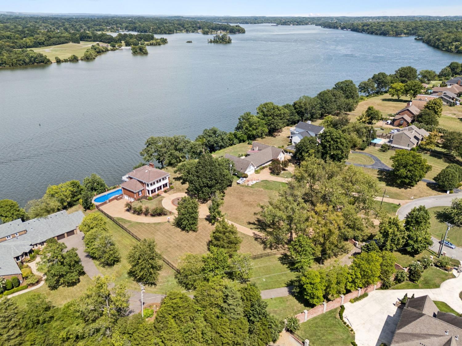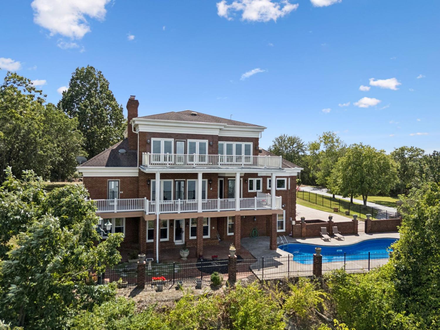 Welcome to Windsong, your private lakeside retreat on beautiful Old Hickory Lake~ This timeless Colonial Style homes sits on 1.25 acres offering the most breathtaking year-round views of the water and sunsets. This home was thoughtfully designed in every aspect! Step through the front door and be greeted to rich architectural details. Features include an expansive chef's kitchen, elevator that accesses all three levels, 3 fireplaces, 3 crystal chandeliers, a staircase like no other, beautiful cherry and mahogany wood details, 4 covered porches, in-ground pool, and a gated driveway lined with New Orlean style lamp posts. The main level is perfect for family gatherings and entertainment. Upstairs, the primary suite includes a fireplace, sitting area, ample closet space and sweeping lake views. The versatility of the basement includes a living room, kitchen, and large workout space. Windsong is tucked away in a quiet setting, yet minutes to the city, airport and shopping.
