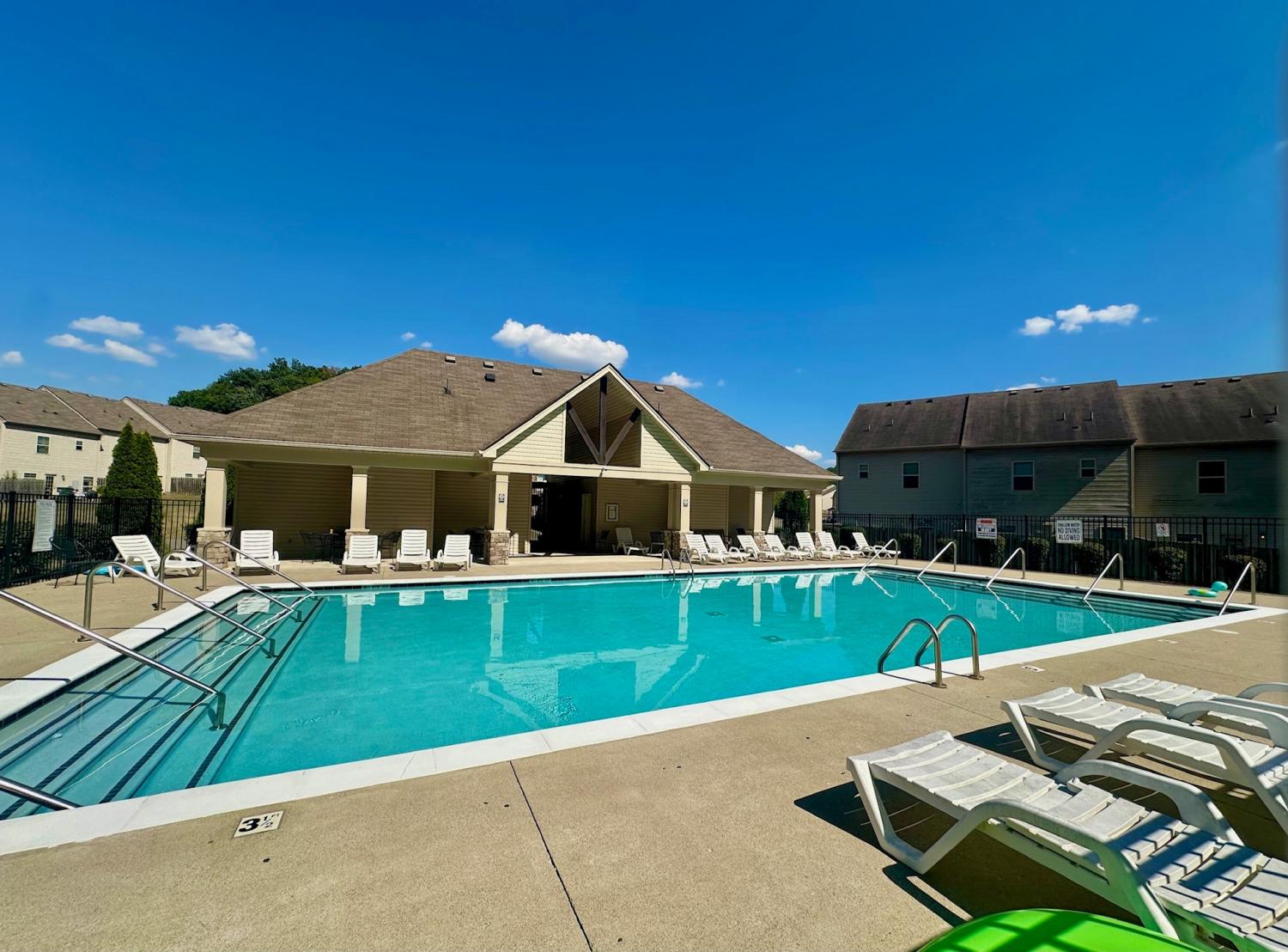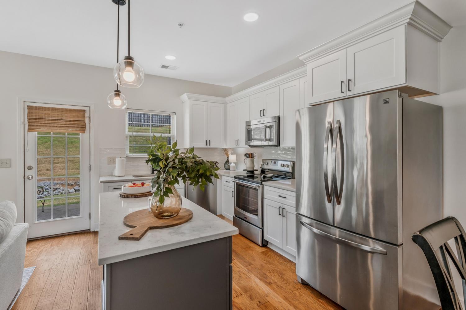 END UNIT! Ready to move into! Stainless steel kitchen appliances with refrigerator staying. Washer and Dryer staying with home. Beautiful new white kitchen cabinets, new light fixtures, covered front porch, short walk to community pool and dog park. Fantastic location convenient to everything in quiet and established community